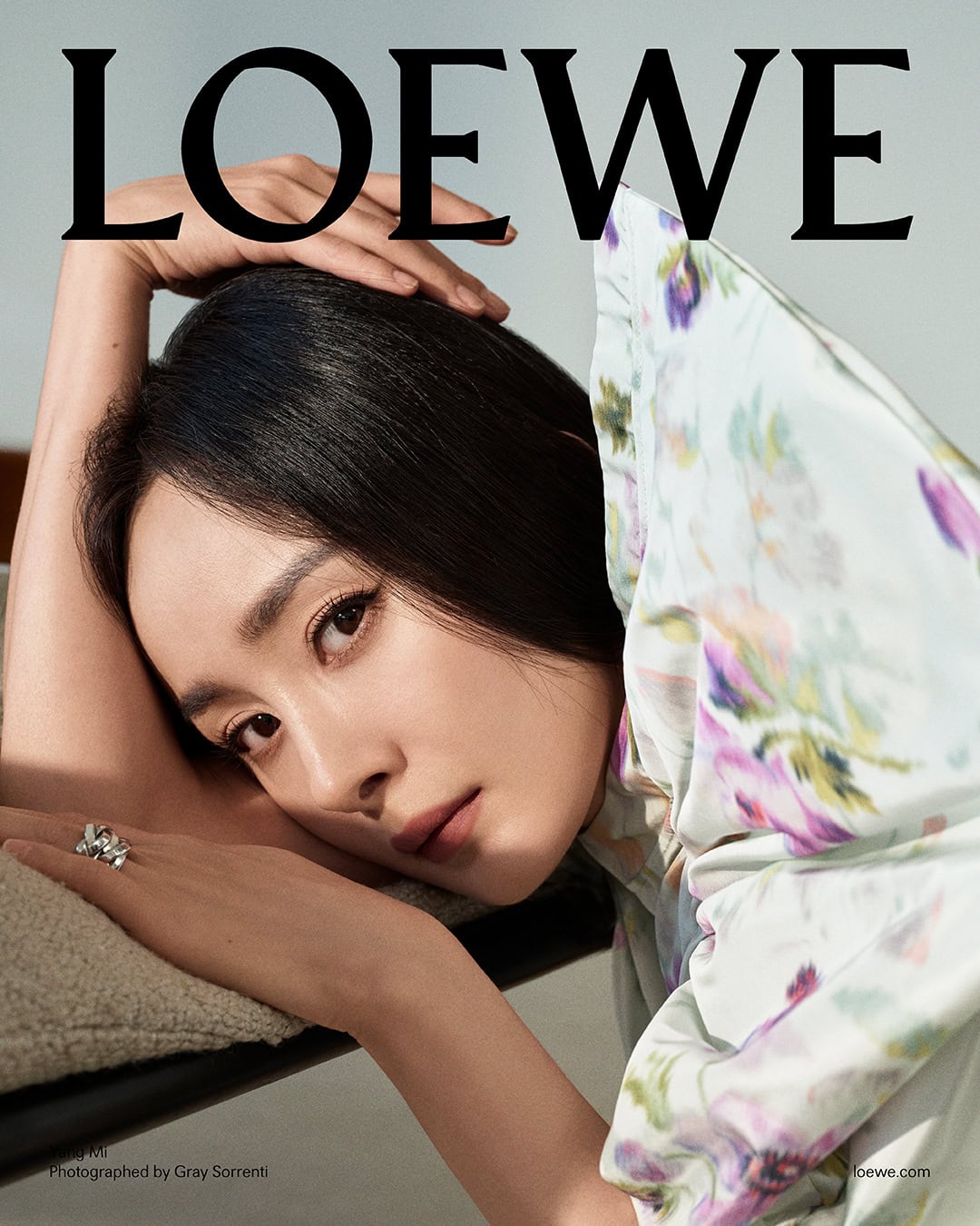 本季,Jonathan Anderson 继续探索比例与视角的游戏:玻璃窗与暖光构建出层层空间错觉,人物仿佛沉浸在自我叙事中。Josh O’Connor 松弛地靠在沙发上,一条拉长的花卉领带平添几分恍惚;杨幂则用悬浮的姿态与动作营造出戏剧性的超现实感。