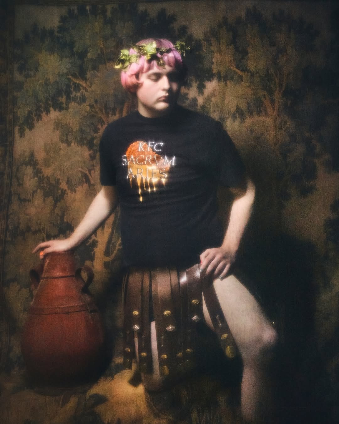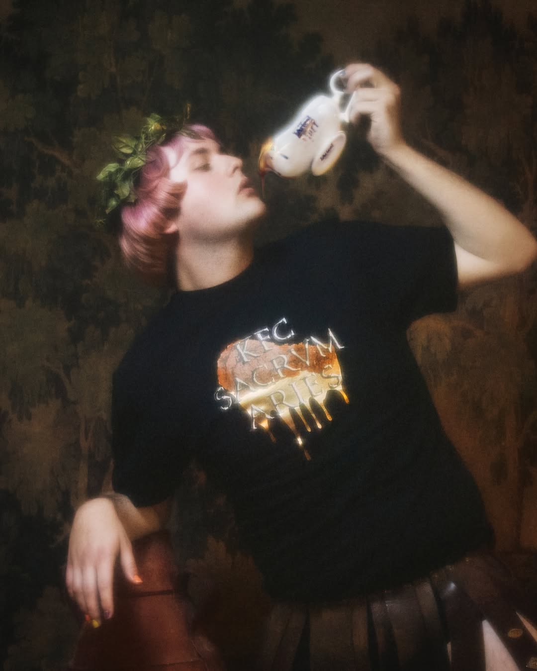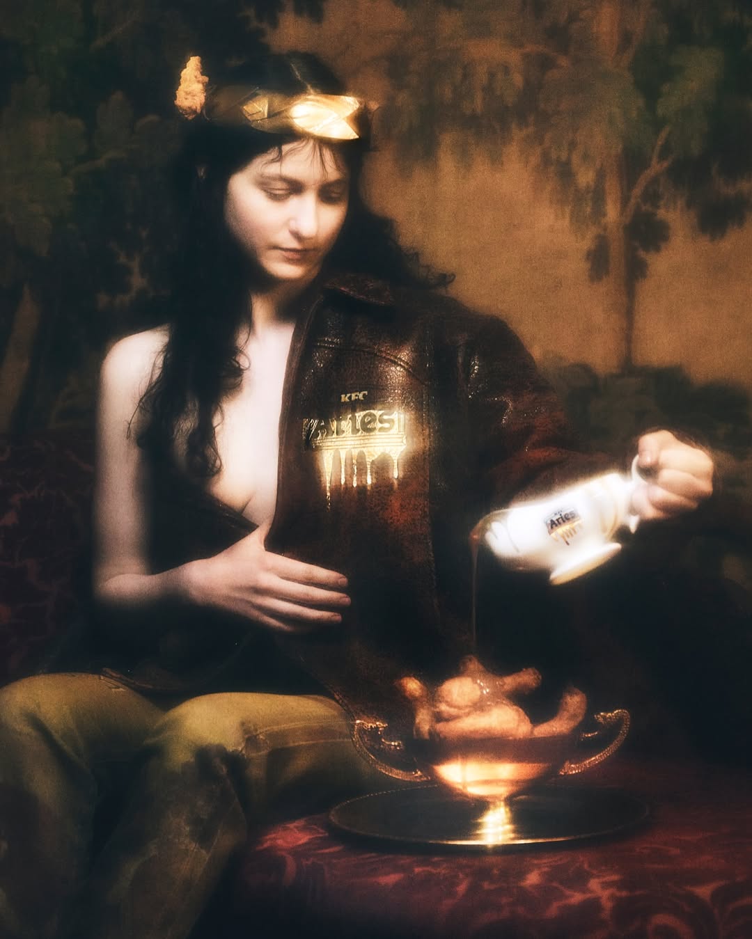 日前英国街头品牌 Aries 发布了与 KFC 的全新合作系列,此次双方以欧洲古典画作为灵感,造型特辑也以略带戏谑的古典画作风格呈现,夸张的皮带、头饰等点缀呼应此次跳脱的跨界联名,而释出的合作款短袖、遮阳帽、短裤、皮衣等单品的平面设计画风也尽显中世纪风格,并将 KFC 经典的炸鸡与酱料融入其中,带来别开生面的跨界时尚灵感。Aries x KFC 全新合作系列现已正式发售,感兴趣的大家不妨关注一波。