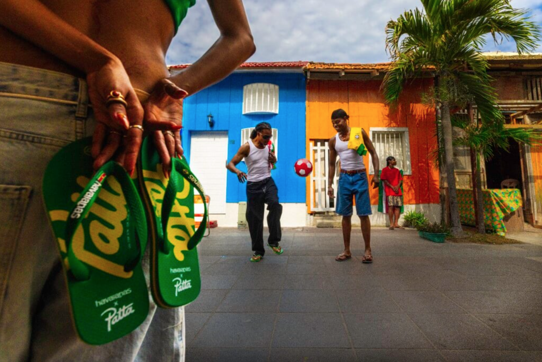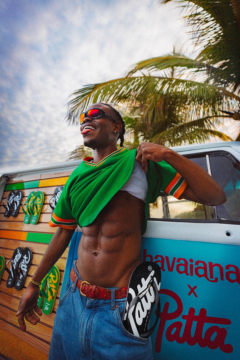 Patta 与巴西人字拖巨头 Havaianas 联手推出了一款限量胶囊系列。这款人字拖保留了 Havaianas 的经典鞋型和 100% 巴西橡胶鞋底,并将 Havaianas 代表性巴西标志与 Patta 独特的品牌标识巧妙融合。鞋垫上印有醒目的 Patta 标志,鞋带上则饰有联名标志。该鞋包括黑白和森林绿黄两种配色,均配备特制包装盒——装饰以联名图案和棕榈树印花,并印有「Lobi Libi」字样,以此致敬 Patta 的传统以及由足球偶像 Edgar Davids 演绎的本次型录「爱与生活」。