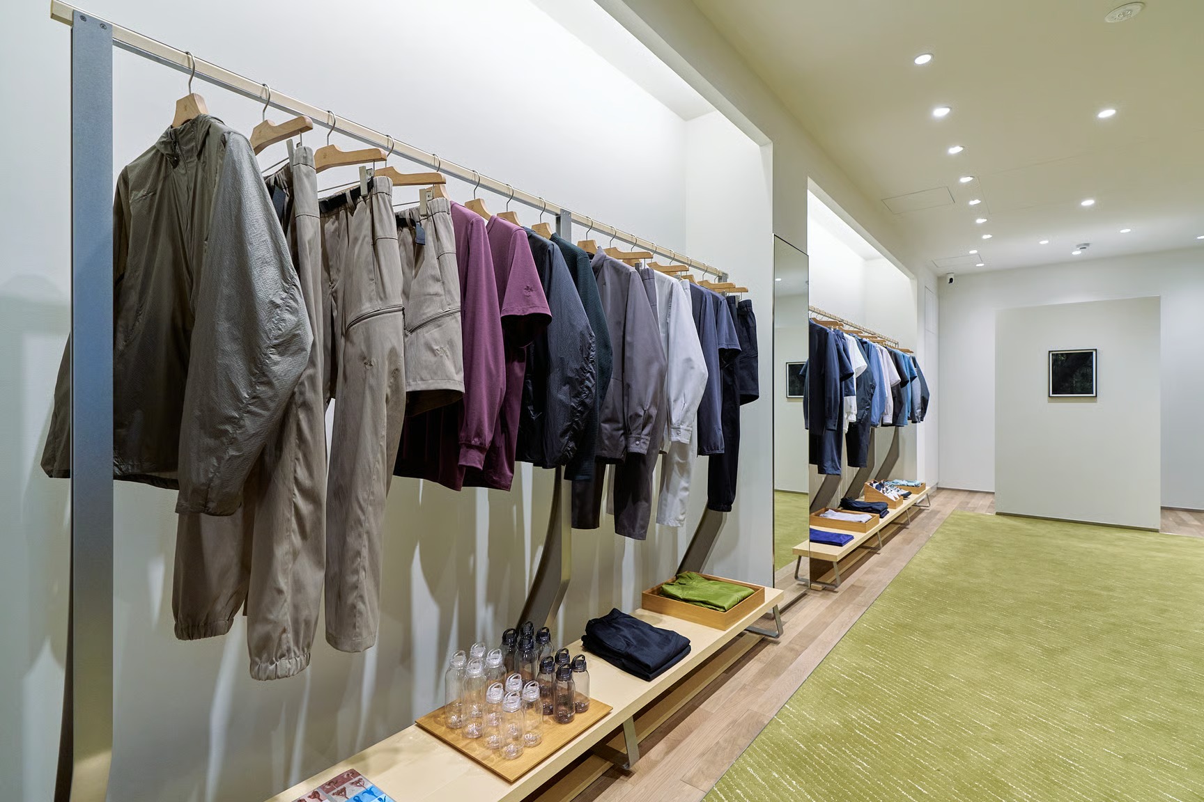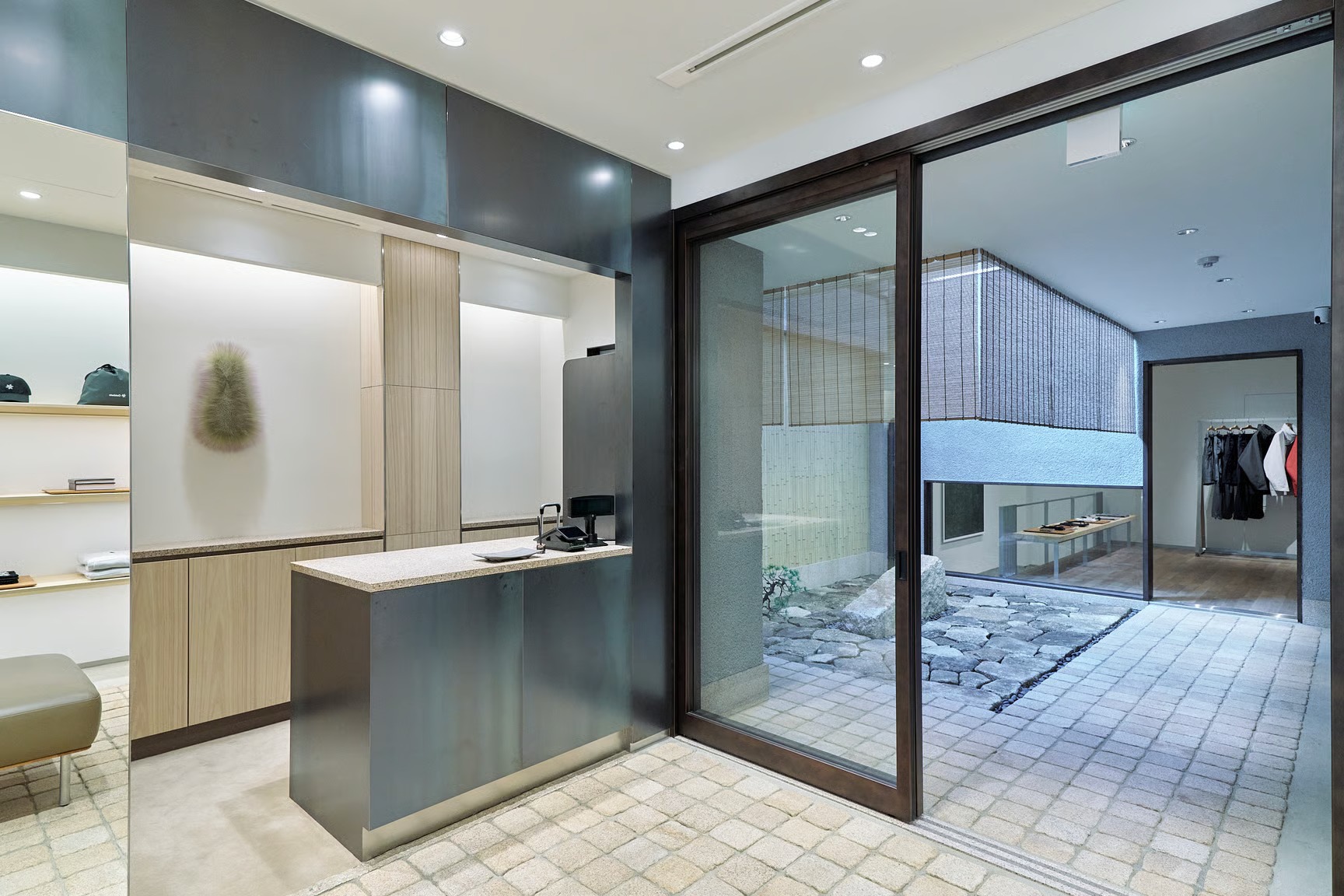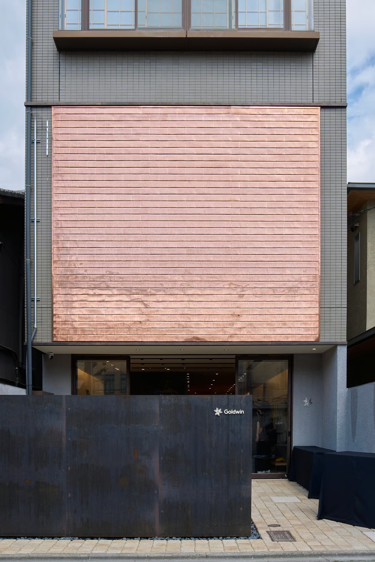 Goldwin 近日揭幕日本关西地区首间旗舰店,店铺选址距离人流密集的四条河原町不远,具体选址为中京区堺町 460 号,结合本地居民与游客人群,强化「探索式消费」的空间策略。整体设计由曾负责品牌上海与成都门店设计的新素材研究所操刀,以「地」与「风」为概念,结合京都特有的深宅结构,打造出具有流动感的空间布局。店铺外观采用可随时间变化质感的铜板,入口设有耐候钢遮挡,内部则以自然素材营造温润氛围。门店共两层,一楼陈列品牌的中性生活方式服饰,二楼主打登山与越野跑系列,后方庭院则设有实验支线 Goldwin 0 的专属空间。Goldwin 表示,未来将持续拓展日本及全球重点城市版图,并以 2033 年实现品牌年销售额达 500 亿日元为目标。