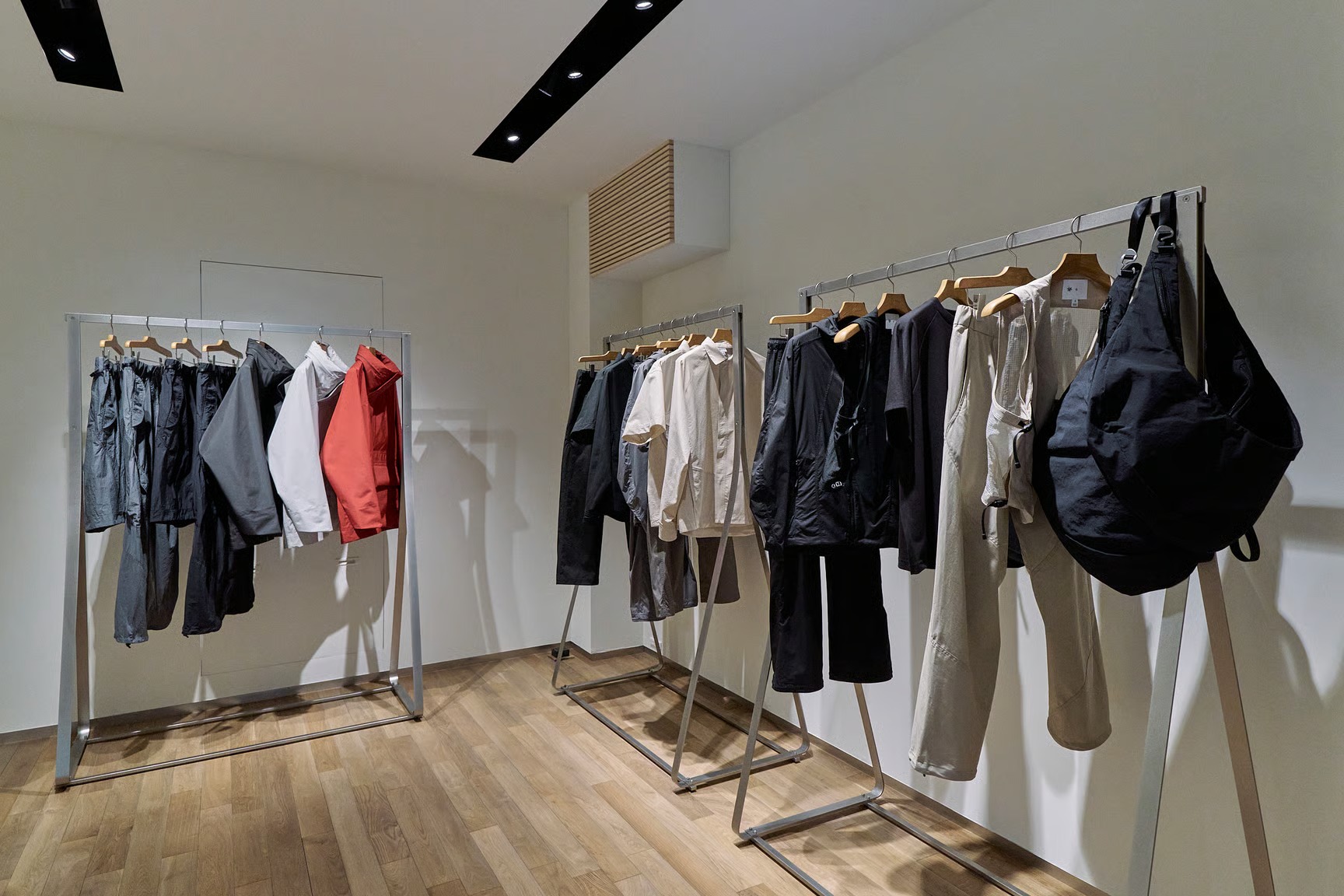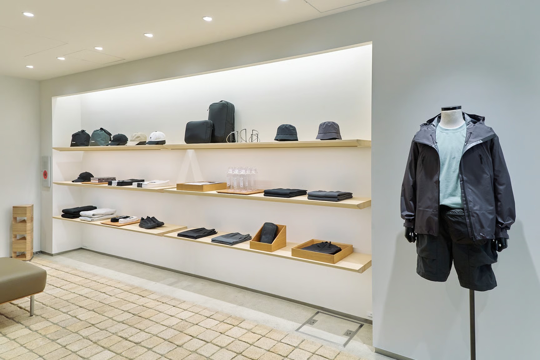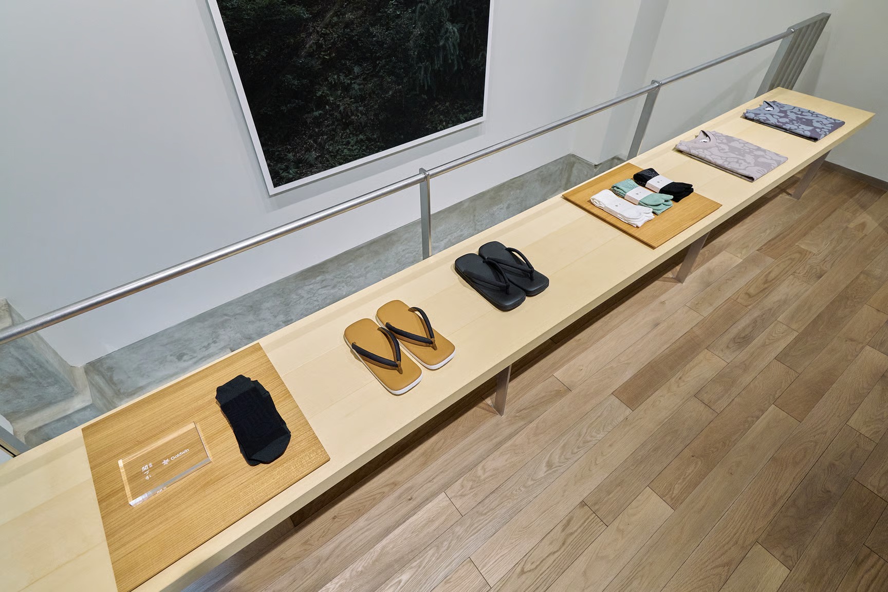 此外,为庆祝新店开业 Goldwin 在店内推出多款限定商品,包括由平面设计师 Shun Sasaki 设计图案的 T 恤、连帽卫衣、棒球帽与袜子,以及与履物品牌 Sekizuka 合作的功能草履,采用防泼水皮革与 Vibram 大底,兼顾城市与户外穿着需求。