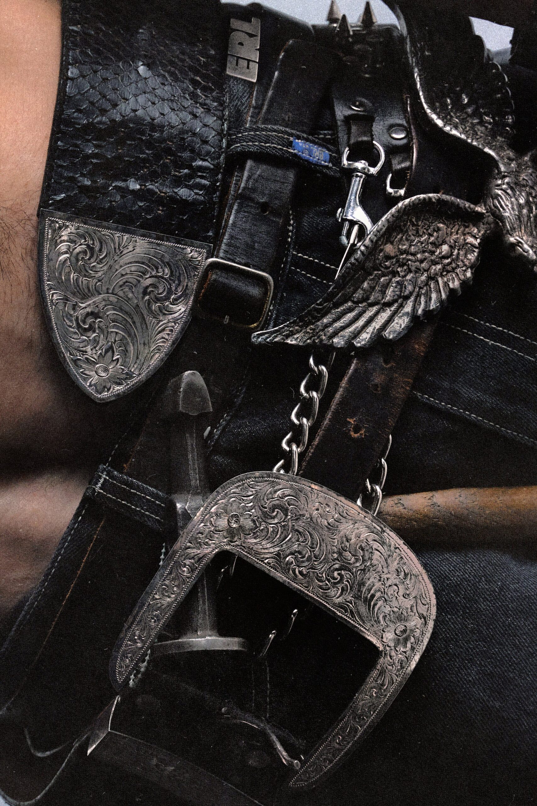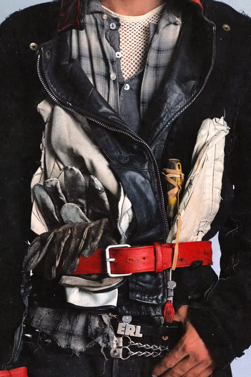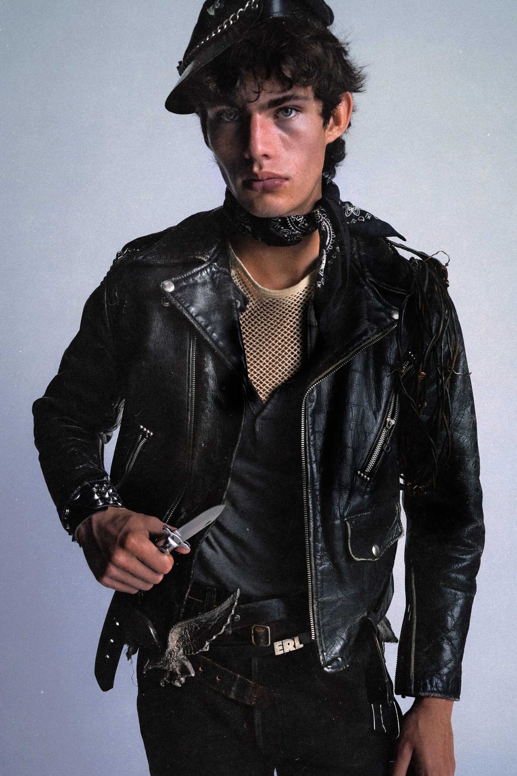 稍早前,ERL 正式发布了最新加州制作系列「The Wild Bunch」。系列灵感来源于虚构的威尼斯海滩帮派「Dudley Dozens」,以解构风格、破旧细节和皮革元素,展现了从传统预科风格到摩托车文化的大胆转变,融合了马龙·白兰度在《狂野之子》中的形象、90 年代的格兰治风格以及 Tom of Finland 的艺术元素。