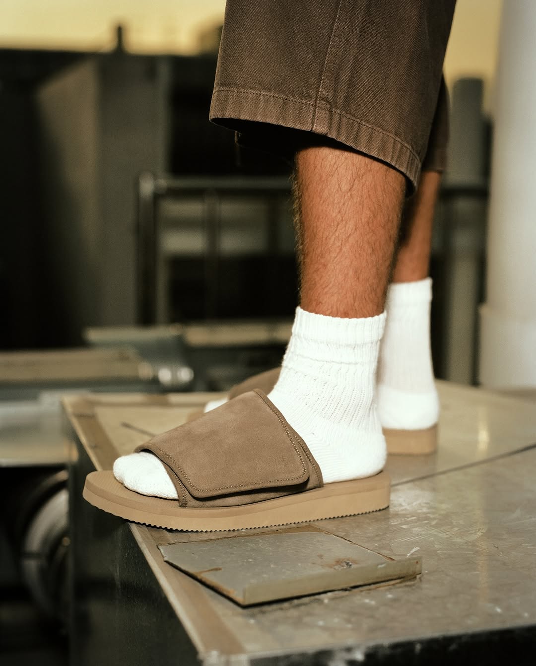 日前街头品牌 thisisneverthat® 发布了与 SUICOKE 的全新合作系列,此次双方以设计语言更加简洁的「MOTO-Cab」为蓝本,推出了全新的「TNT-DECO-Cab」系列,更高质感表现的牛皮绒面革鞋面配合 EVA 材质缓震大底带来出众的舒适脚感,同时浅棕色与黑色两个配色方案也提供不同造型风格选择,可以说是春夏搭配的万金油单品了。thisisneverthat® x SUICOKE 全新合作系列将于 6 月 20 日正式发售,感兴趣的大家不妨关注一波。