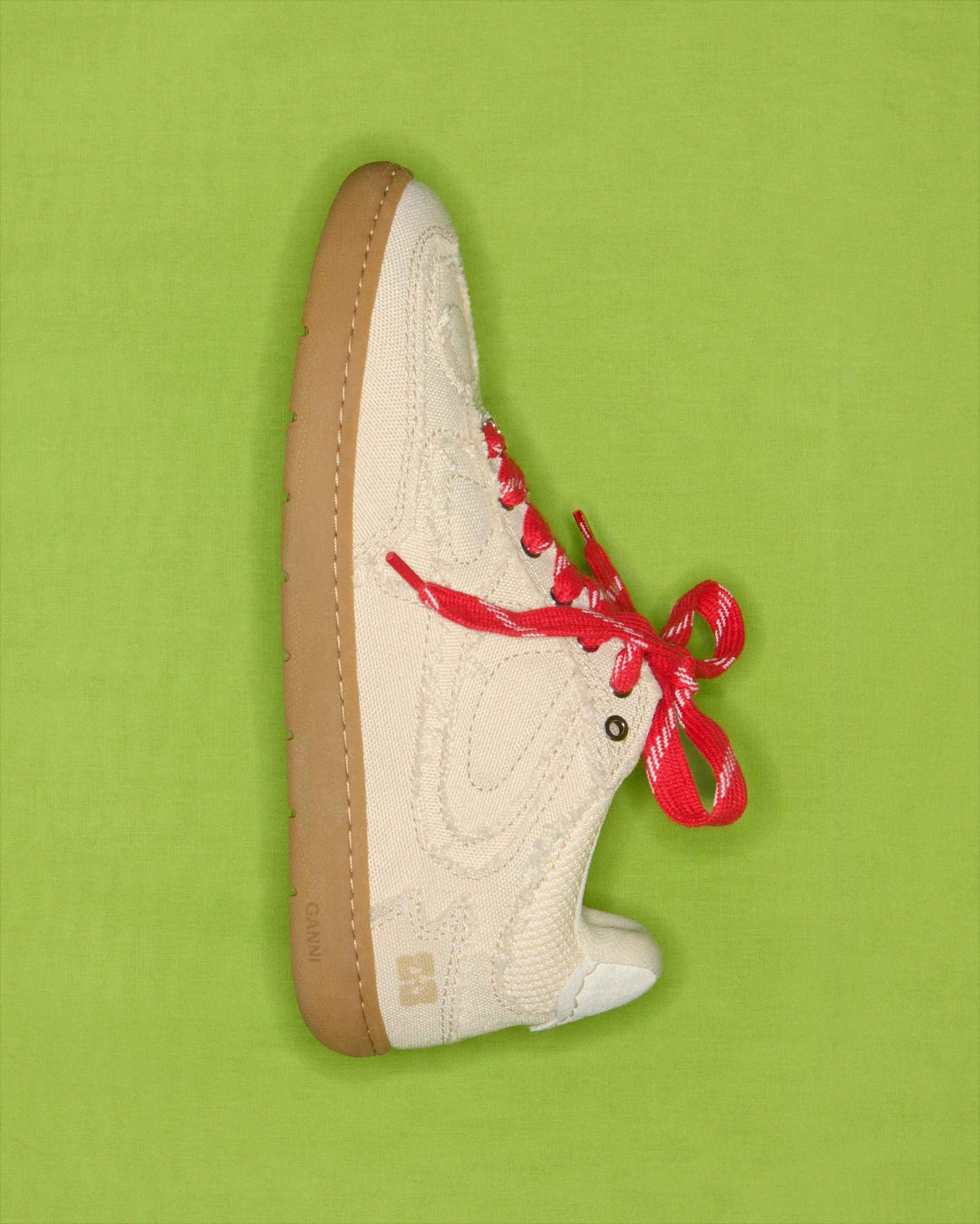 哥本哈根时尚品牌 GANNI 正式发布全新鞋款 08 Sneaker,延续 GANNI 一贯「大胆与优雅并存」的品牌理念并从品牌蝴蝶 Logo 种提取意向,在细节设计上独具匠心:鞋身各个裁片以蝴蝶弧形轮廓演绎,鞋带孔部位则饰以不规则荷叶拼接,并配备饱满鞋领与复古生胶外底。此外,鞋款均额外配有一副撞色鞋带,金属质感的蝴蝶形鞋带挂饰也进一步强化了视觉识别度。目前鞋款首发推出丹宁蓝、羊皮纸白与炽热黄三种配色,分别采用 GOTS 认证有机棉、Tex2Tex 再生材质与融合 TENCEL™ 纤维的 Pélinova® 材质打造,现已上架官网,感兴趣的朋友不妨前去选购。