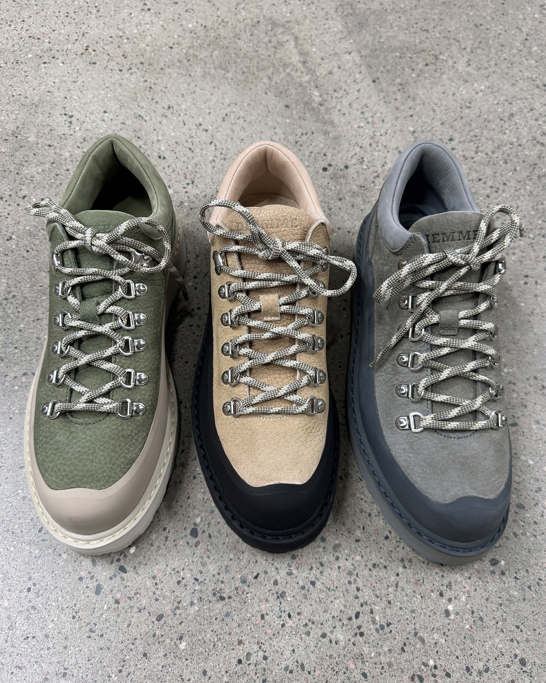 巴黎时装周将近,与 DIEMME 合作密切的 HIKING PATROL 于稍早前释出了前者 2026 春夏系列的部分鞋款图片:Movida 首次以长绒麂皮材质演绎;设计灵感源自经典的 90 年代水袜的 Pantelleria 除了迎来更多配色,还在保留相同鞋底的基础上衍生出了适应更多季节的全新版本——鞋面组合质感差异明显的皮革;Roccia Vet Gomma、Cornaro Due Gomma 等品牌标志性轮廓则以拼色形成呈现,各位不妨瞩目。