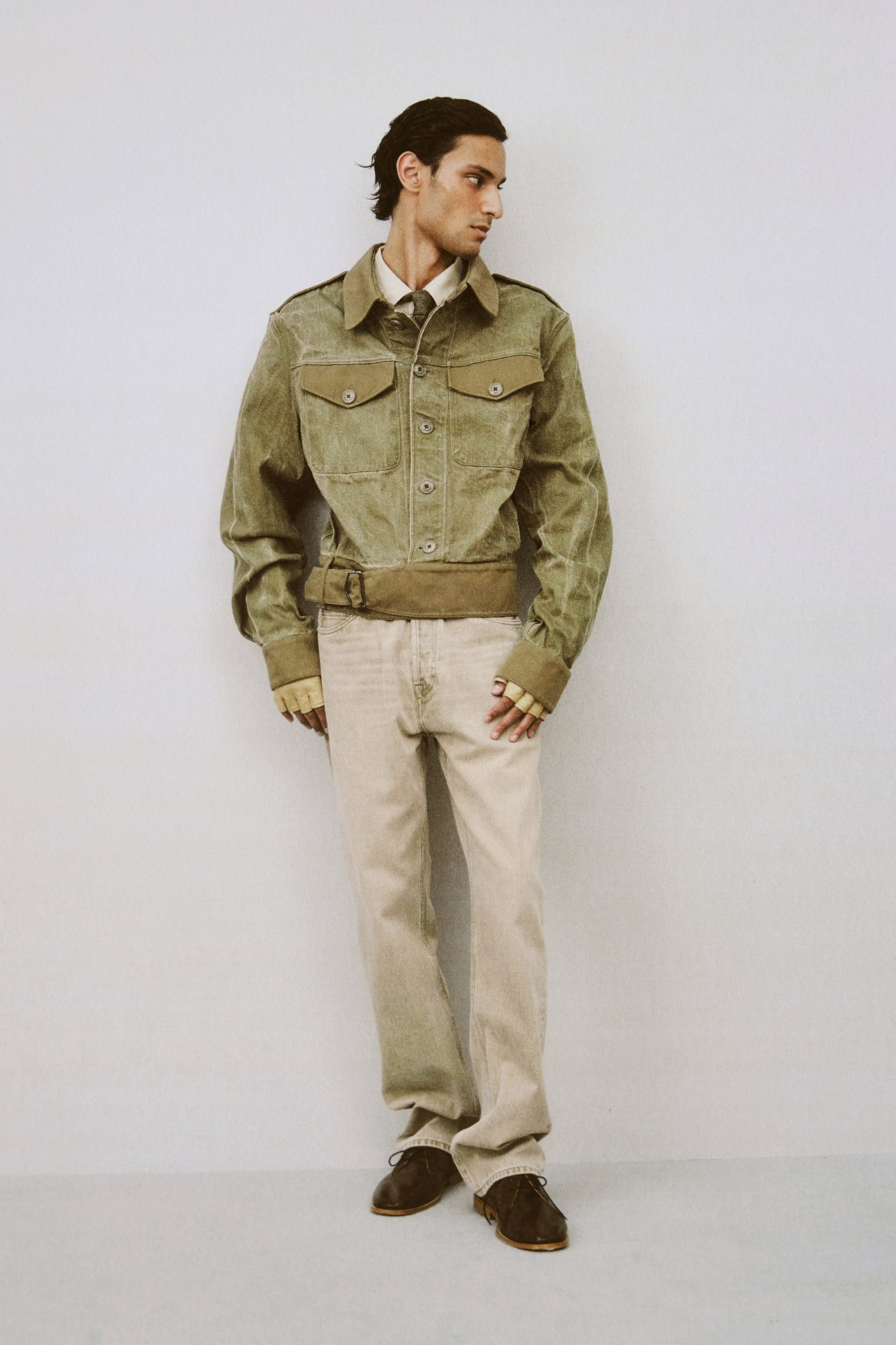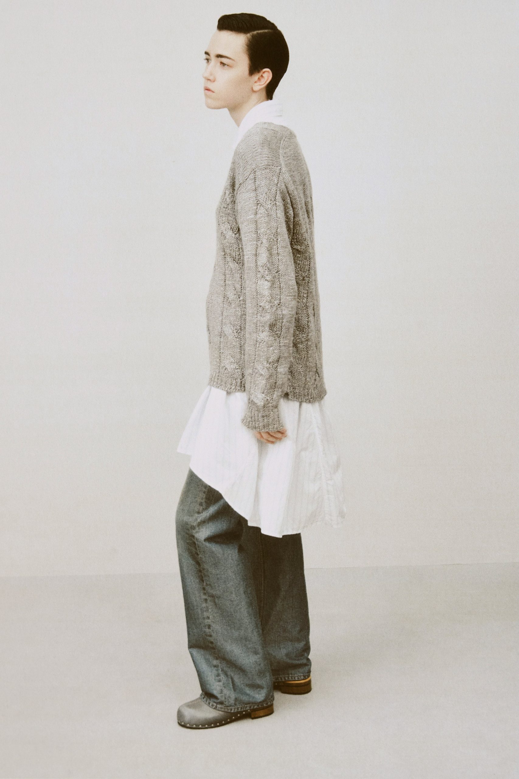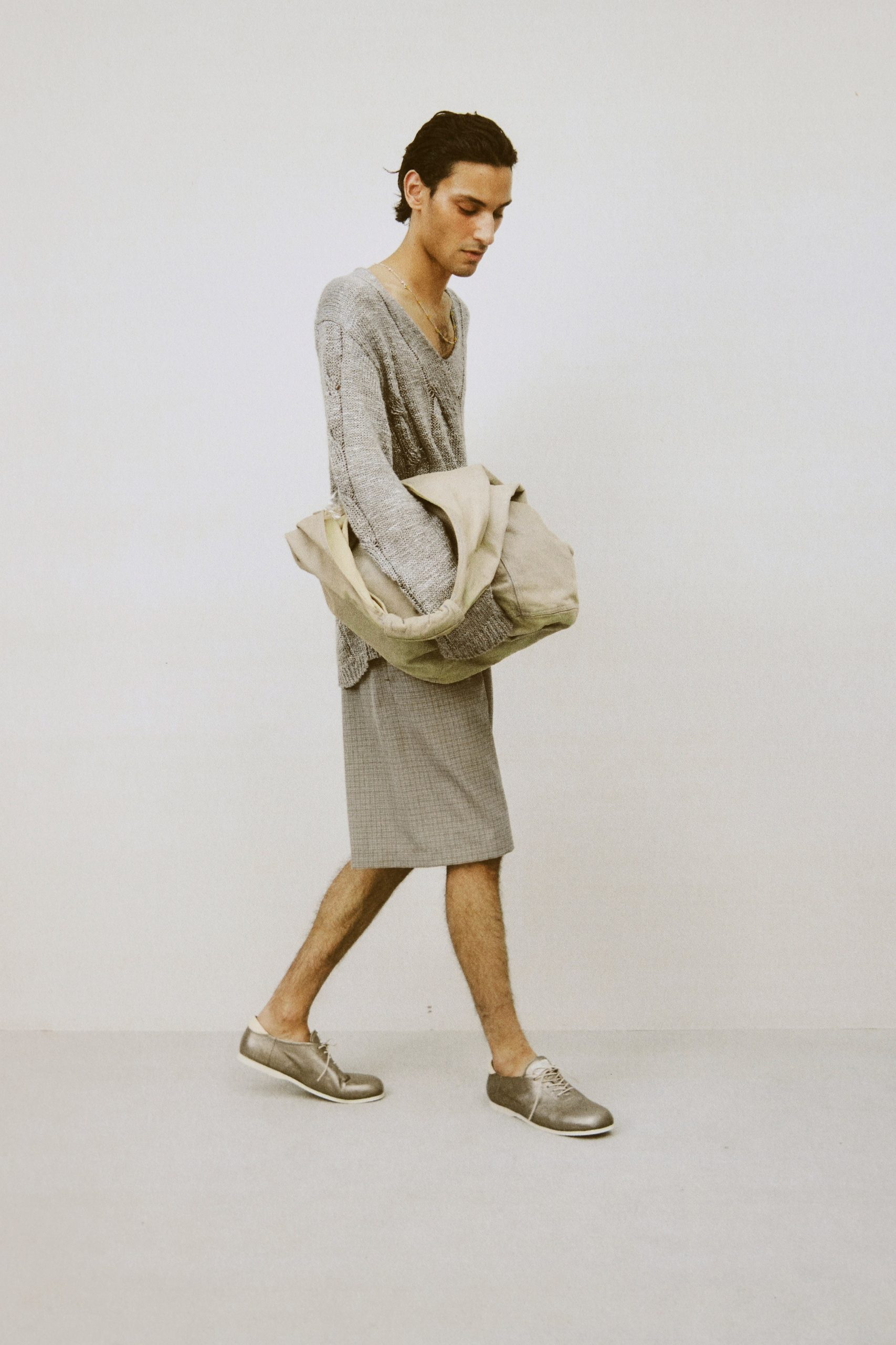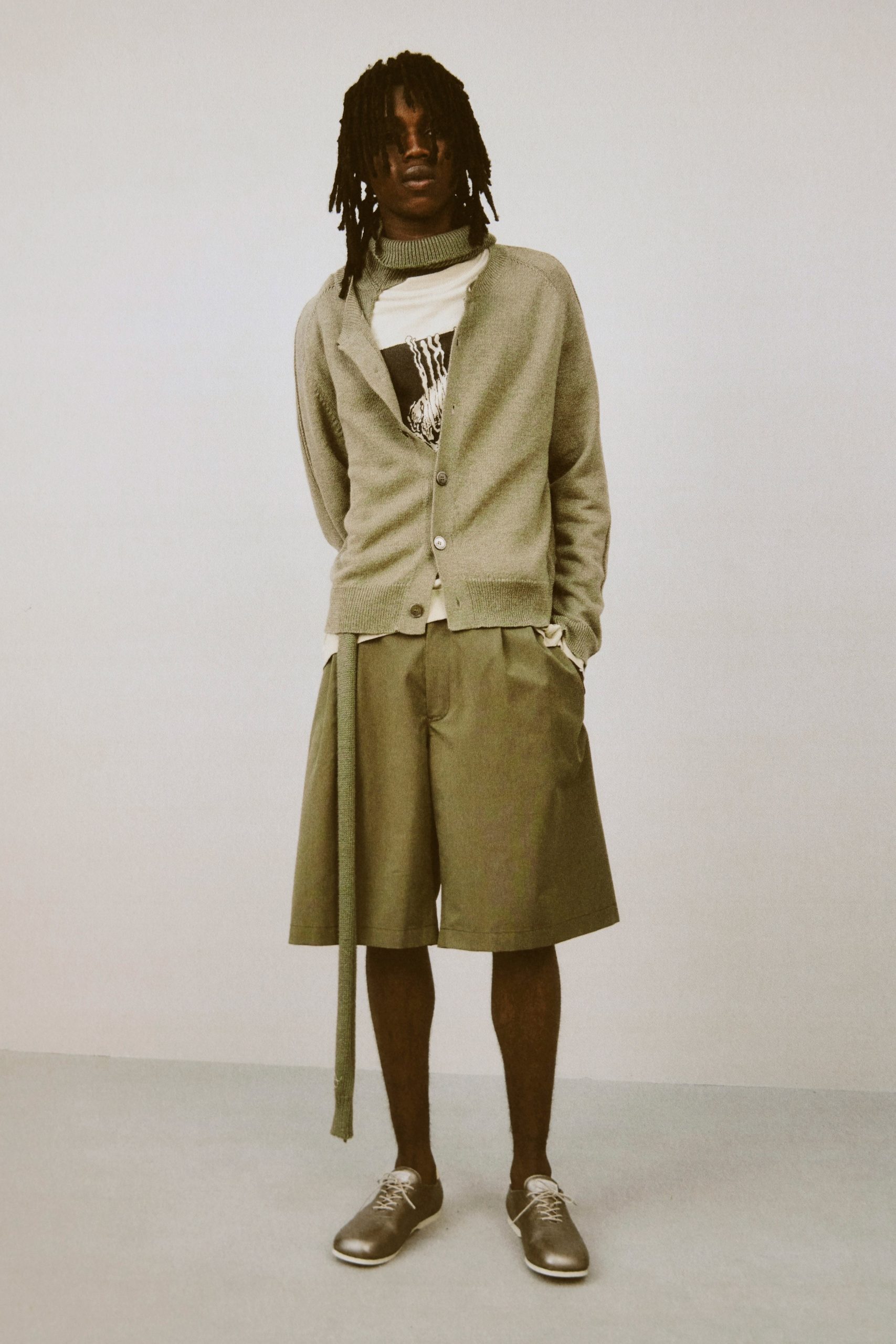 男女装造型比往季更加和谐。男式制服夹克通过塑形设计更显女性柔美,女装中常见的小开衩也被加入男装。蕾丝贯穿了军装造型在内的整个系列。Our Legacy 热门单品得以全新再现,例如燕尾服飞行员夹克或 2005 年首个系列中的「死亡天使」印花。还有一些面料首次亮相,例如彩虹色的针织面料——曾并未被纳入考虑。