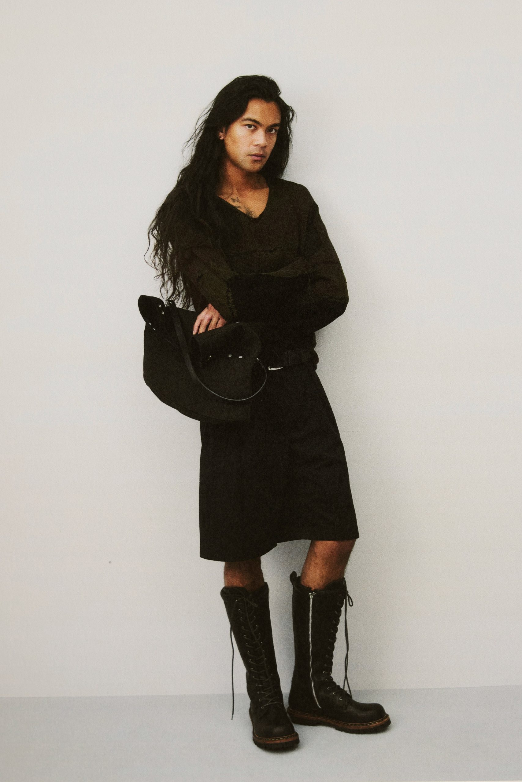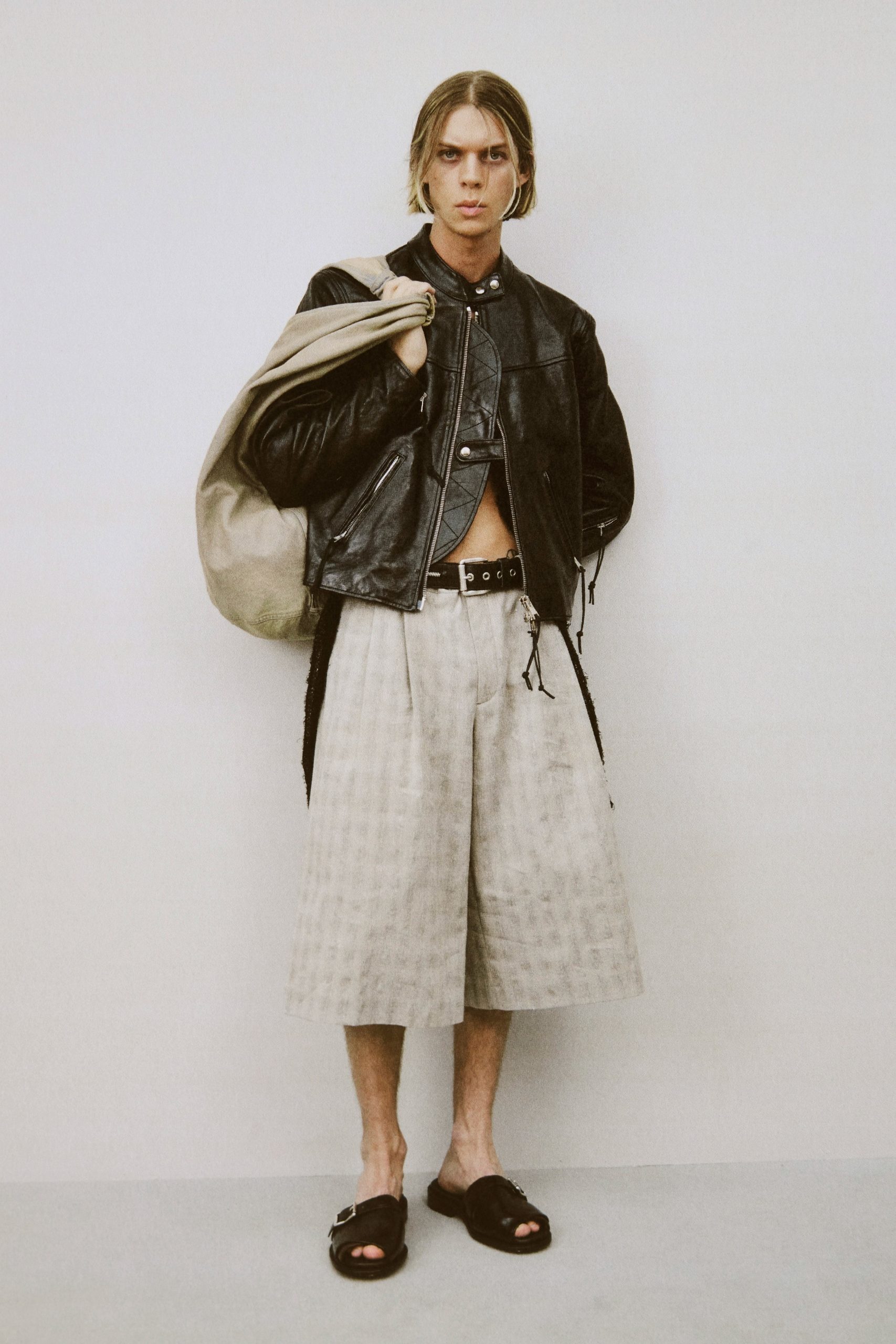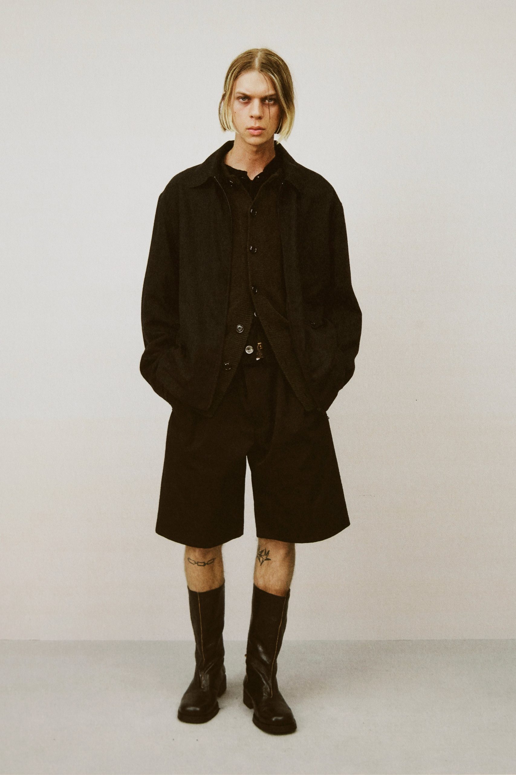 Our Legacy 2026 春夏系列以内省为主题,系列名「B-Sides」旨在纪念品牌成立 20 周年:并非重温过去的辉煌,而是深入挖掘那些未曾被提及的事物。团队仔细筛选了从未面世的款式原型、粉丝和评论家的反馈、内部笑话,以及代表着他们工作方式的静谧时刻。最终呈现的该系列如同一本共享日记,私密而富有层次。这一理念渗透到了设计师的呈现方式中:面料采用水洗、打蜡、浸染、斑点处理、粗糙、柔软、做旧、油性、釉面和深色处理。黑色调也丰富多样——包括空灵黑、烟灰黑、晶须黑、深渊黑、黑玉黑等等。