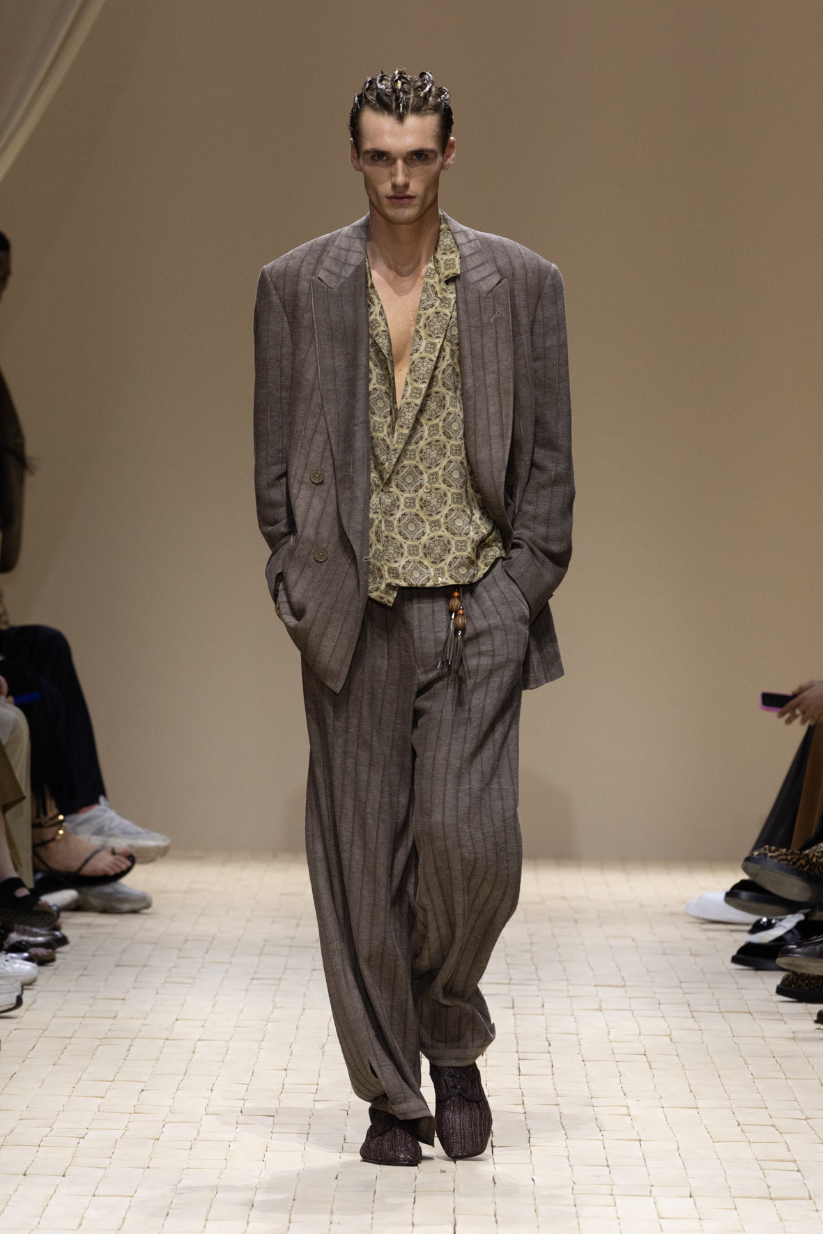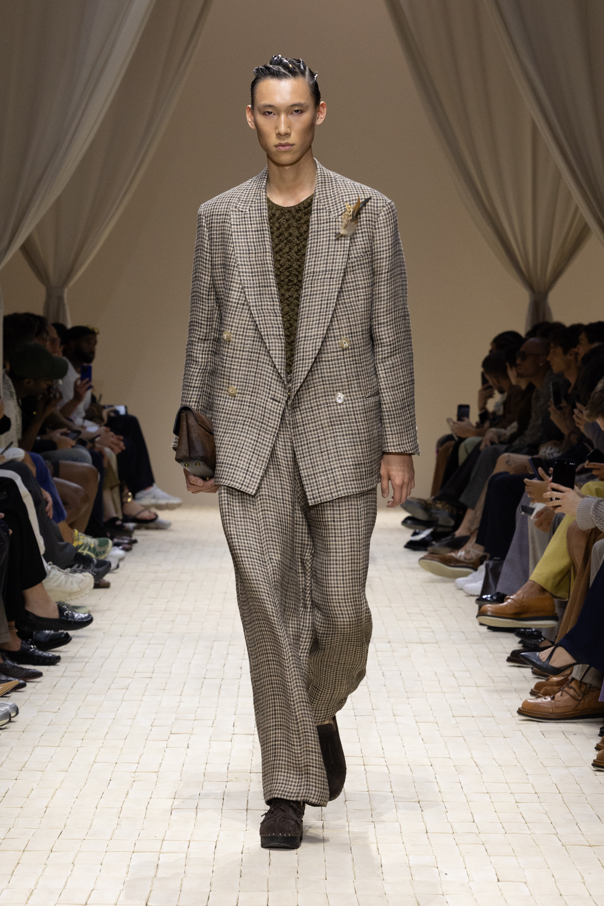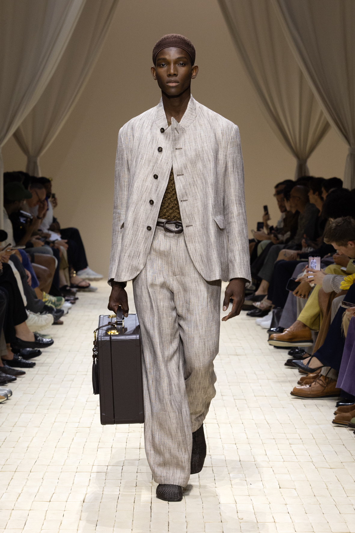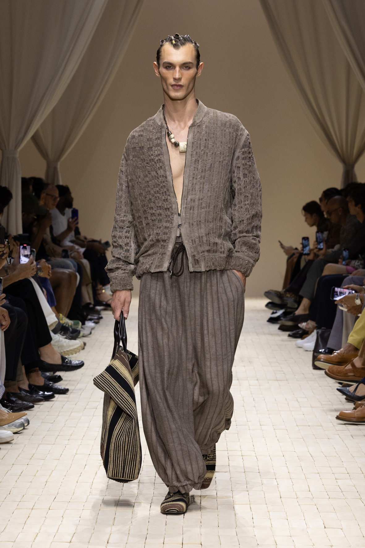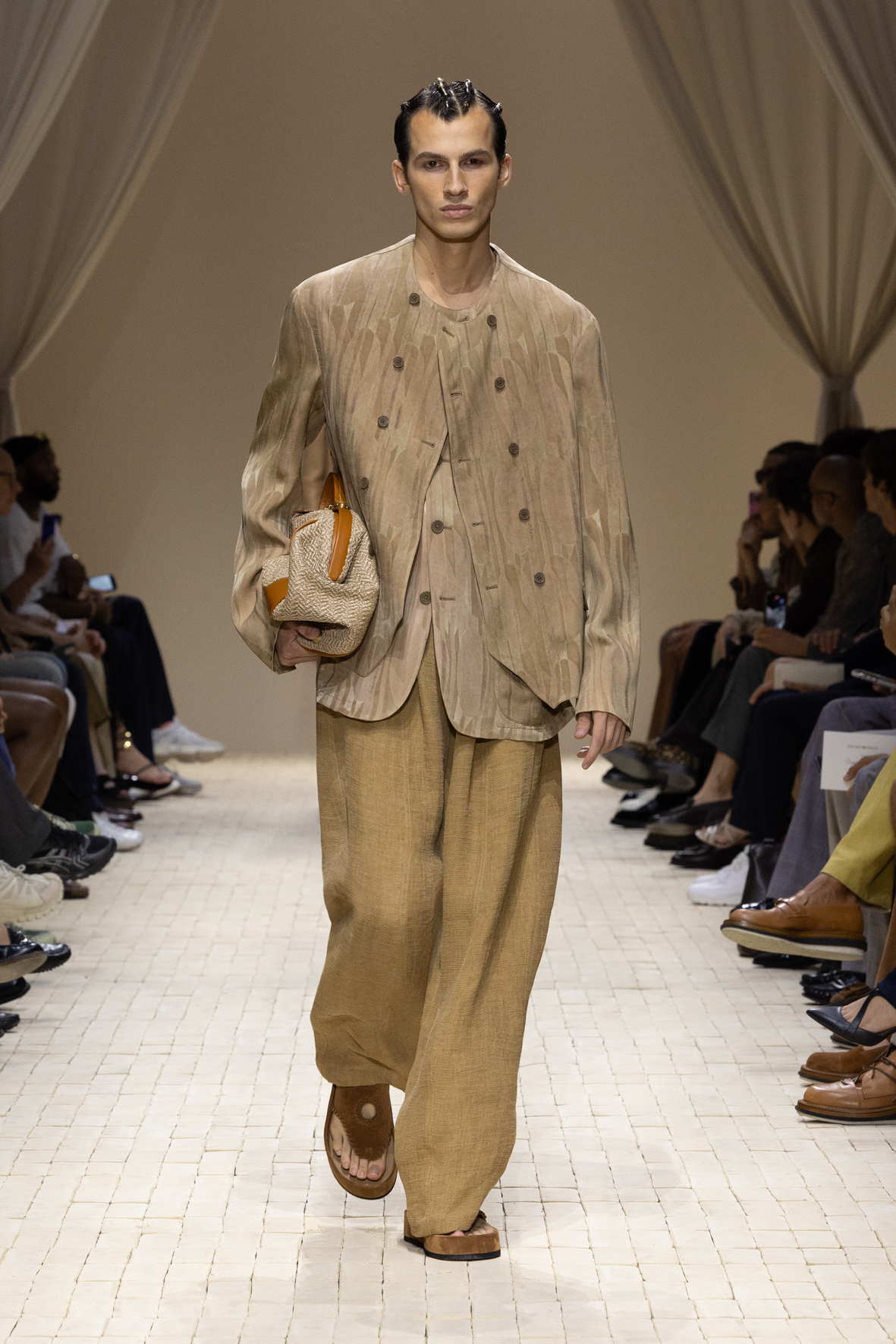 在这一季 Emporio Armani 男装系列中,乔治·阿玛尼先生重新审视并焕新了其设计中一以贯之的廓形与态度,回归其美学理念的基石: 对多元文化的真挚热忱,以及对通过日常穿着、用不同方式表达自我的无限探索。