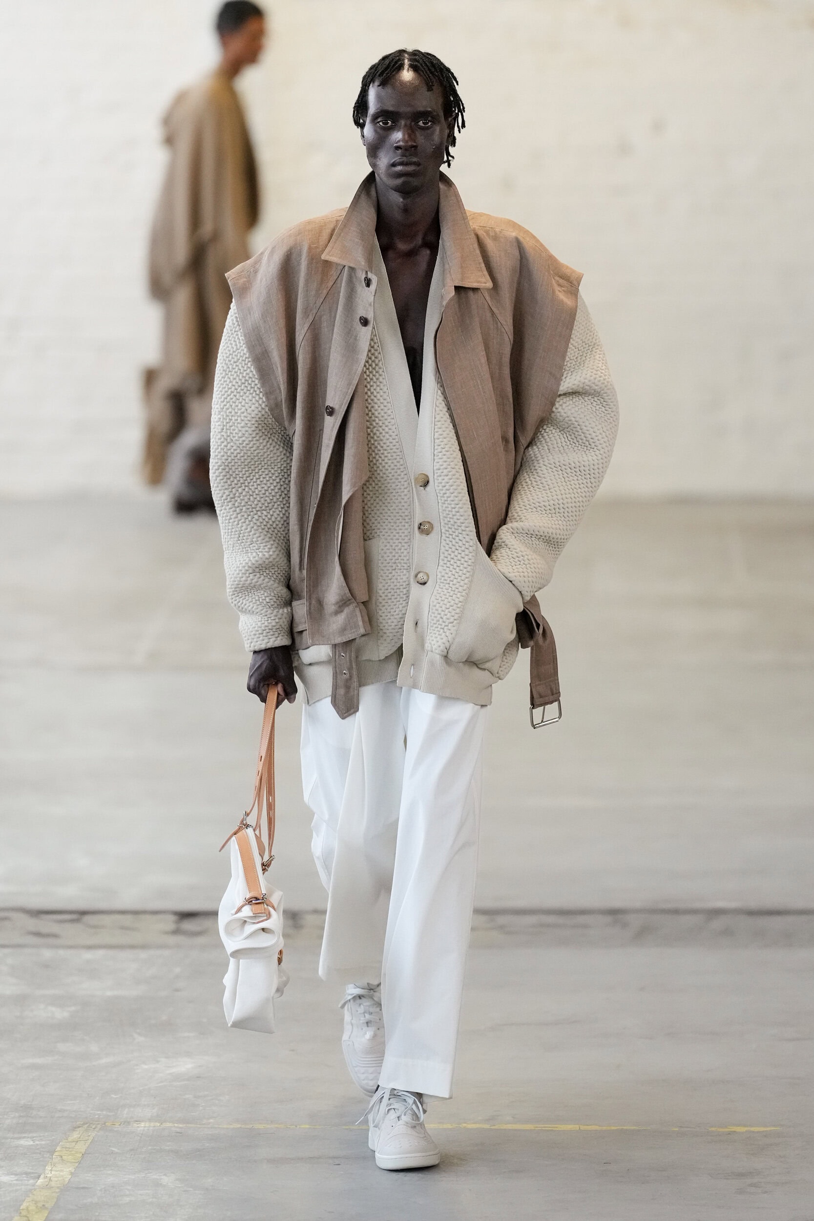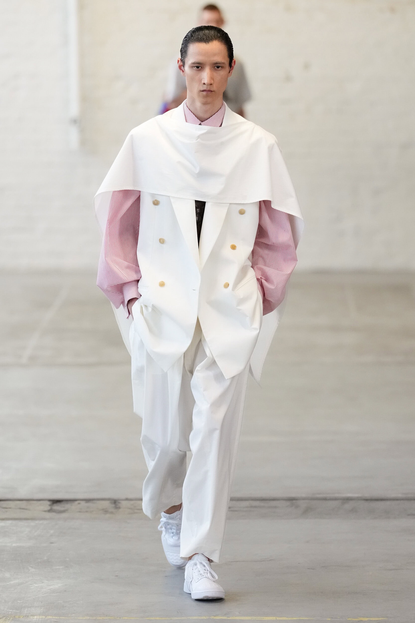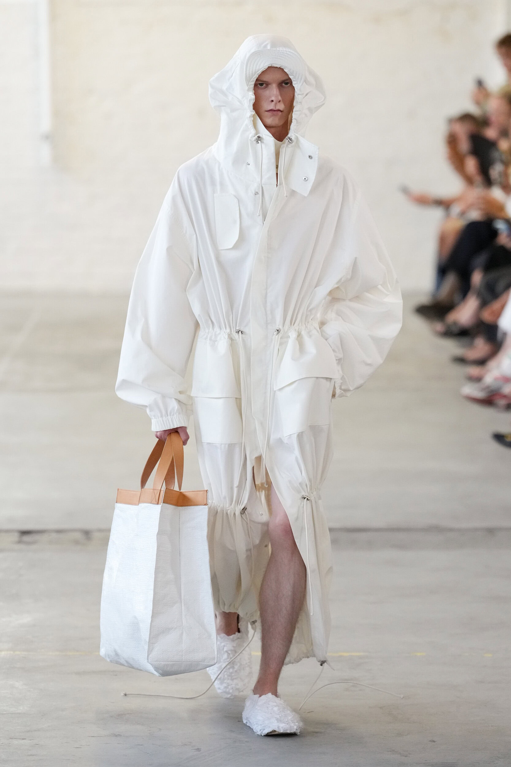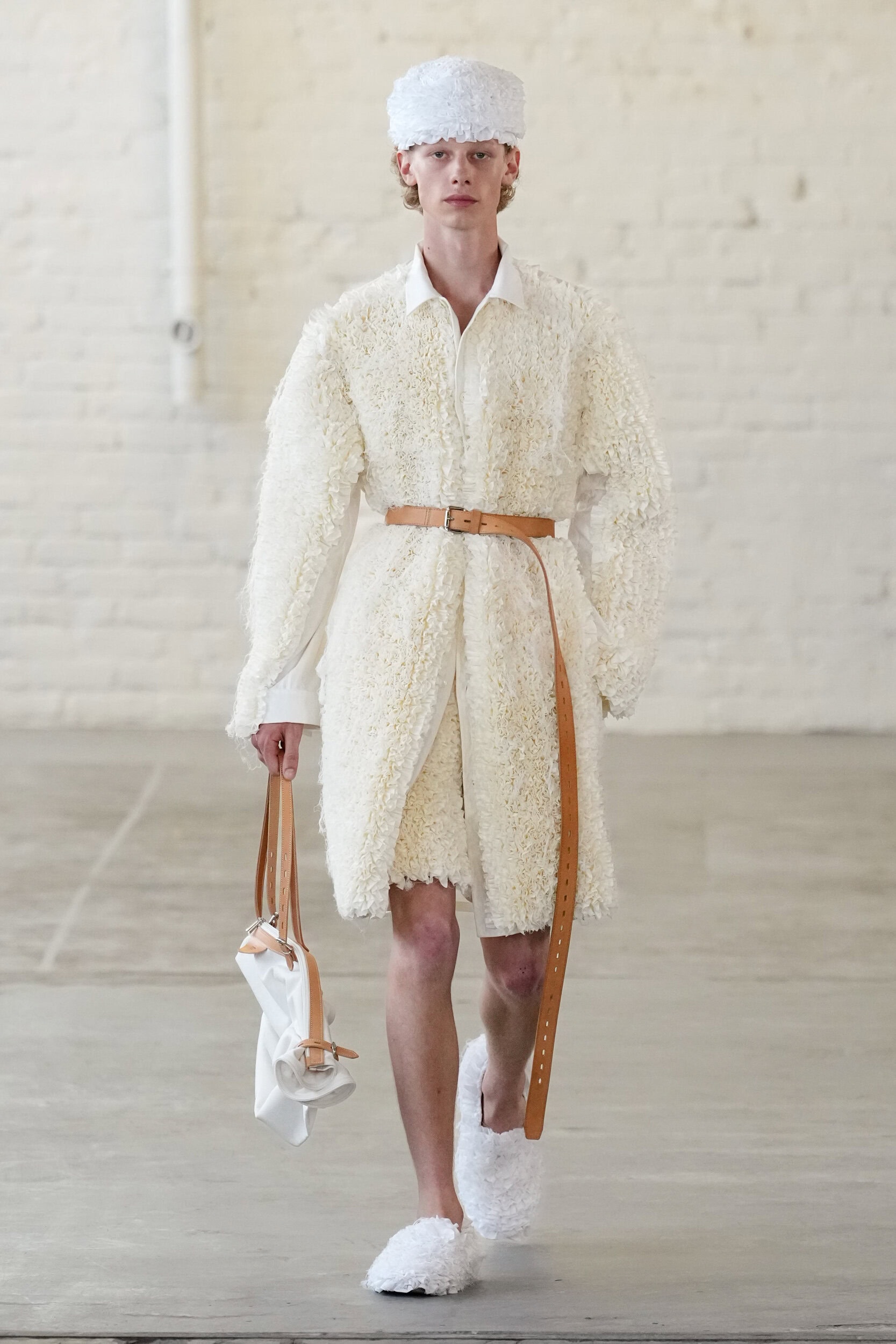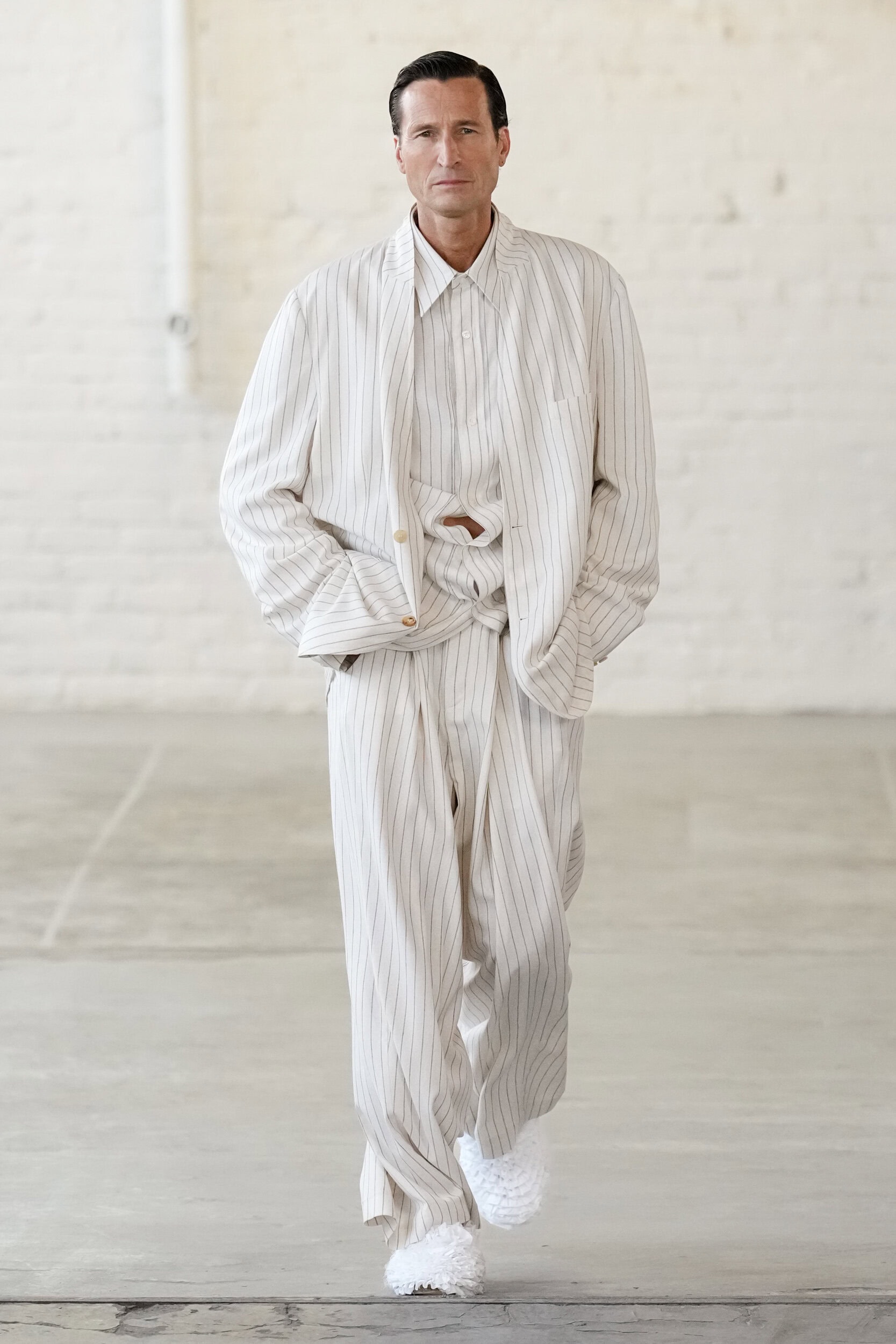 这一变化背后,或许与设计师近期迁居意大利、靠近生产端的工作状态有关,也映射出他对当下时代情绪的回应:在不安的现实中,以更柔软、包容的衣物形态,寻找一丝通透与喘息。