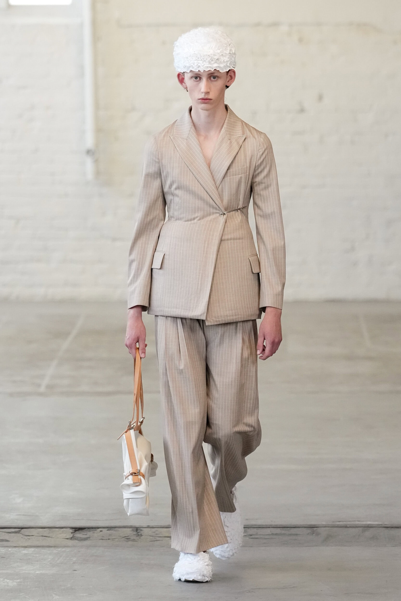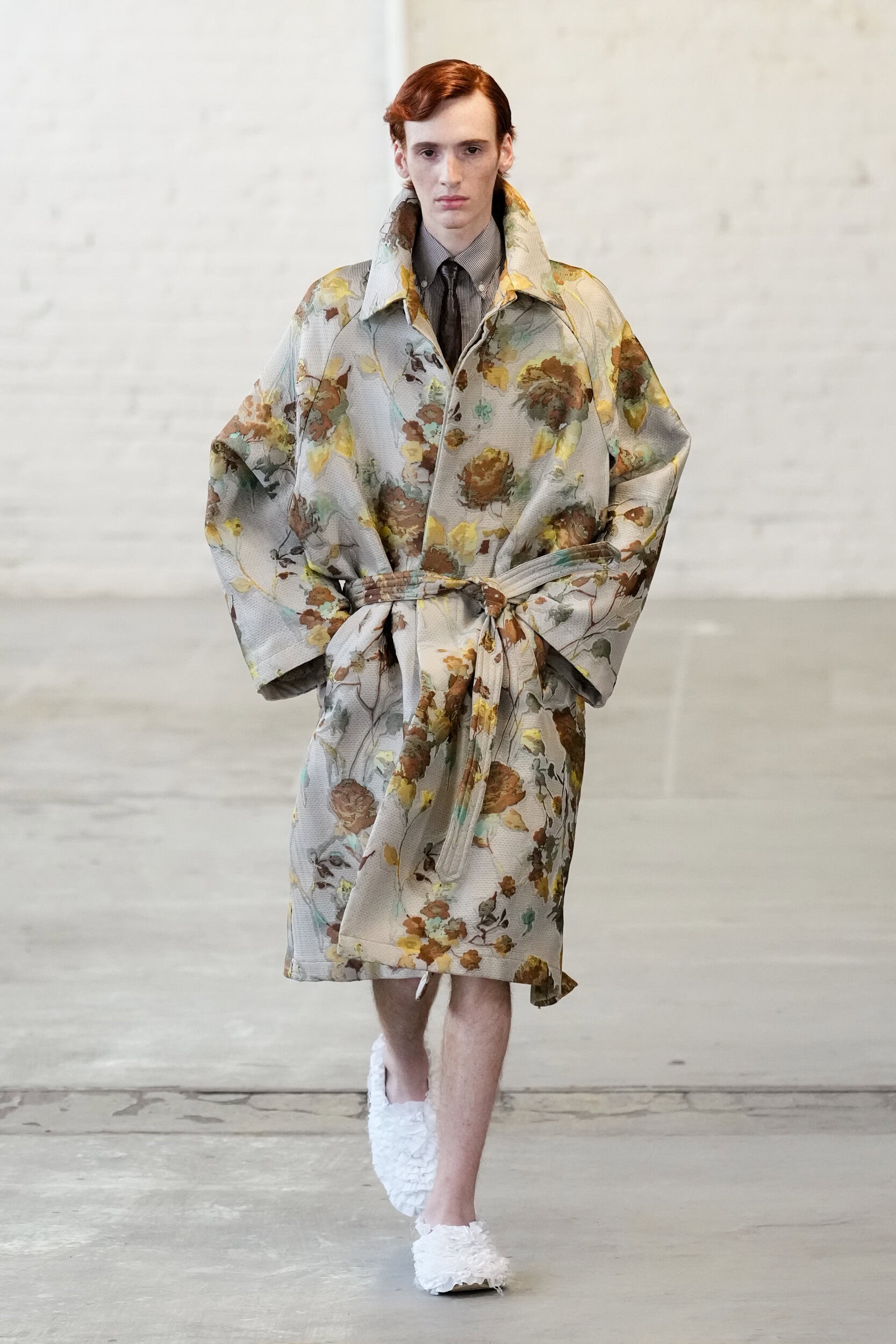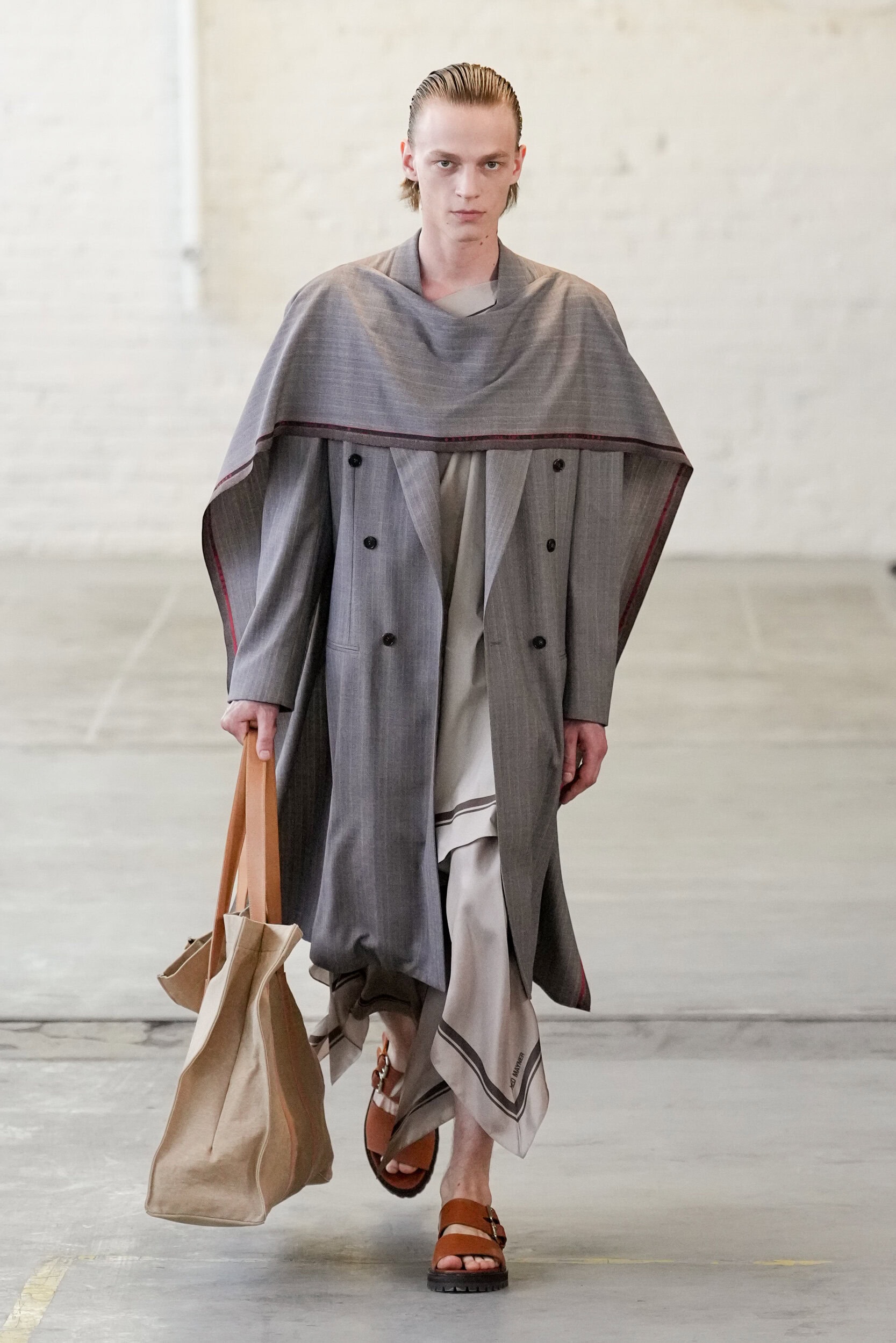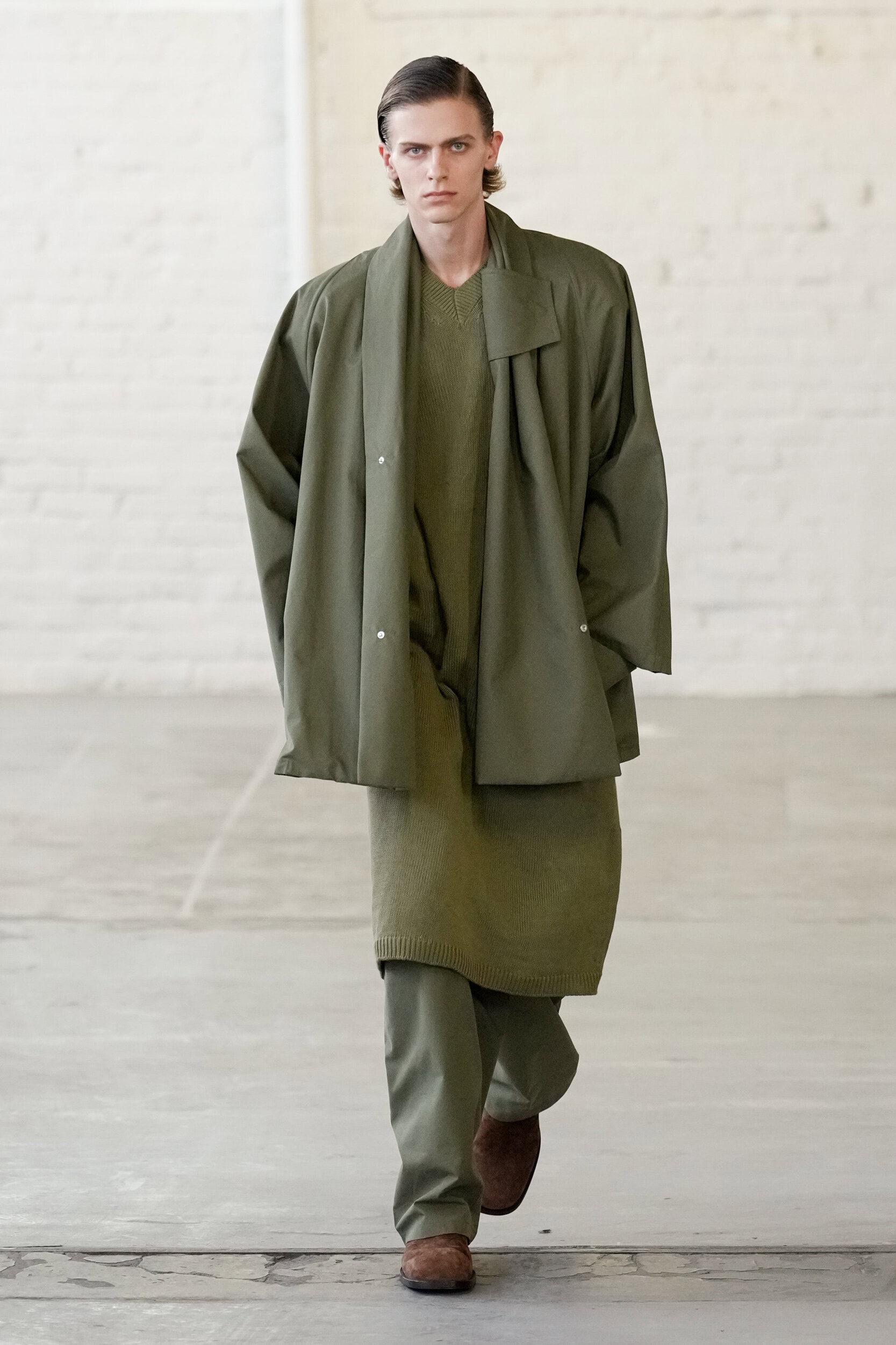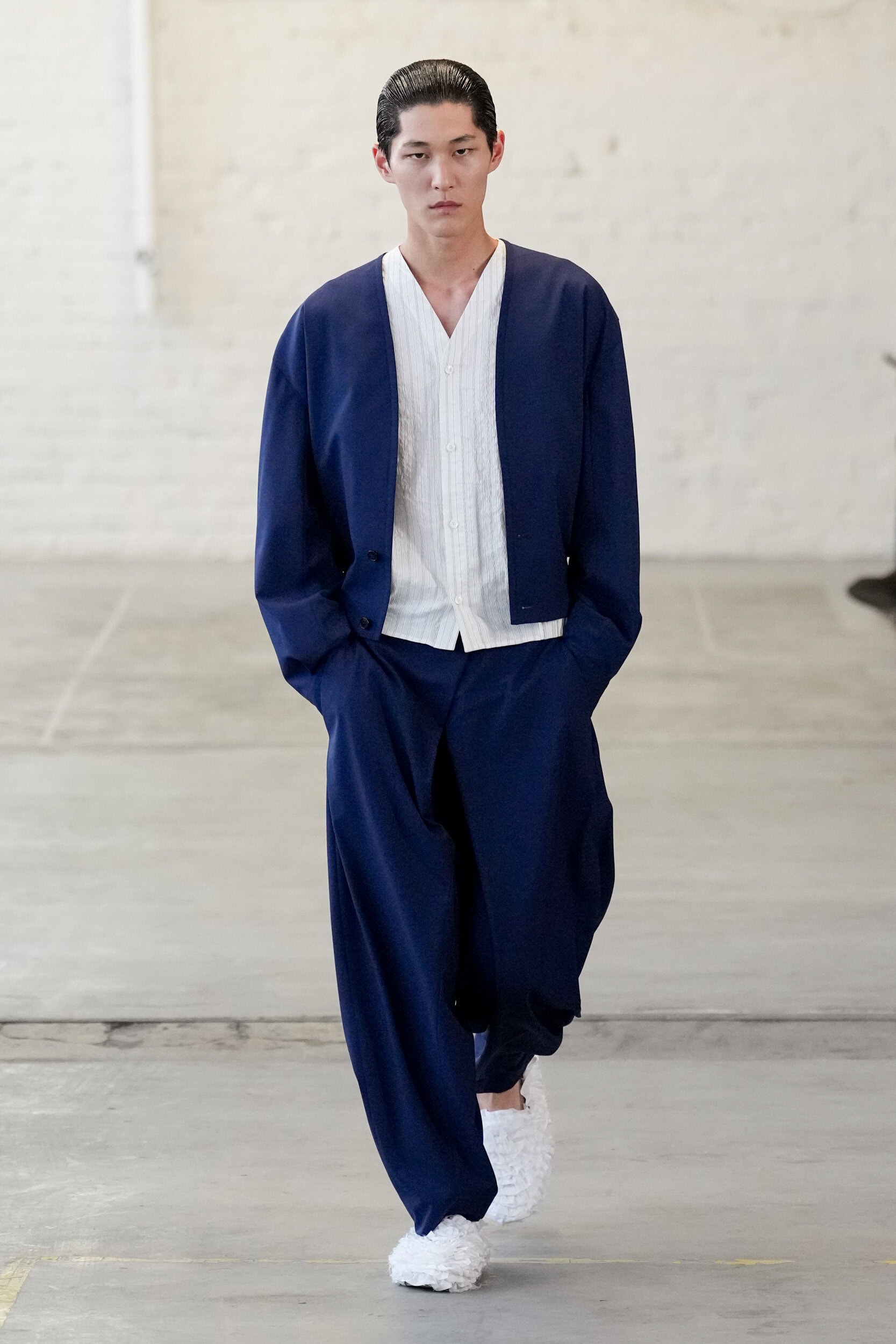 这一变化背后,或许与设计师近期迁居意大利、靠近生产端的工作状态有关,也映射出他对当下时代情绪的回应:在不安的现实中,以更柔软、包容的衣物形态,寻找一丝通透与喘息。
