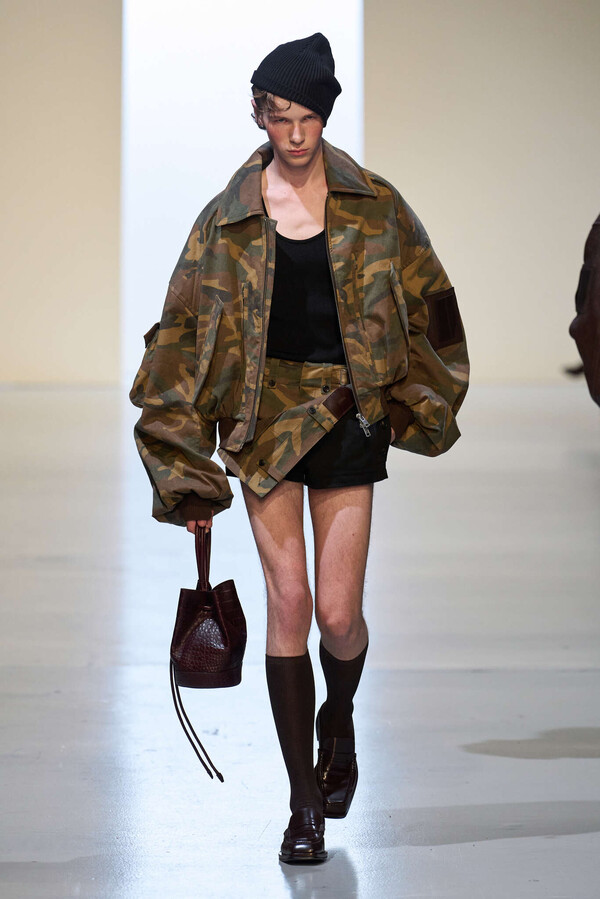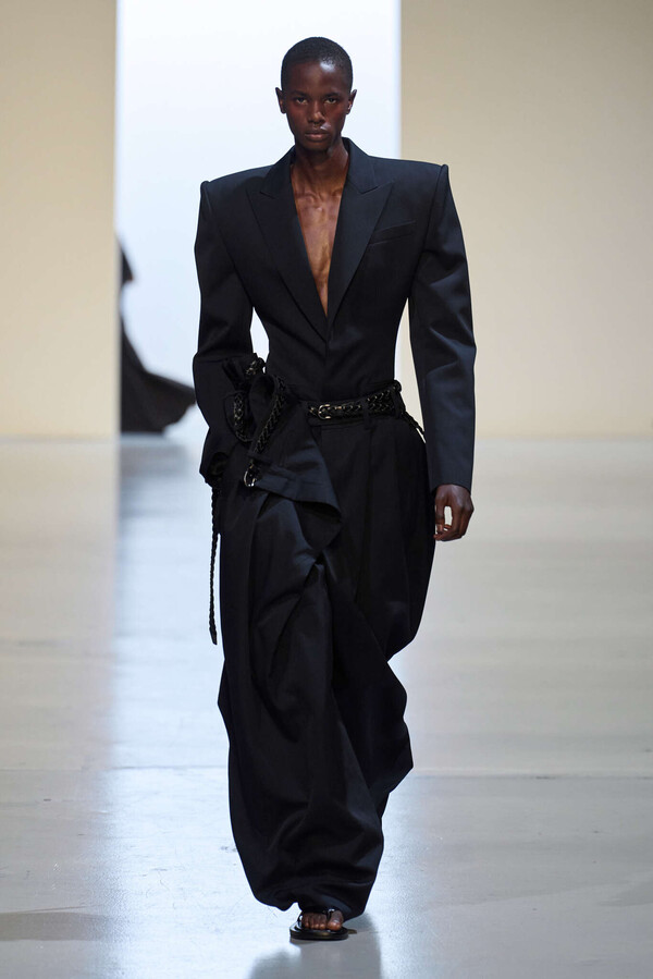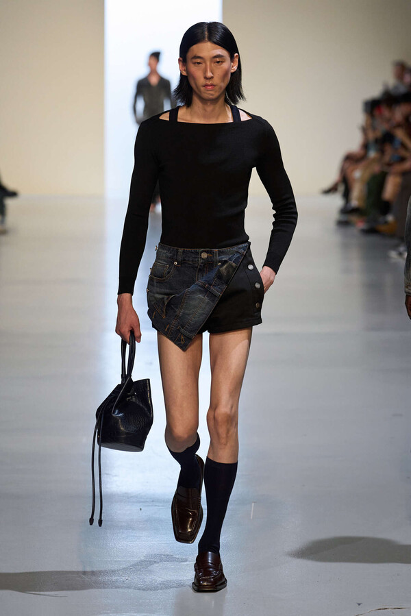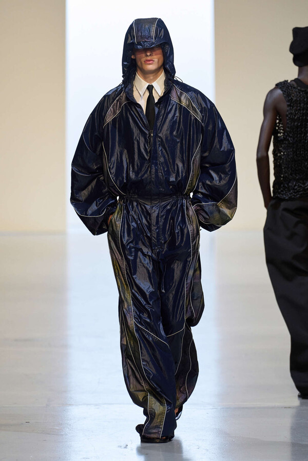 秀的中段倾向于正式与非正式、优雅与运动、实用与休闲的结合,最终则回归到 Juun.J 早期的曲线美理念,传达出 Jung Wook-jun 的理念:成长也意味着跌倒,但最终还是会重新站起来。