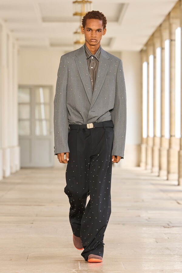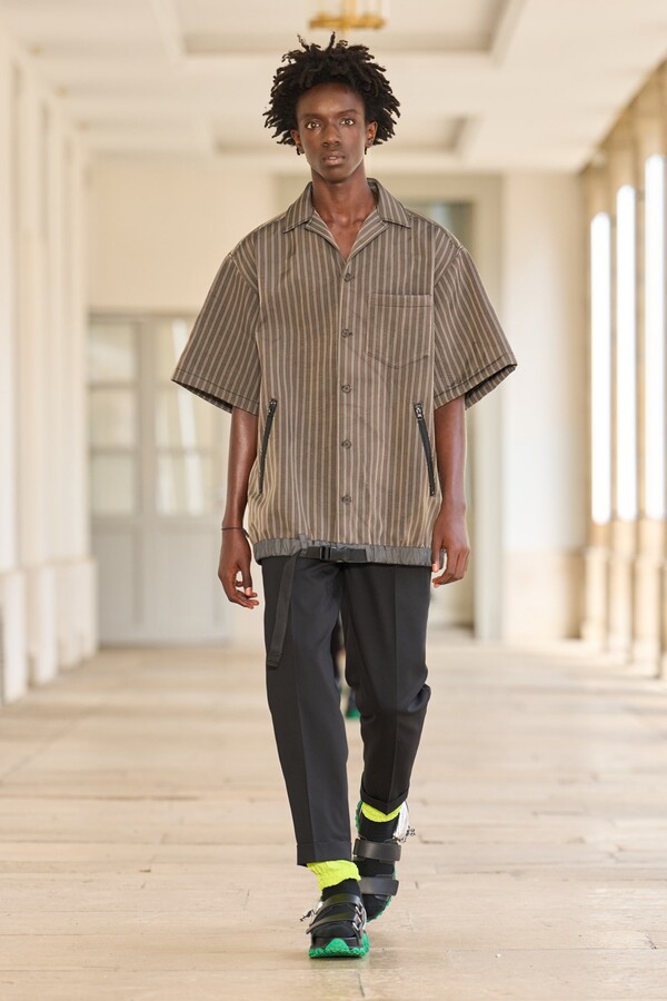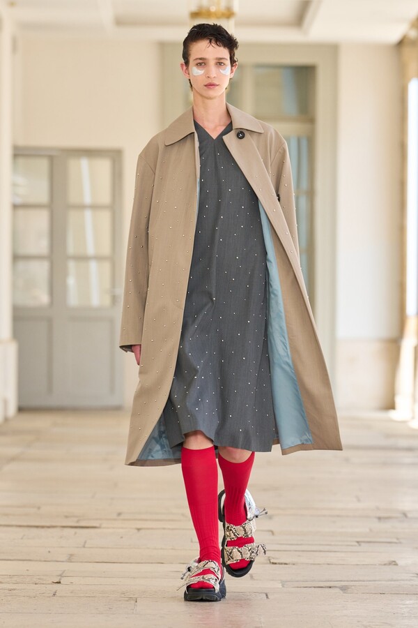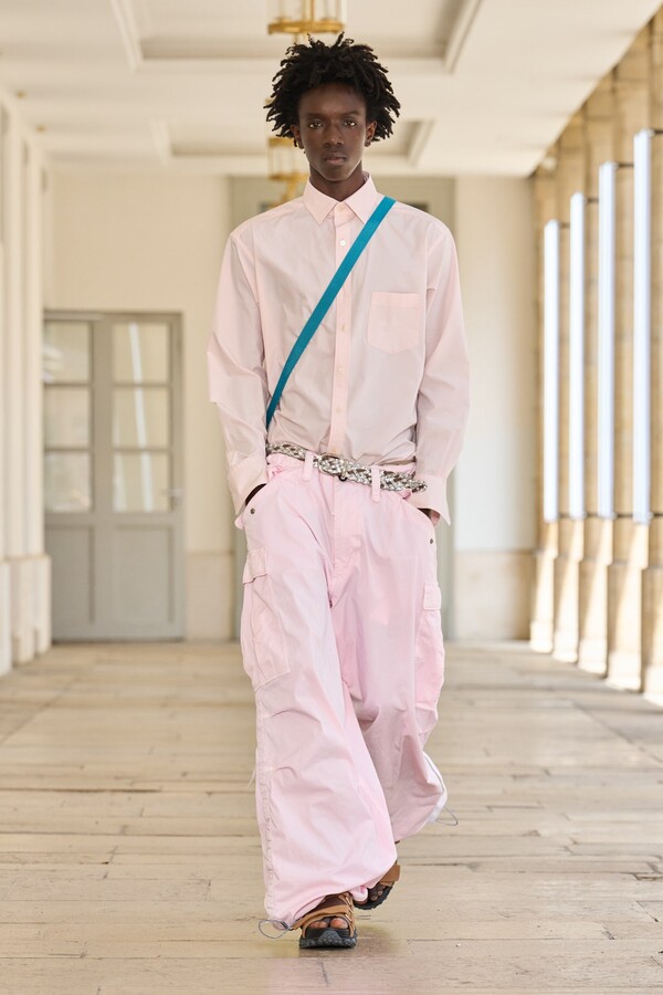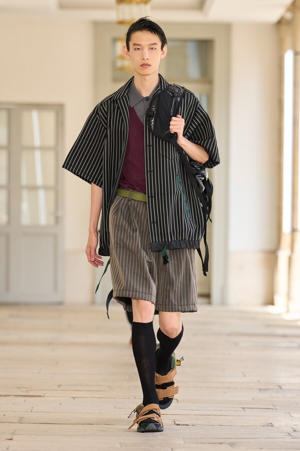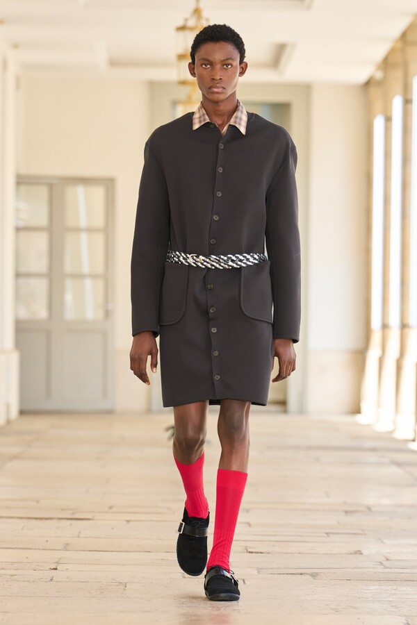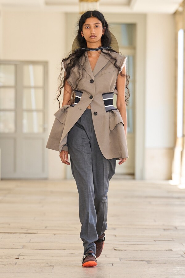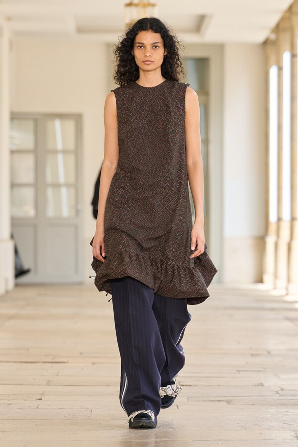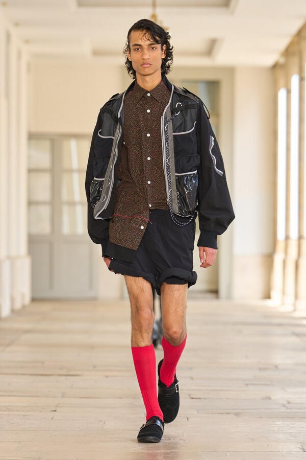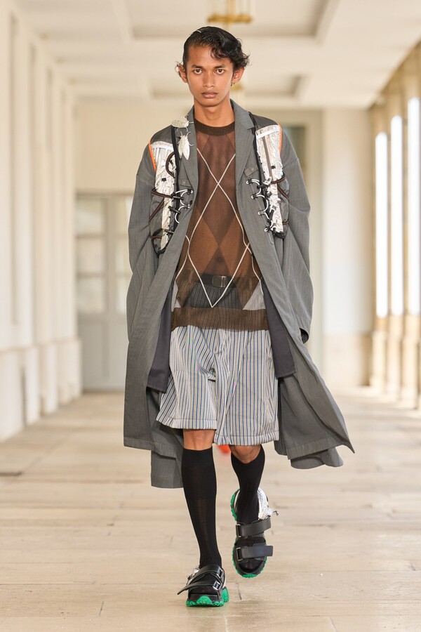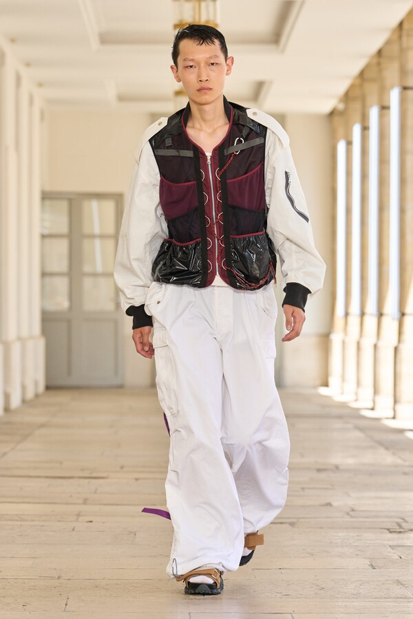 该系列还展示了轻薄的夏季羊毛面料,它们层叠在纽扣衬衫上并与之形成对比,展现出 90 年代极简主义风格。短夹克背面的镂空等实用细节则增强了透气性。虽然Kolor 长期以来在男装领域占据重要地位,但堀内太郎希望进一步发展女装,使其成为 Kolor 未来的代表性优势。