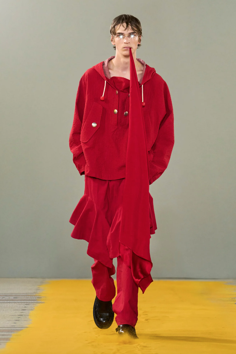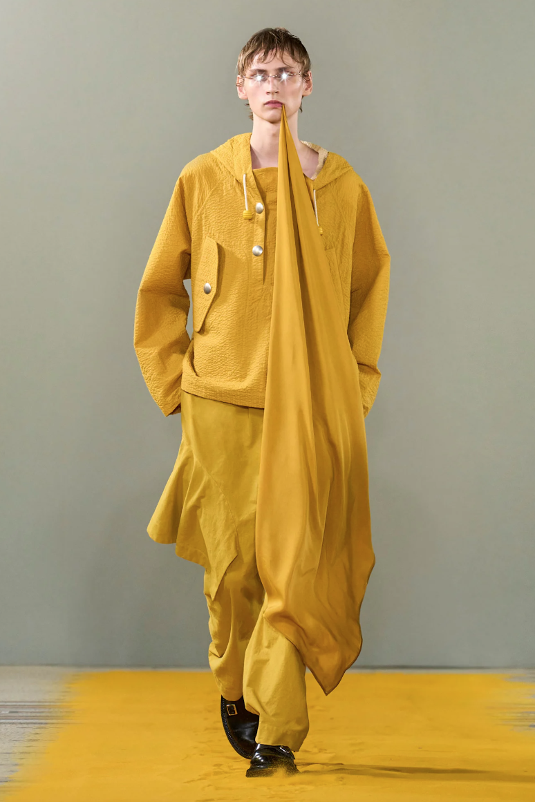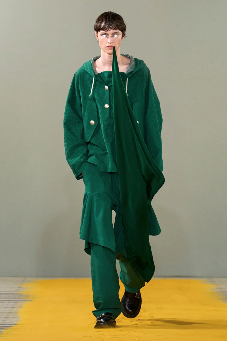 Craig Green 2026 春夏系列是一场诗意的旅程。以「睁大眼睛,让新的光线照进来,展现新轮廓」为理念,设计师从披头士四位成员的审美、专业性和创造力中汲取灵感,打造出一个充满迷幻、印花等元素的趣味系列。
