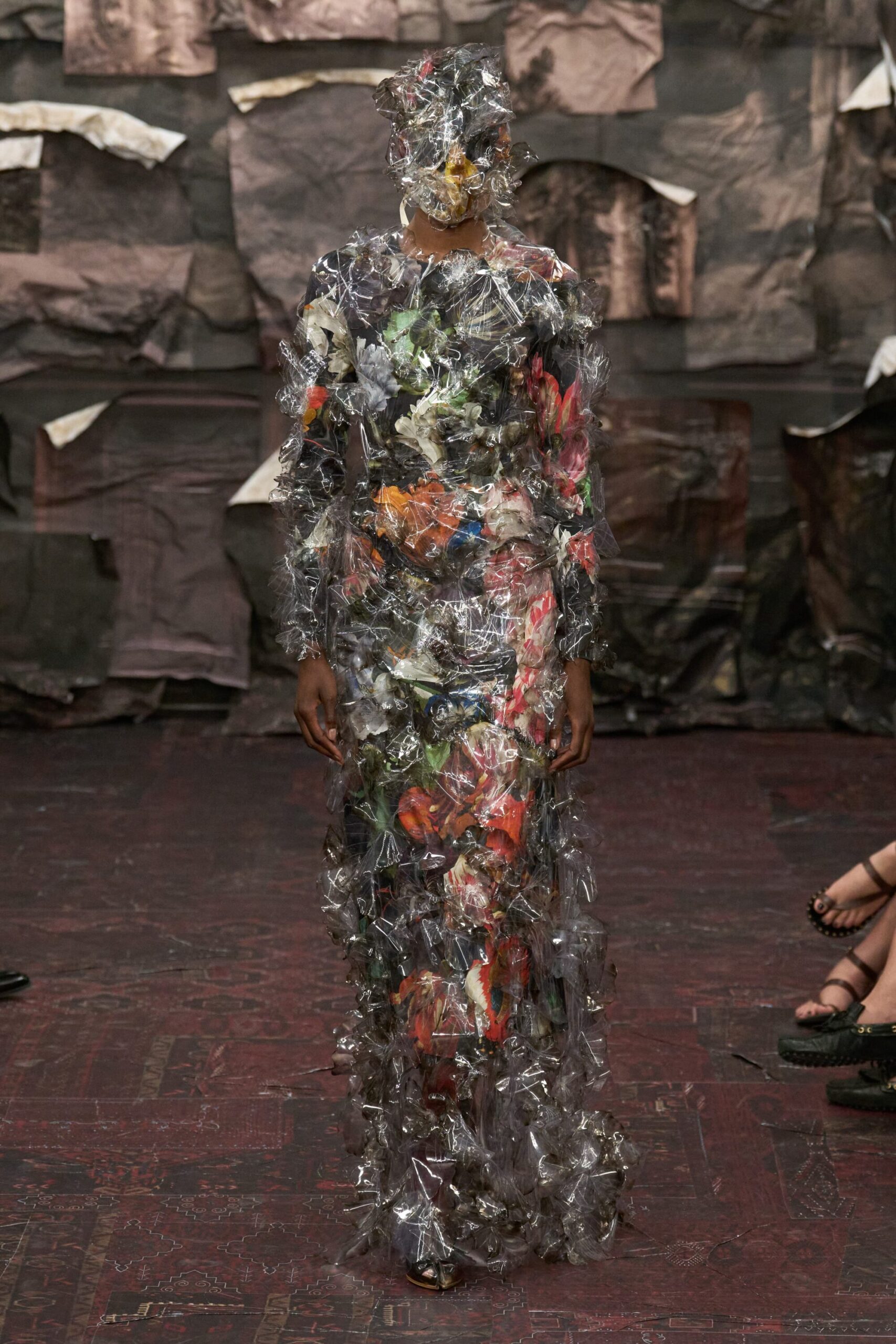 此次系列中,Glenn Martens 大胆使用透明塑料、拼接布料、废旧珠宝等创新材质,加入了对品牌标志性元素的致敬。他用复古艺术品、古董勺子等象征性物品,探索「保存」和「剥离」的主题,表现出 Martin Margiela 遗产的延续与创新。整体设计反映了一个追求概念性时尚交流、打破传统时尚消费界限的全新面貌。