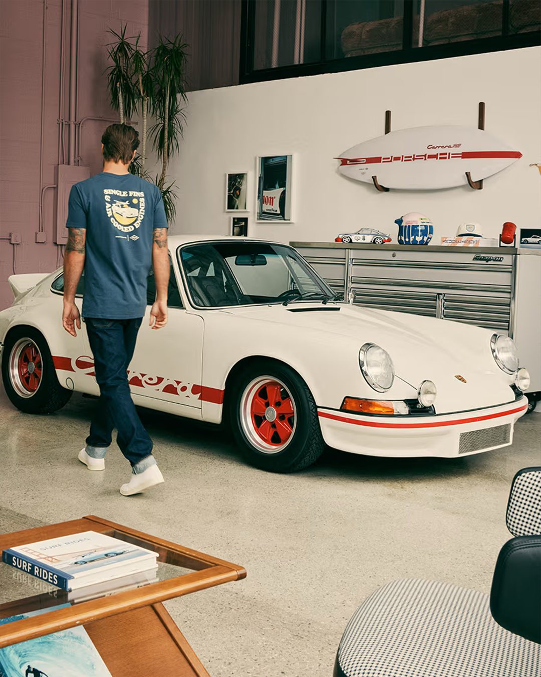日前加州冲浪品牌 Almond Surfboards 发布了与 Porsche 的全新合作系列,此番双方以经典的 1972 Porsche 911 Carrera RS 2.7 为灵感,带来一系列复古风格的联名单品,包括印花短袖、帆布包、棒球帽等服饰单品,其中令人瞩目的当属联名款冲浪板,于加州手工打造的燕尾冲浪板上亦有手工绘制的 Porsche 911 Carrera 元素,限量 72 块发售,俨然是此次合作的核心单品。Porsche x Almond Surfboards 全新合作系列现已正式发售,感兴趣的大家不妨关注一波。
