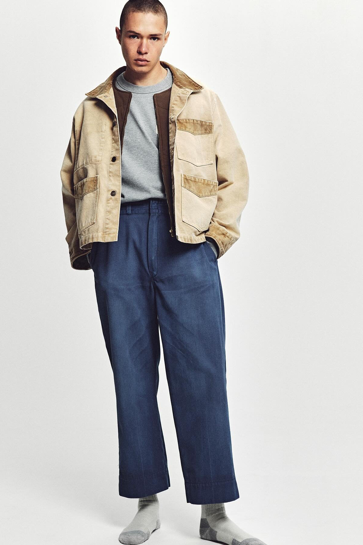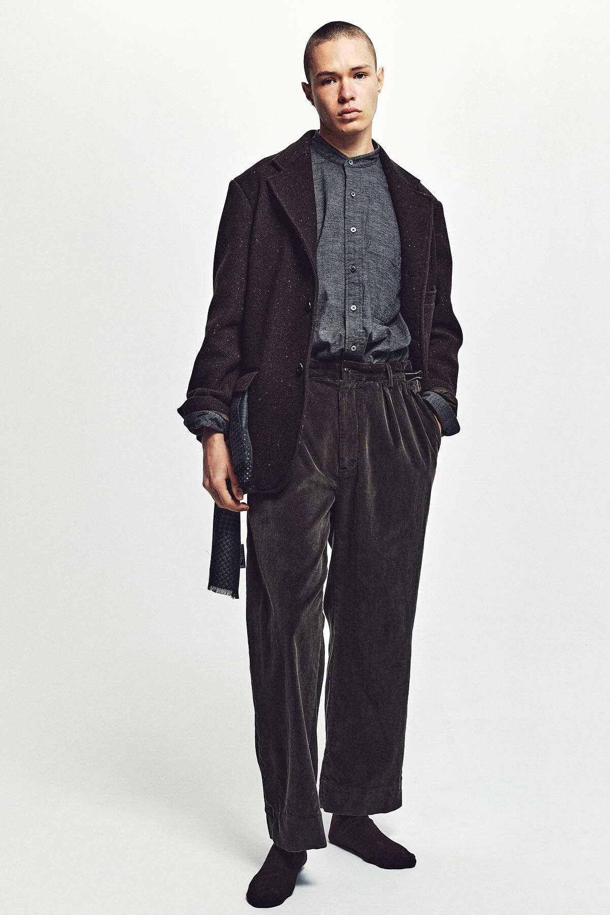 由 DAIWA PIER39 设计总监 Shinsuke Nakada 在 2023 年推出的新品牌 Unlikely 发布了 2025 秋冬系列。Unlikely 通常以常春藤、工装、运动装和美国传统图案及元素的融合为特色,新一季涵盖了外套、轻薄西装、衬衫、运动衫、裤装和行李箱等多种单品。牛仔卡车司机夹克、山地羽绒派克大衣、皮袖学院风夹克以及绒面革飞行员夹克构成了多样化的外套款式,在日常风格和防风雨功能之间取得了平衡。裤装的选择则包括天鹅绒运动裤、牛仔裤、灯芯绒休闲裤和套染帆布工装裤。