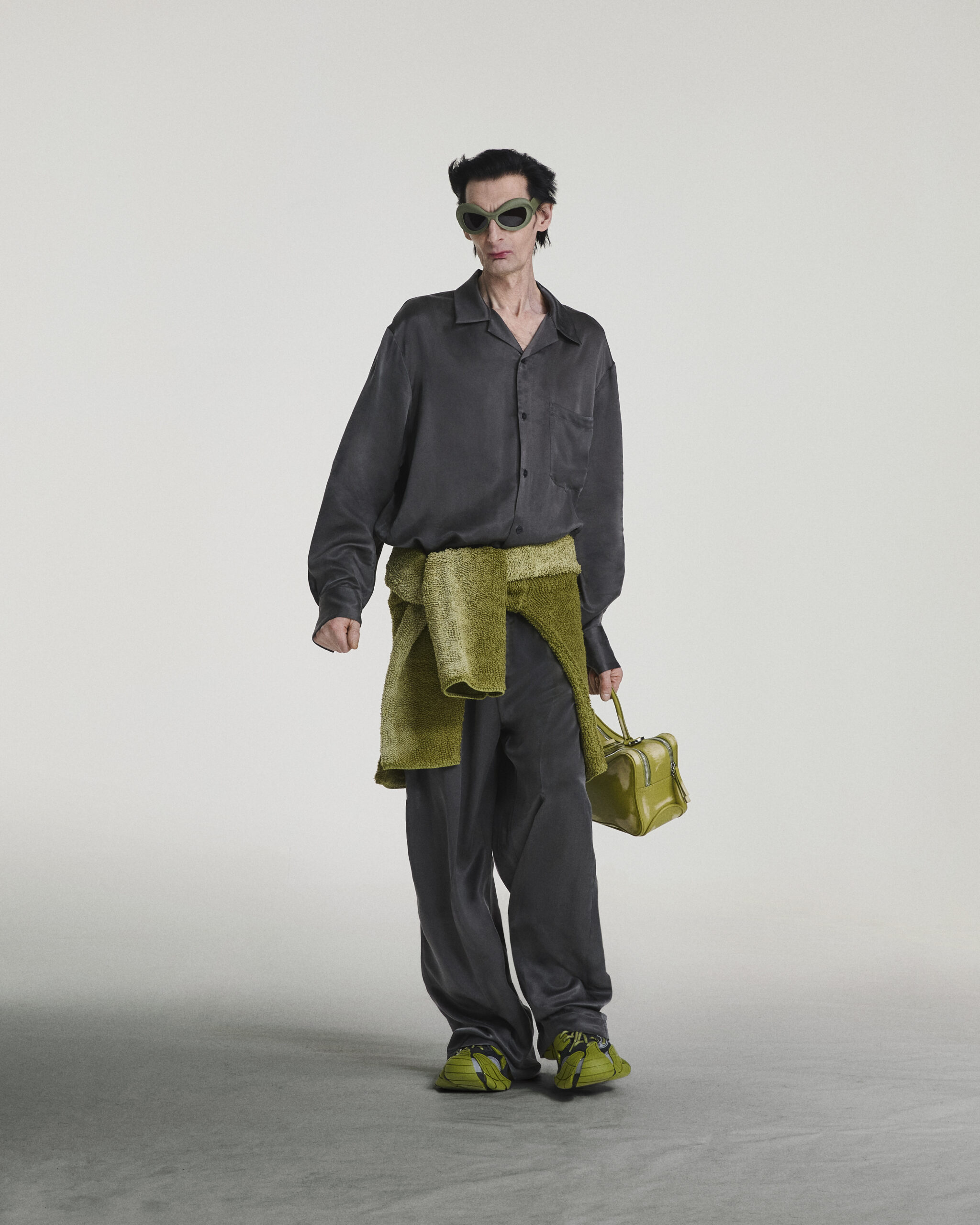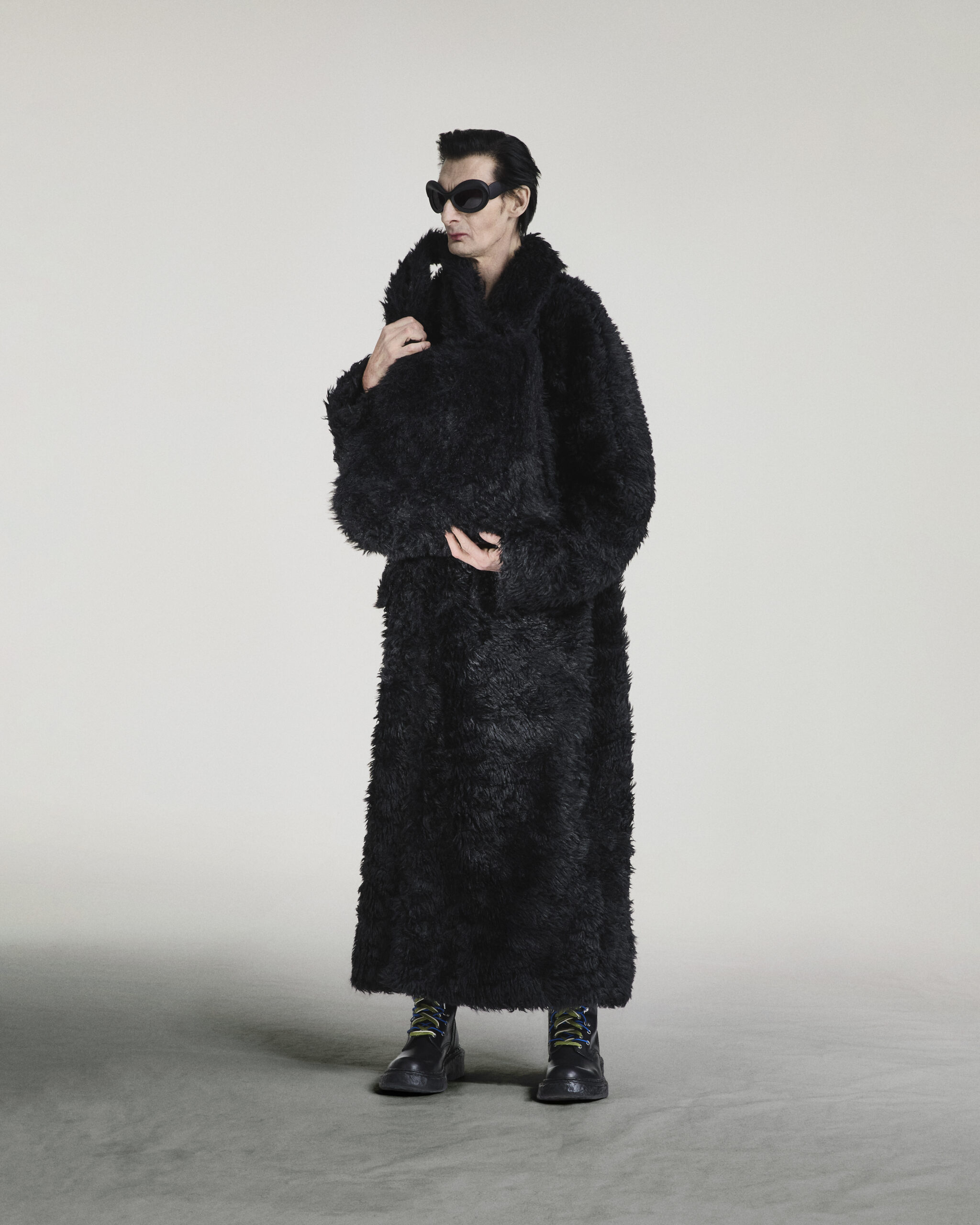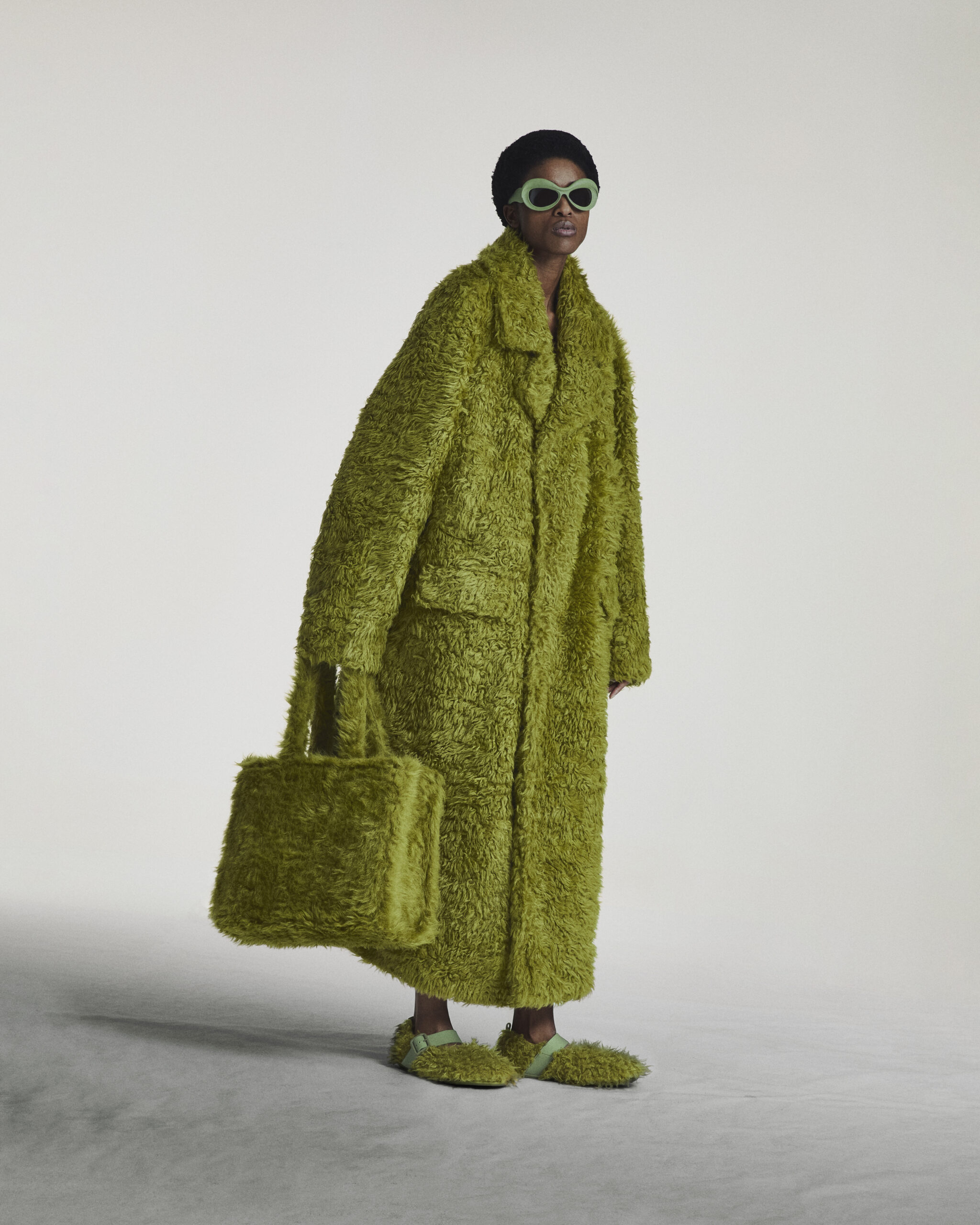 质感作为 CAMPERLAB 本季核心关键词,贯穿于蓬松成衣、配饰与鞋履的设计表达中。一款及地 Oversized 毛绒大衣成为瞩目焦点:哑光柔黑色与开心果绿色的夸张长绒廓形,搭配宽幅翻领与量感插肩袖设计,营造强烈的视觉张力。CAMPERLAB 蓬松 Wabi 鞋履系列提供黑、棕与开心果绿色可选,其鞋面采用再生 PET 材质,搭载 PrimaLoft® 保暖科技,饰以同色系可调节搭扣,兼具舒适性与先锋感。