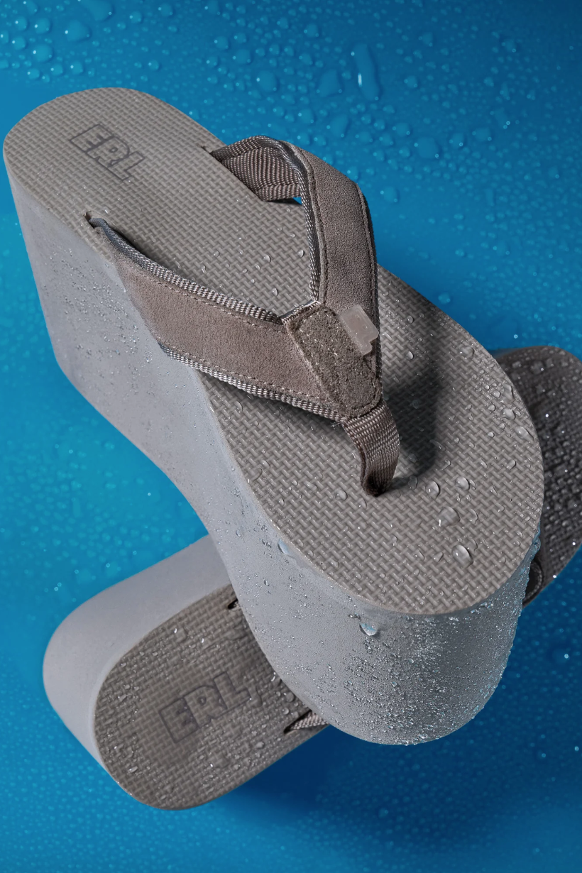 ERL 正在进军凉鞋领域。据称为了此次的新款人字拖及其型录,创始人兼设计师 Eli Russell Linnetz 已准备数年。作为 ERL 持续探索海滩风格的延伸,该系列人字拖由 Eli Russell Linnetz 在加州威尼斯设计,共包括低帮、大帮和超大款三种款型。秉承 ERL 玩味比例的理念,每款都以大胆而富有表现力的方式演绎经典廓形。其中低帮款更偏向传统版型,采用 1 英寸厚的 EVA 泡沫鞋底,紧贴地面;大帮款的鞋底加厚至 5 英寸;超大款则加厚至超现实风格的 8 英寸。Eli Russell Linnetz 表示每种鞋底高度都经过了精心设计,兼顾舒适性、平衡性和时尚表现力。