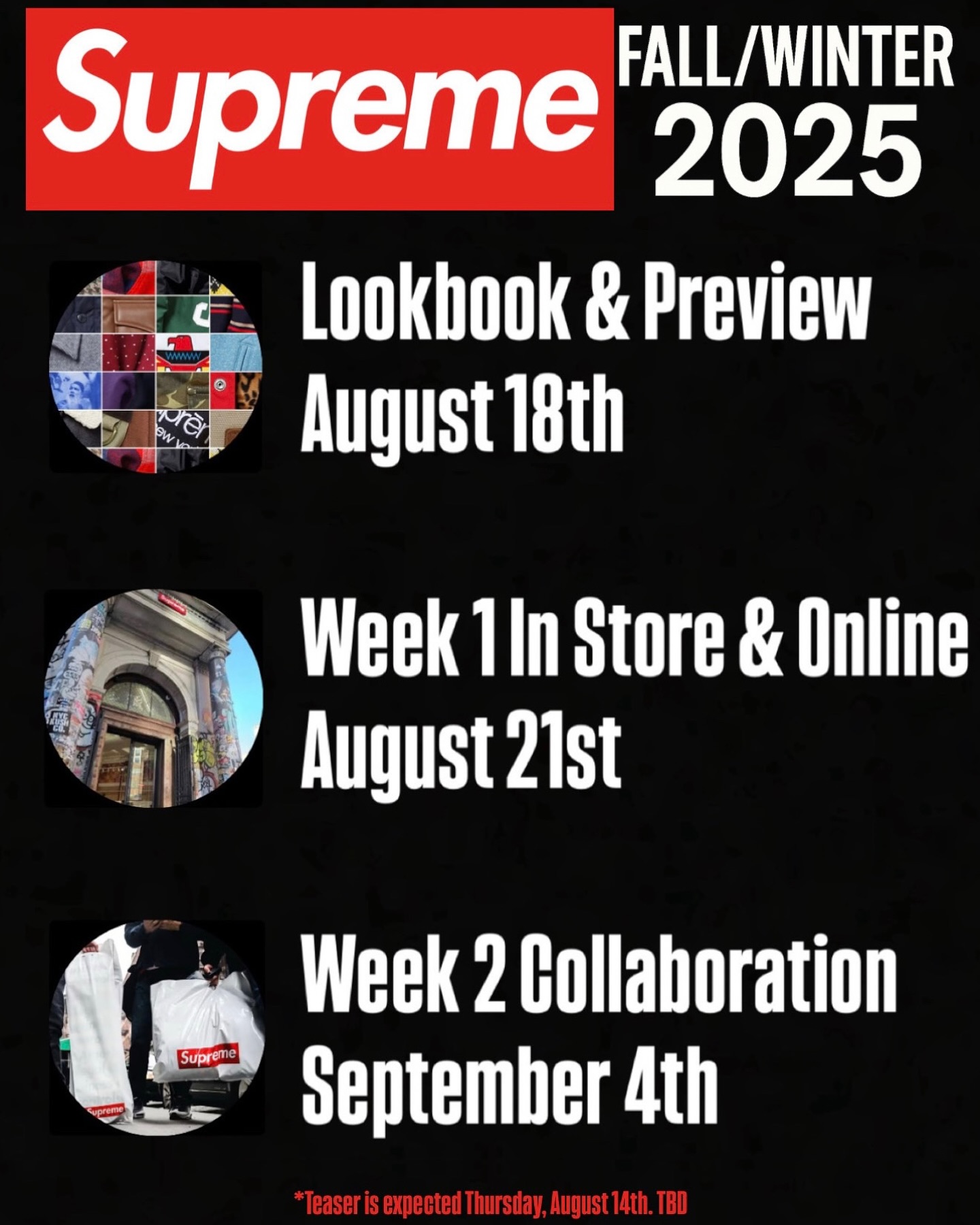 Supreme 2025 秋冬产品发售预告