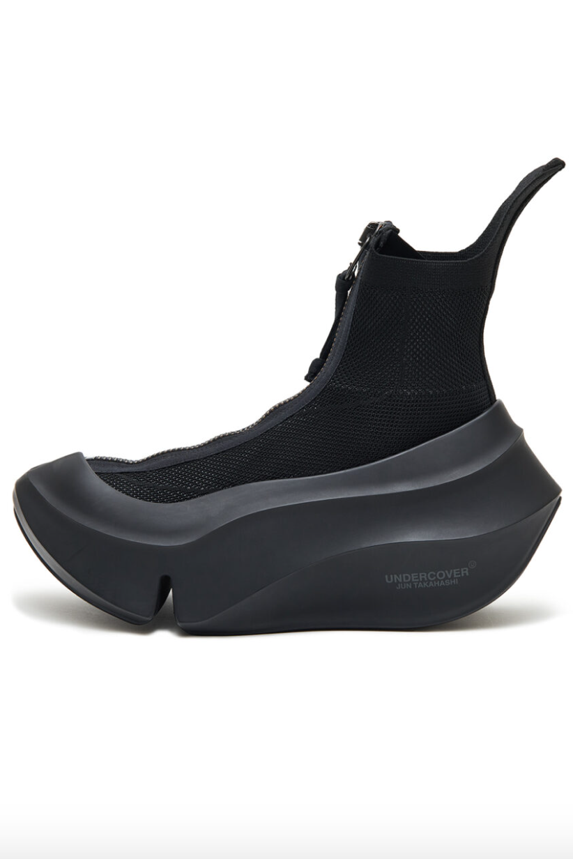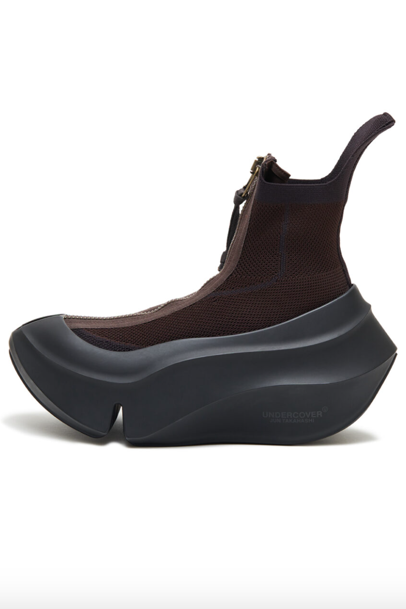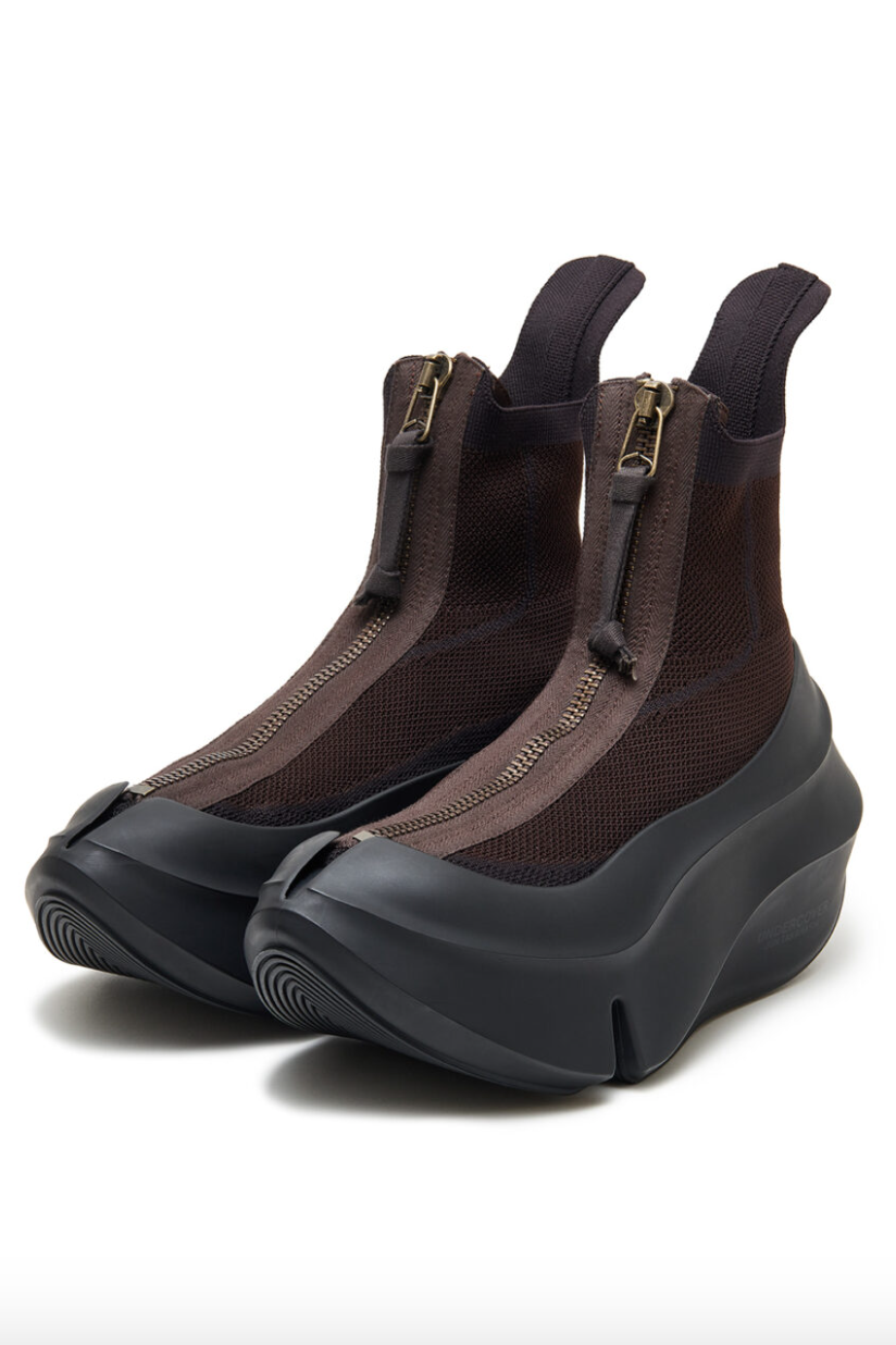 适逢 UNDERCOVER 2025 年秋冬男装系列「Interface」上市,UNDERCOVER 与日本知名鞋履品牌 grounds 合作推出了一款全新鞋履。该鞋以 grounds 广受欢迎的 ORCA 系列为基础,采用了大胆的外底设计。grounds 独特的厚实缓震鞋底保持不变,但鞋面改为了高帮设计。伸缩的针织材料确保鞋面紧绷、舒适贴合在脚部周围,使这款鞋在拥有独特的体积感的同时,又感觉轻盈透气。该鞋包括黑色和深棕色两种颜色可选,将于 7 月 26 日在指定 UNDERCOVER 门店和网上商店发售,感兴趣的朋友不妨留意。