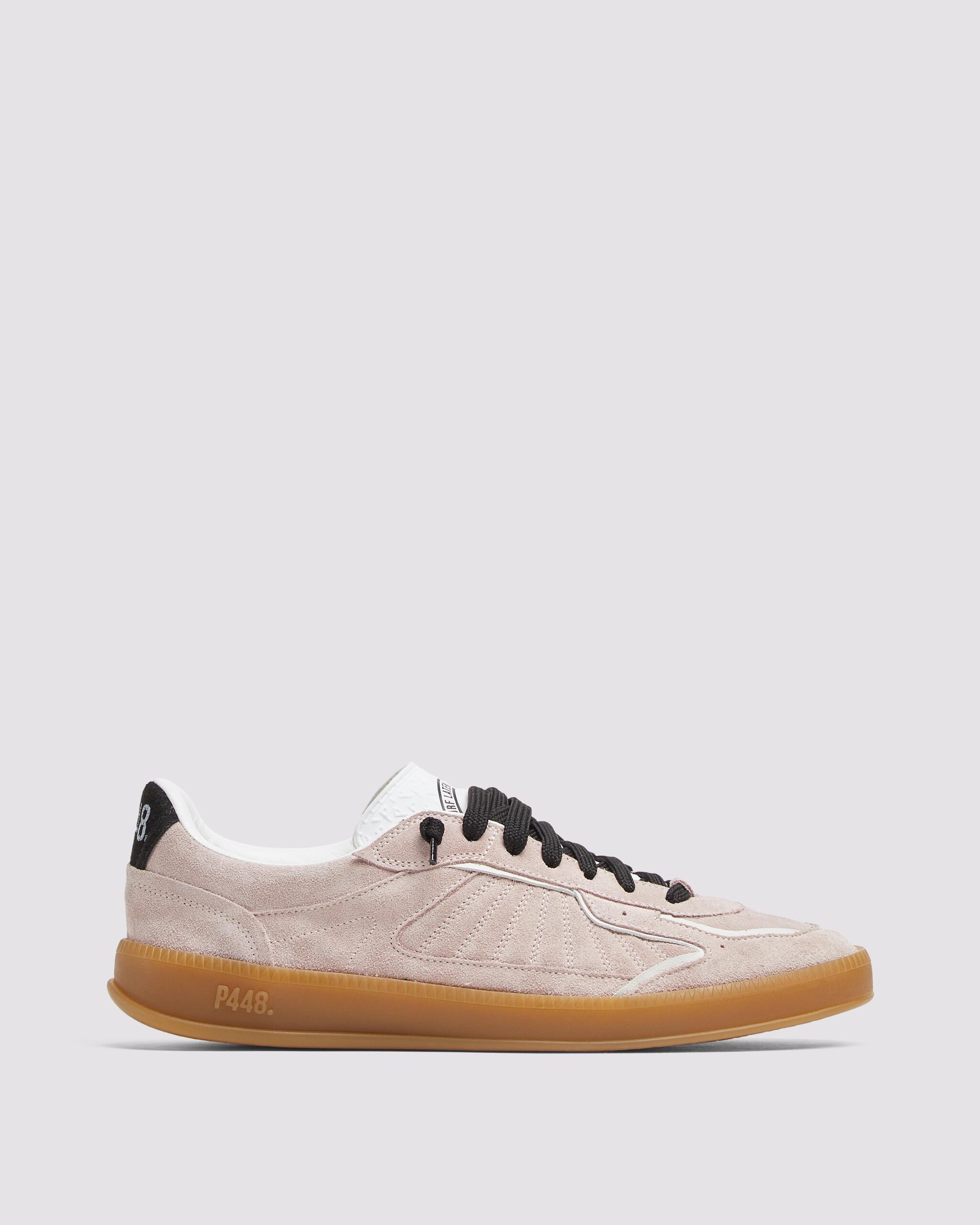 P448 将意大利制造与突破性设计融入鞋履。标志性设计 JACK PUFF 凭借超大鞋舌引人注目。令人惊艳的天鹅绒材质用于 MONZA 与 CREEPER 鞋款(深绿与波尔多红)。对色彩的诠释体现在 VERT 鞋款上,通体纯蓝、军绿与黑色单色调设计迎合极简主义人群。与之对比的是贯穿全系列的炫目霓虹元素:以90年代滑板风格为灵感的 BRIXTON 霓虹粉鞋款堪称大胆之选。若想小面积点缀霓虹,JACK、JOHN 与 BRIXTON 的夸张鞋带设计亦提供吸睛选项。
