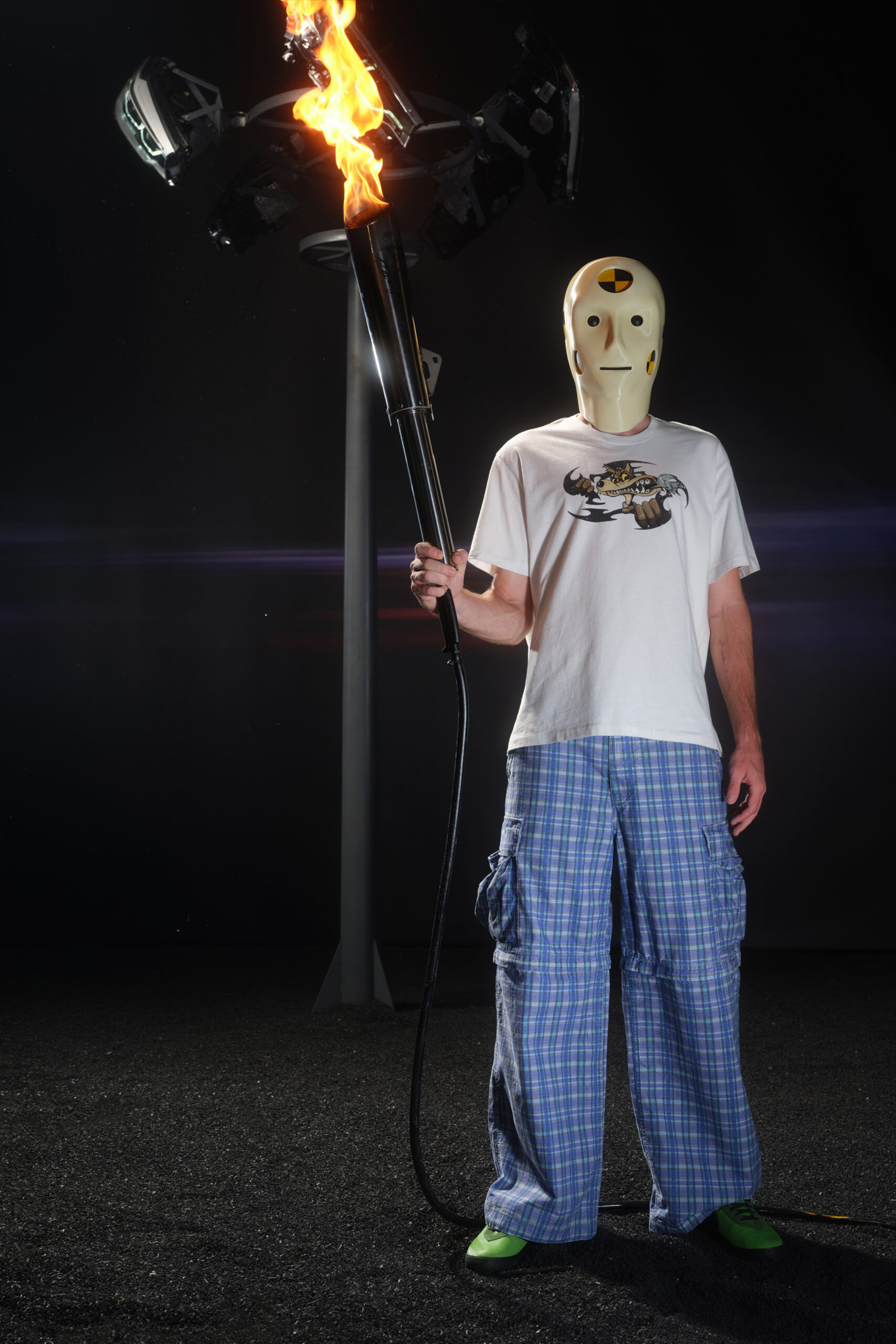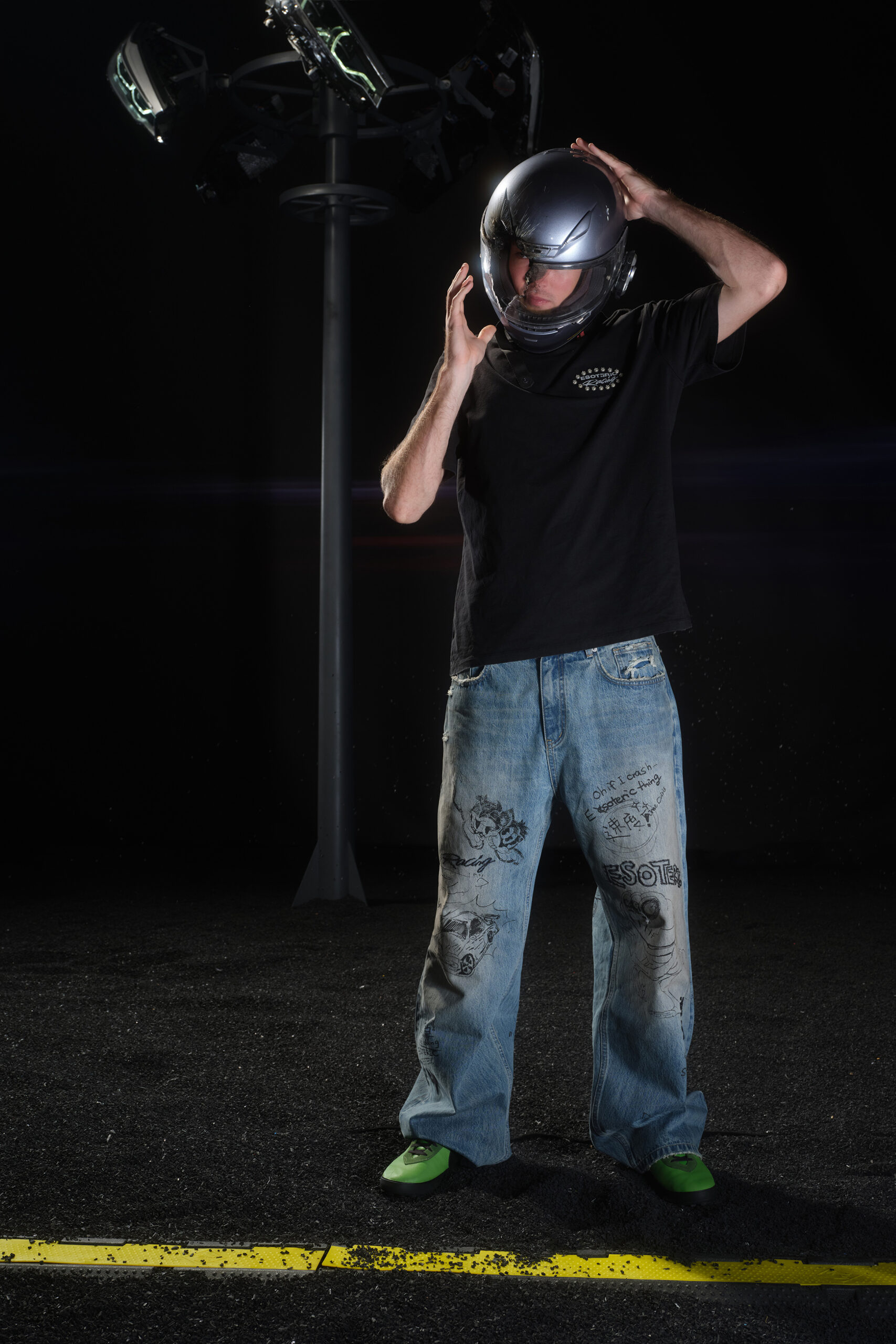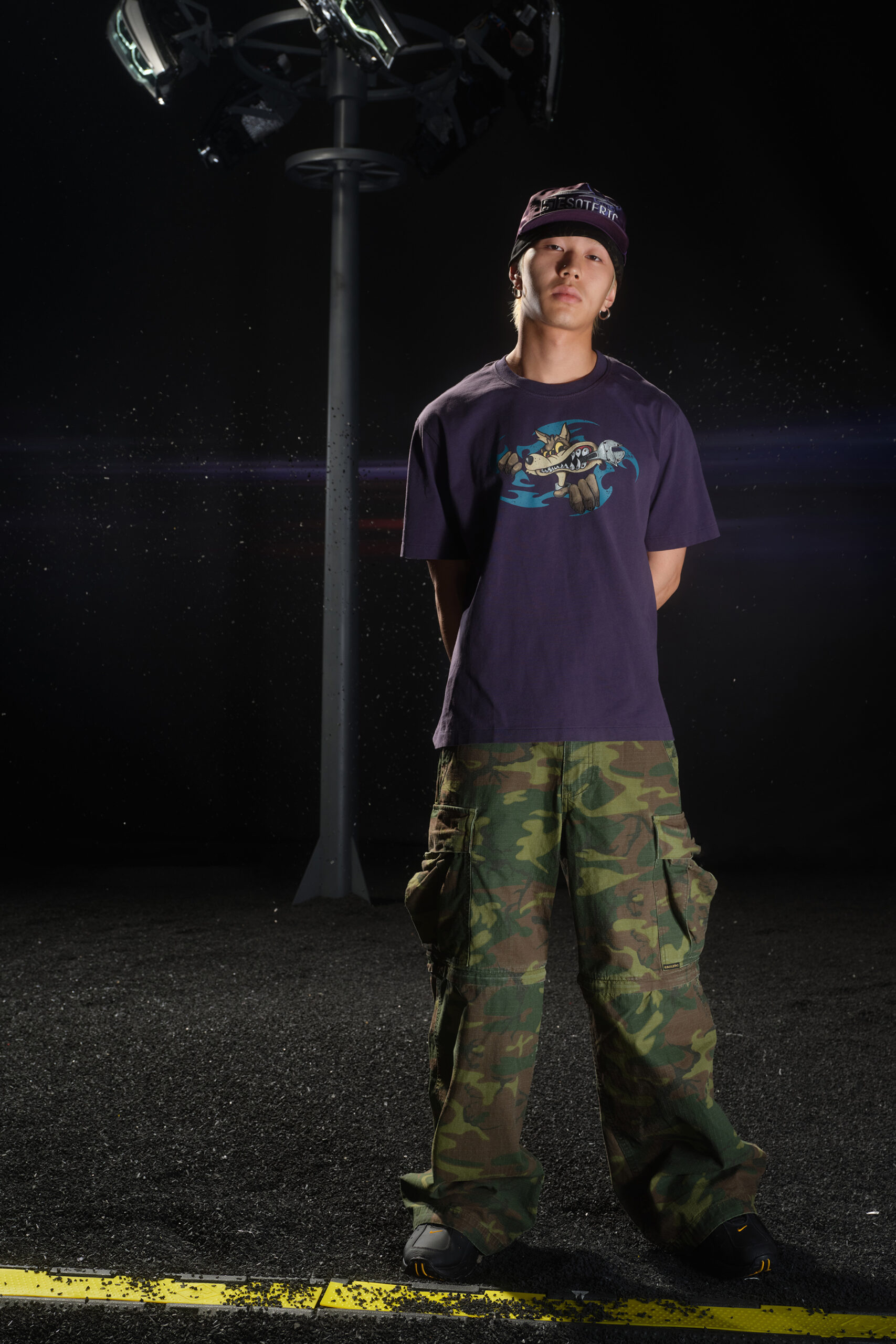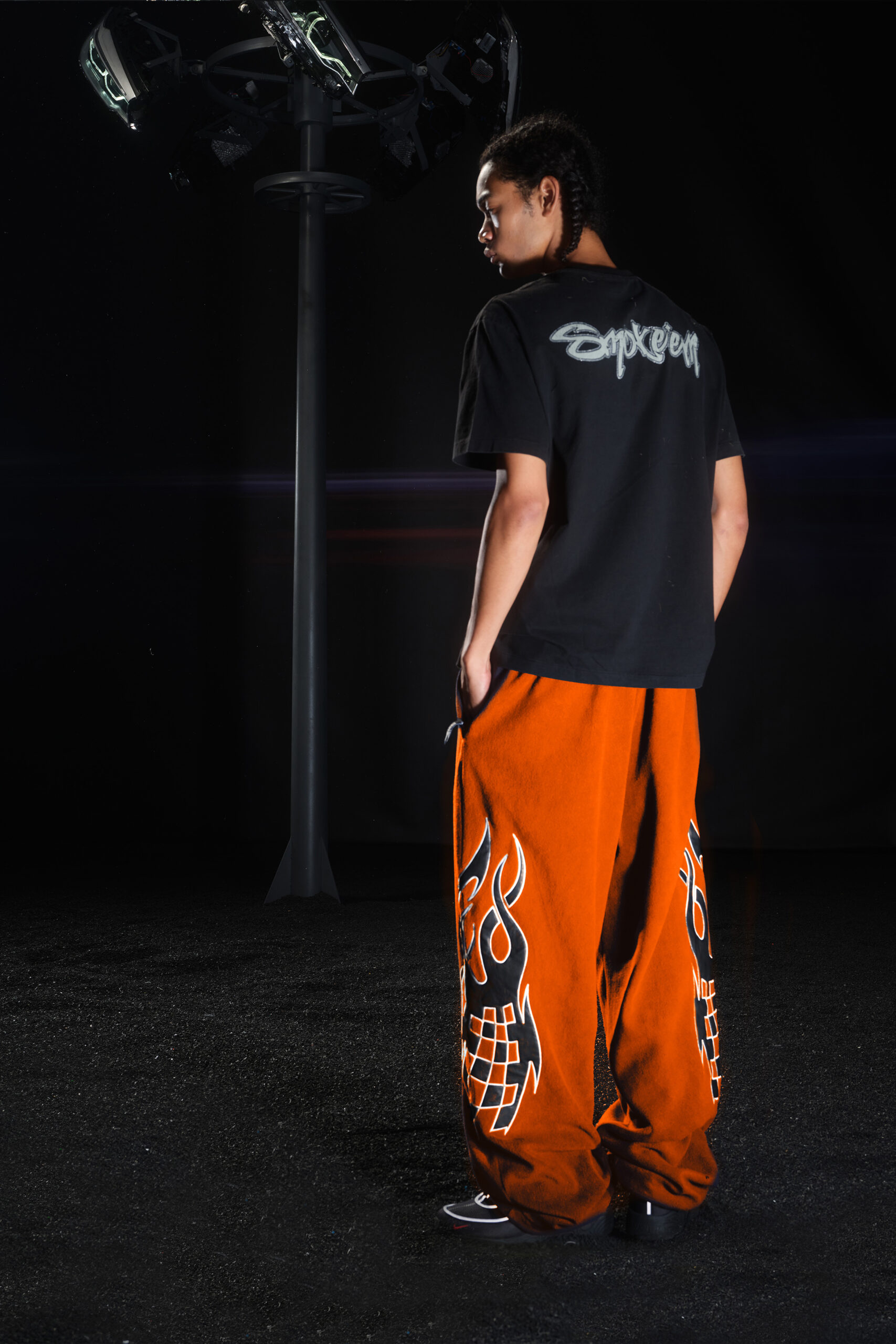 系列裤装依旧围绕街头与竞速展开,竞速刺绣原色牛仔裤采用大幅「Racing」字体设计凸显主题,辅以撞钉与后腰五金丰富细节,相同面料的牛仔七分裤更改了字体设计,在后方新增刺绣图案,更适合夏日穿着;火焰钉金属尼龙短裤将铆钉印花图案与经典拳击短裤设计结合,在复古感受中传递新颖体验;两段式拆卸裤采用宽松军裤版型,通过迷彩与格纹两款配色设计达到不同上身内容;最重磅的反光结构机车卫裤将经典赛车裤结构融入宽松廓形,并通过反光线条强化竞速风格;机车牛仔裤采用相同思路,在赛车结构上配合破坏、水洗工艺,实现了速度感与街头风格的碰撞融合。