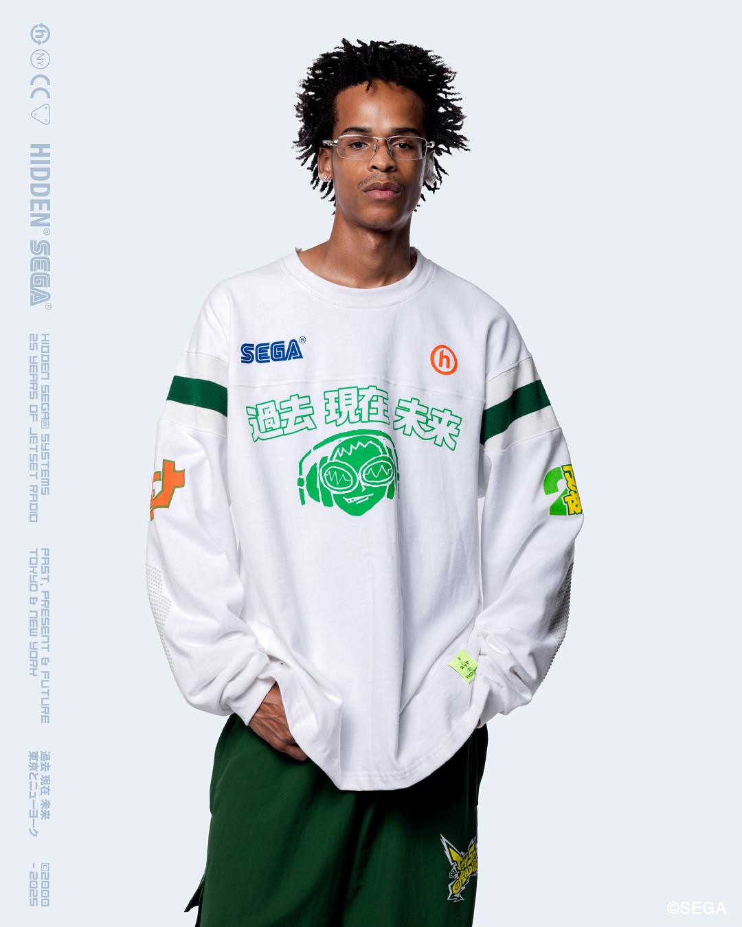 HIDDEN.NY 一直帮助我们挖掘尘封的数字档案,这次则是一款开创性的文化游戏——《Jet Set Radio》。这款游戏于 2000 年由 SEGA 发售,在当时追求先进玩法于拟真视觉的背景下,突破性结合街头涂鸦,时尚,轮滑等嘻哈元素,成为 Y2K 风格爱好者的心水之作。为了庆祝这款这款充满了「挑衅」与个性的亚文化游戏「圣经」诞生 25 周年。HIDDEN.NY 与 SEGA 合作,推出合作系列。整体服饰既有鲜明的游戏风格,并且融入当下街头服饰特色,以及 HIDDEN.NY 标志性视觉元素,可谓相当用心。美东时间 8 月 1 日,该系列产品在 hiddenppf.com 限量发行,数量有限。