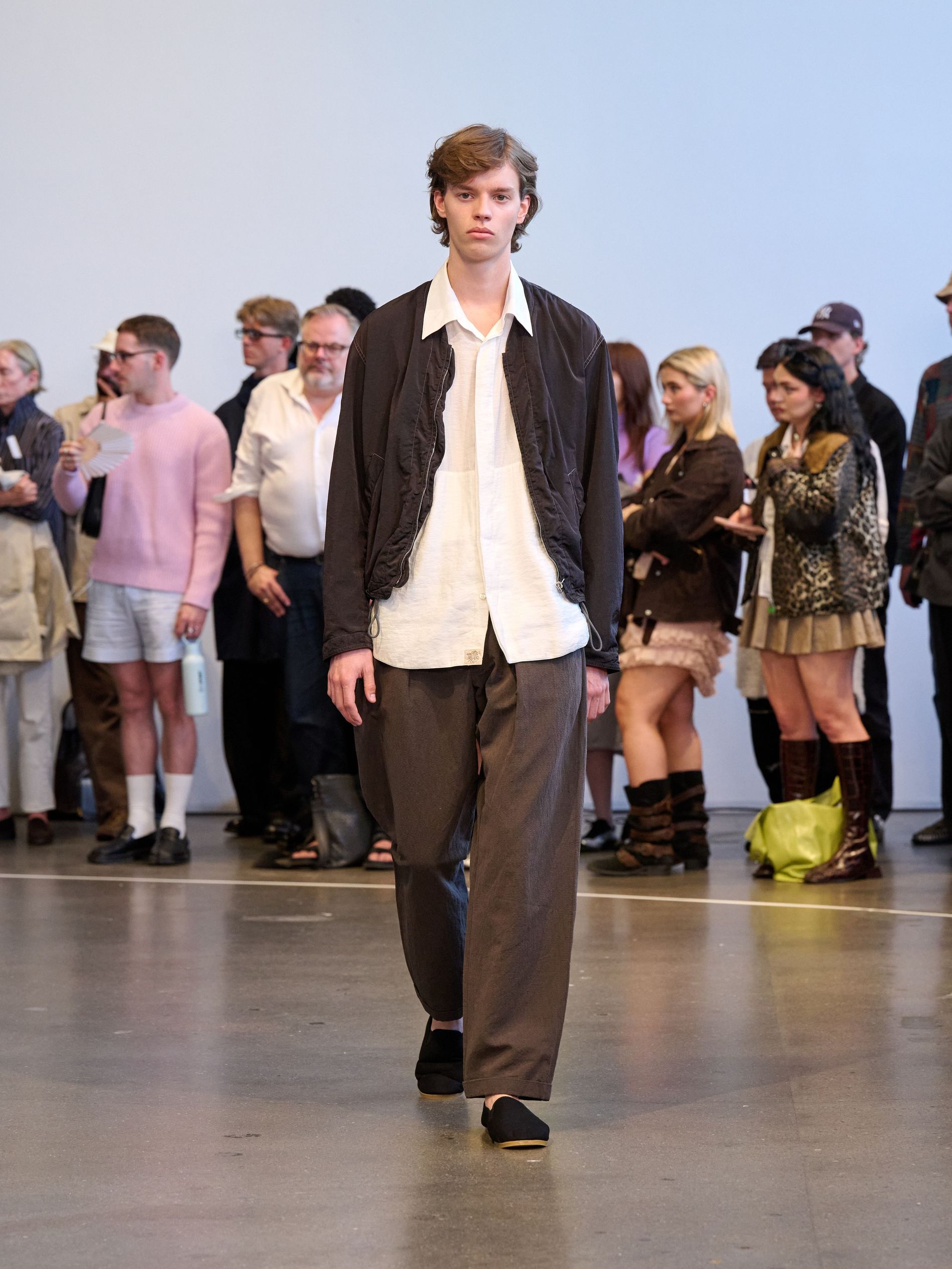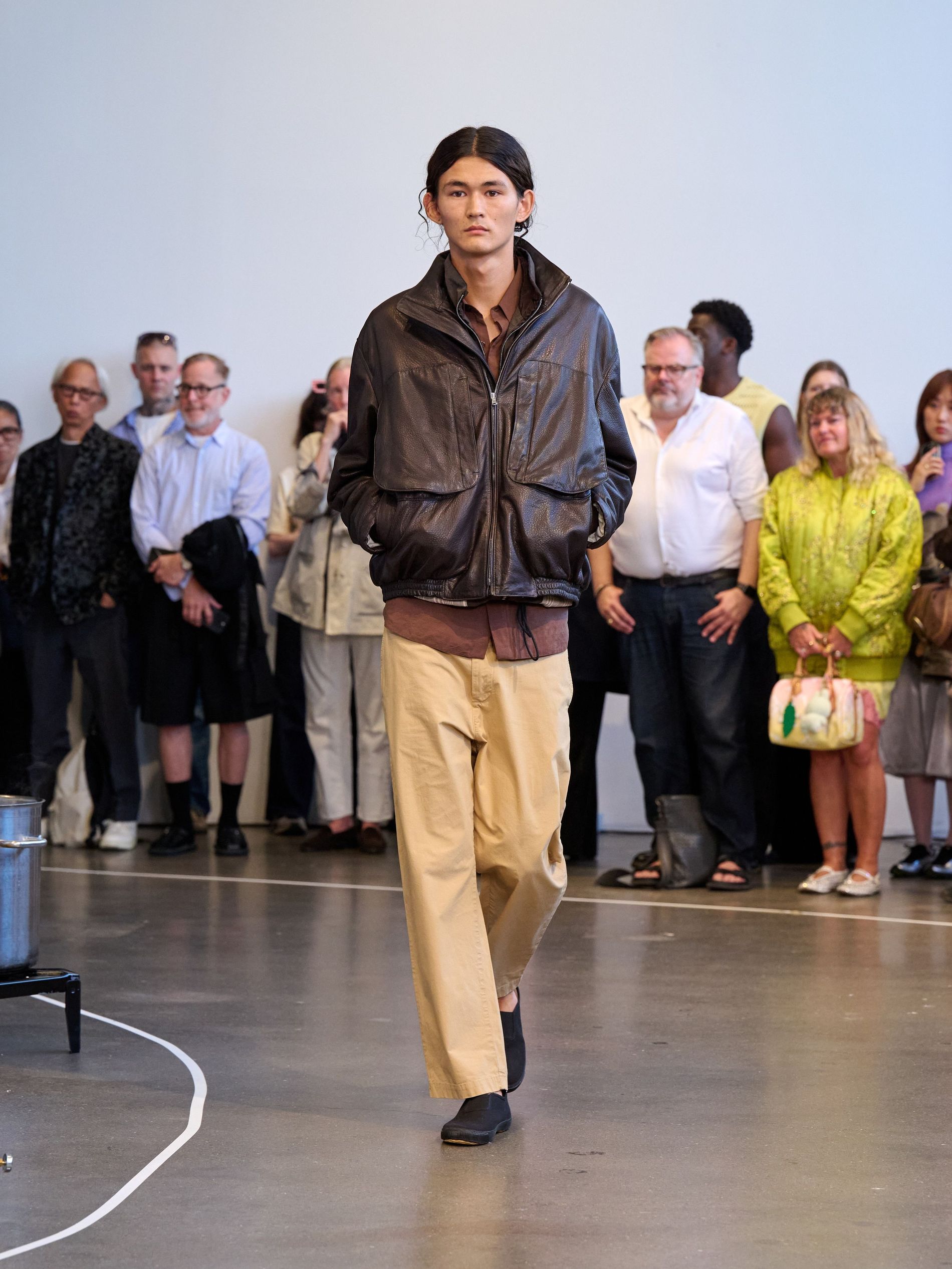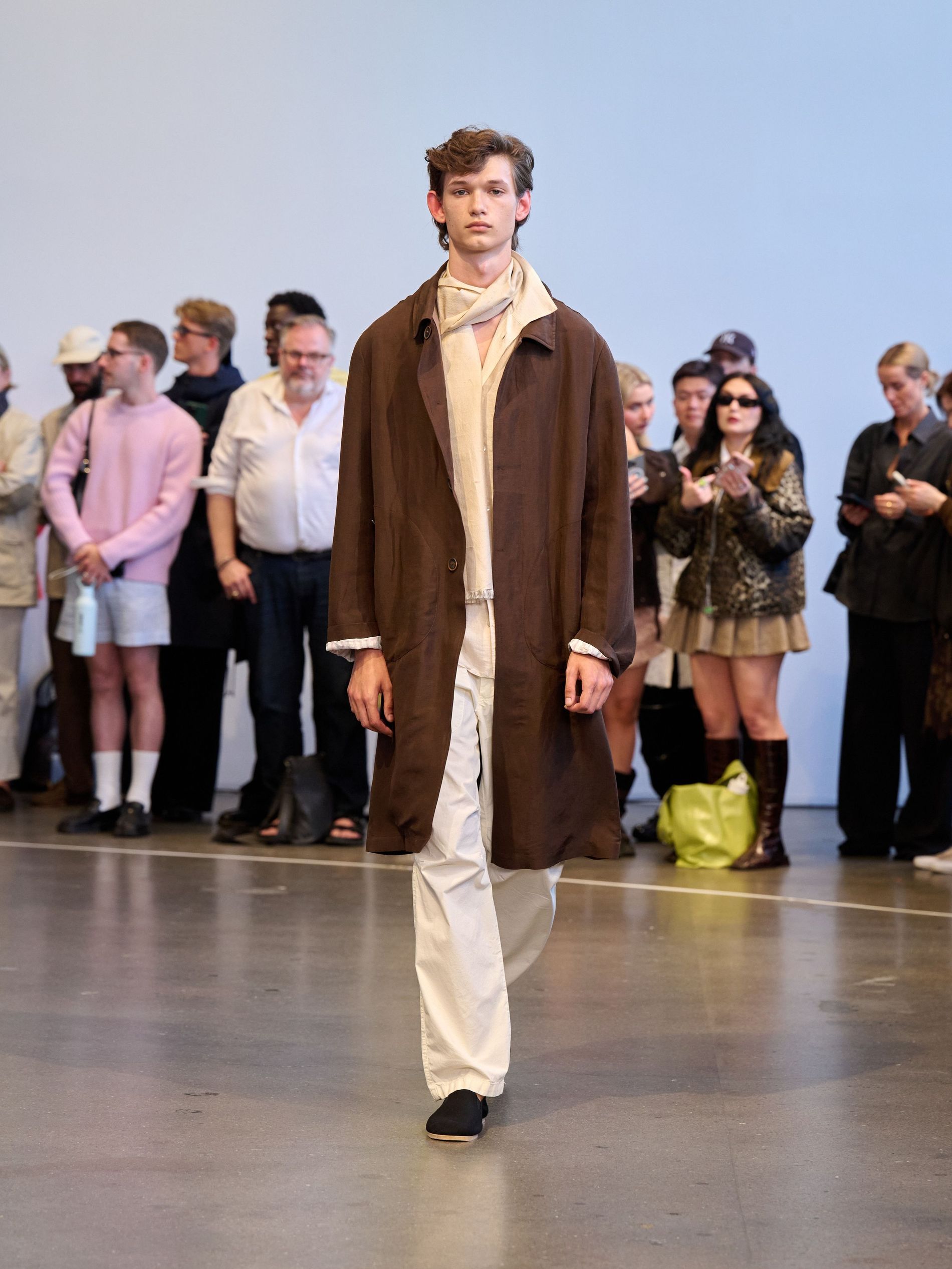 本系列通过对季节性、原始和真实元素的关注,力求捕捉一种自然、慢节奏且富有潜力的氛围。服装方面,深沉的土壤色调和皮革外套象征着大地的力量,而轻盈的棉麻和丝绸面料则呈现了云朵和风的轻盈感。这种质感的对比强调了品牌在传统裁剪与天然面料之间的独特平衡。丝麻混纺和未处理的粗布料为服装增添了细腻的光泽感和自然的触感,展现了品牌对环境的深度敬意与联系。
