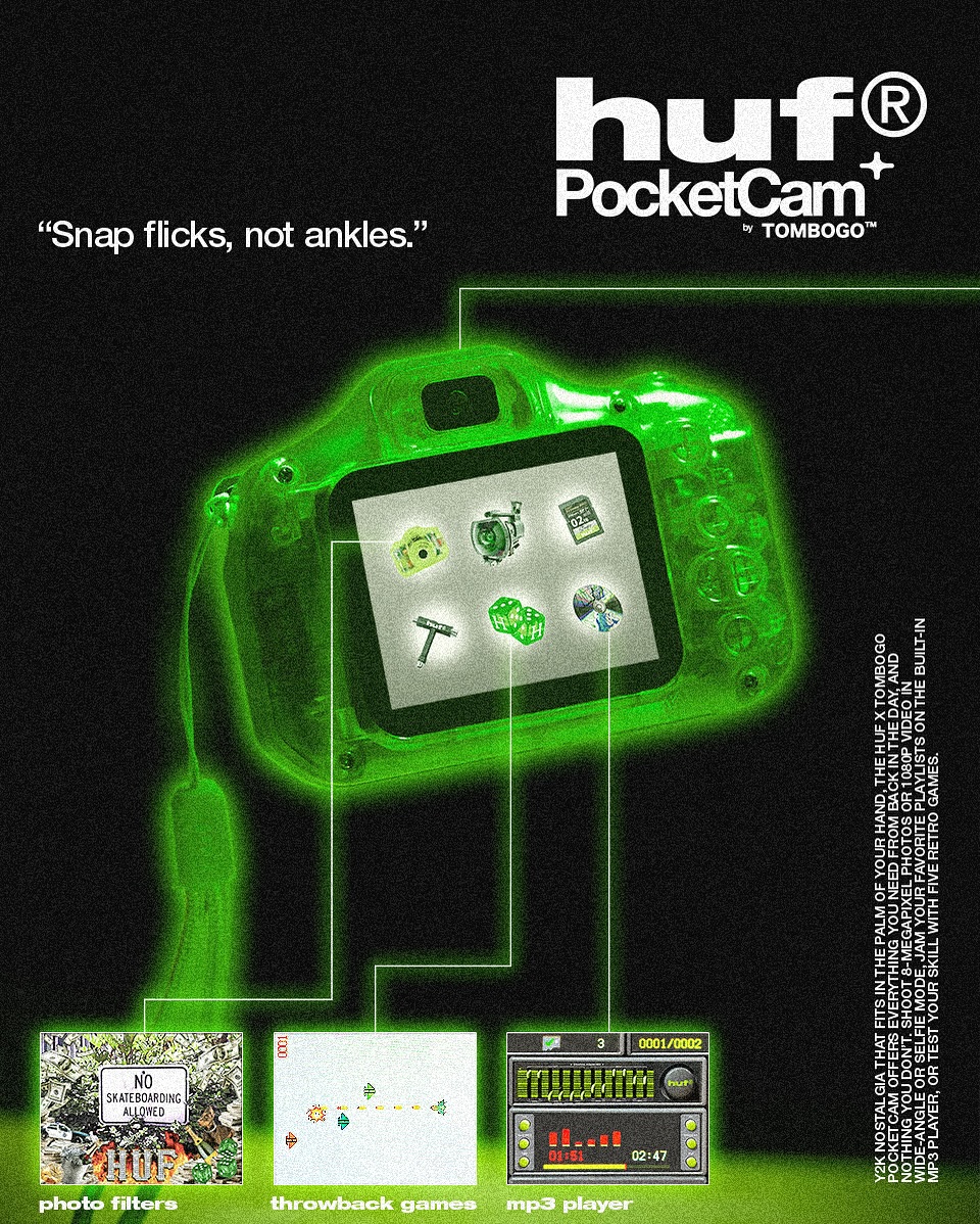 设计品牌 TOMBOGO 宣布与 HUF 展开合作,正式发布升级版 PocketCam。去年秋季,TOMBOGO 推出首款 PocketCam,凭借其极简体积与内建 25 款滤镜的影像功能,迅速引发关注。此次与 HUF 合作,双方在延续 PocketCam 原有造型的基础上,带来更具视觉辨识度的「半透明绿色」版本。除了配色更新,全新 HUF x TOMBOGO PocketCam 还新增 15 款定制滤镜,同时内建小游戏与 MP3 播放功能,进一步拓展这款迷你手持相机的可玩性。据悉,TOMBOGO x HUF PocketCam 将于当地时间 8 月 7 日正式上架发售,有兴趣的朋友不妨多加留意。