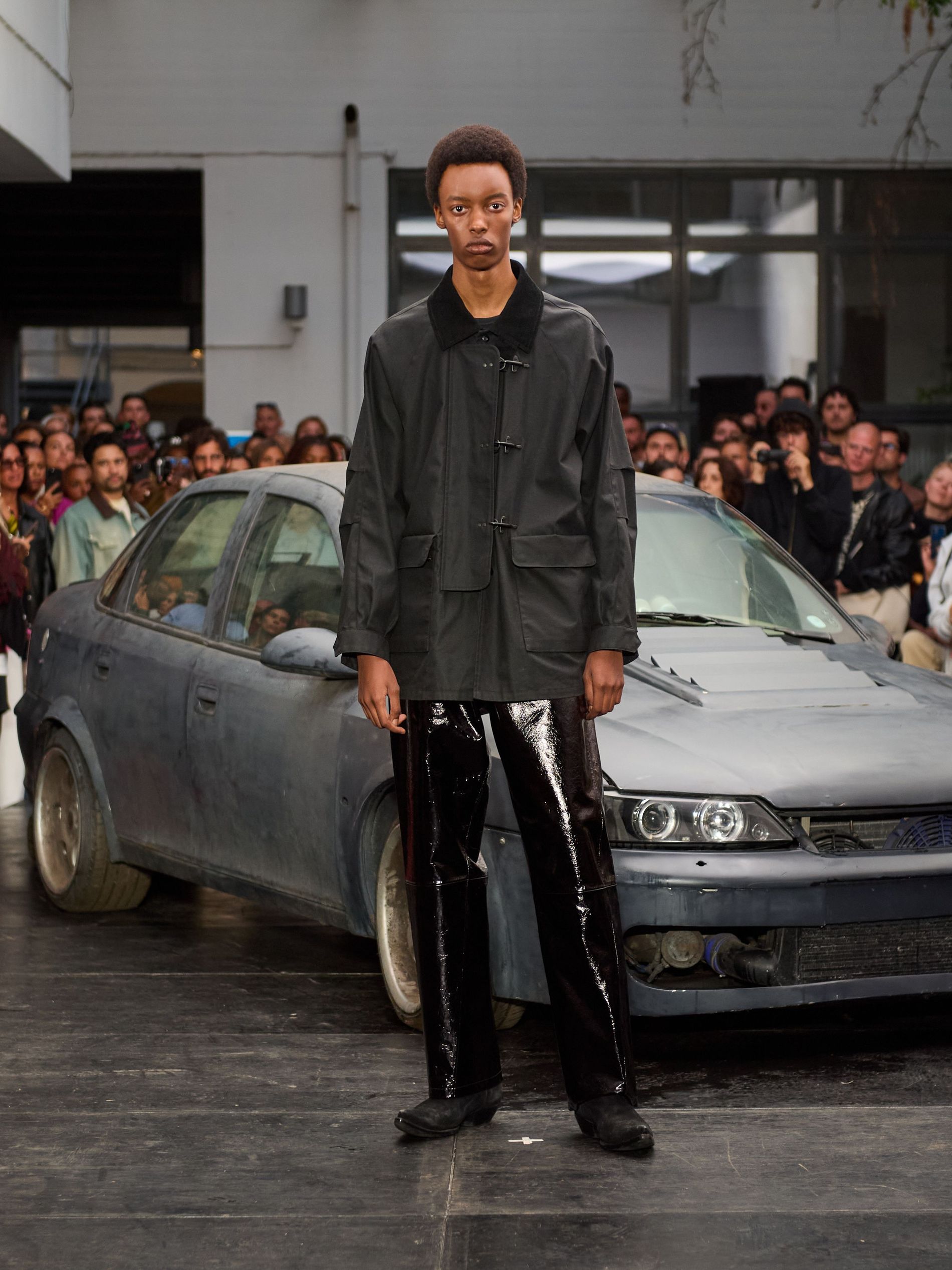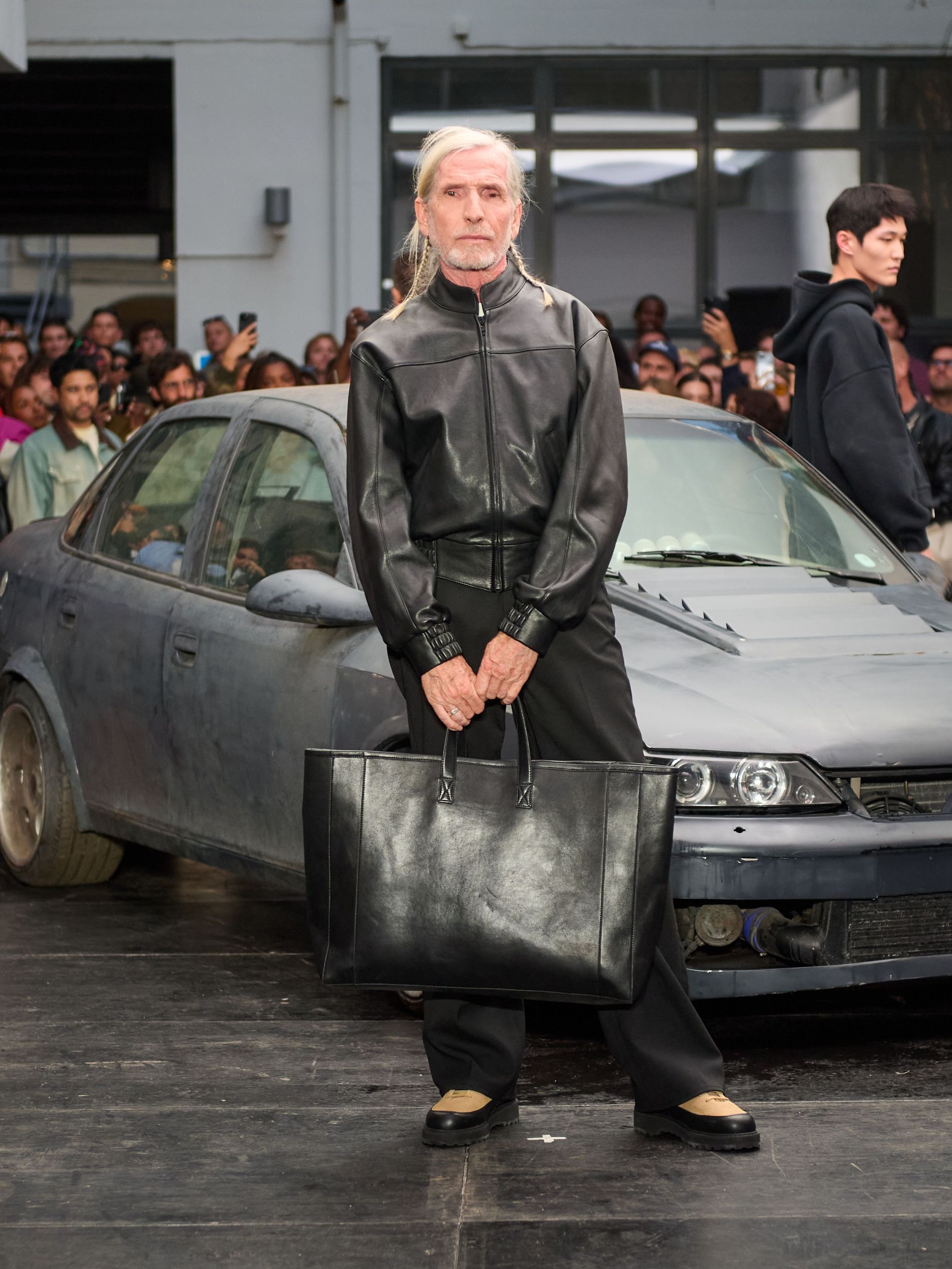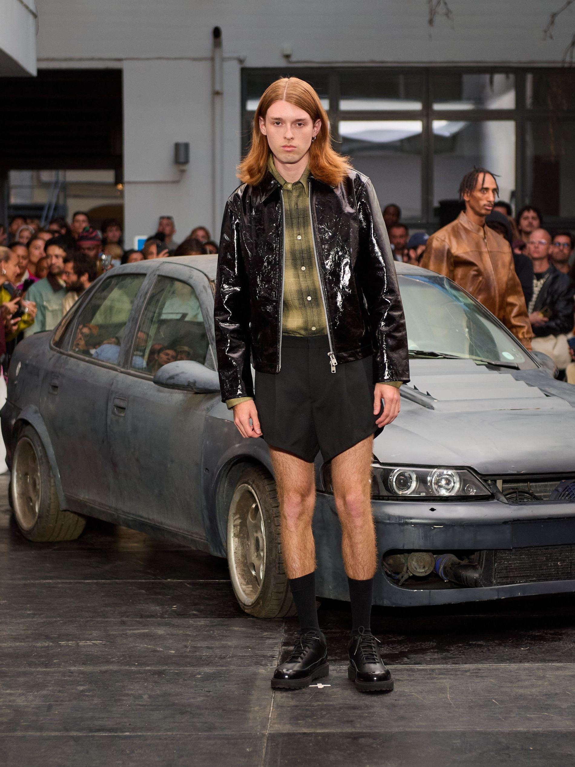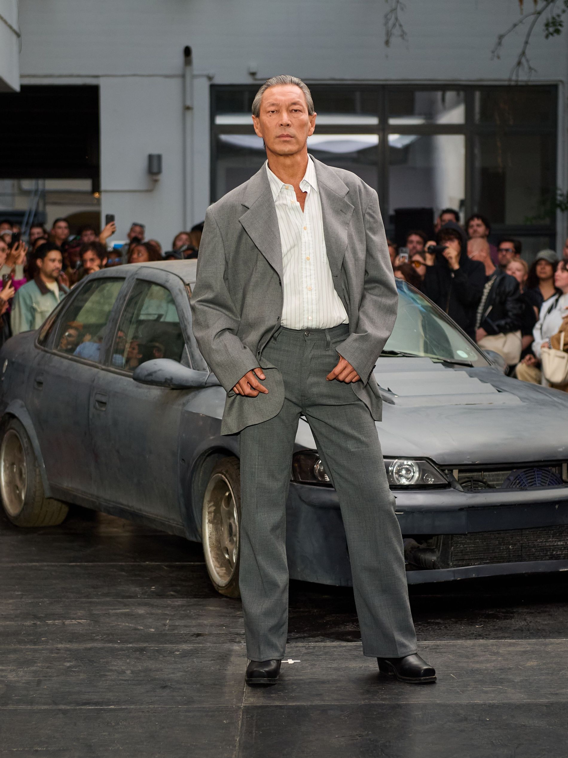 在 Sunflower 的 2026 春夏秀场上,创始人兼设计师 Ulrik Pedersen 展现了如何完美捕捉哥本哈根的悠闲氛围。与以往一样,秀场设在品牌的院子里,现场充满了当地的酷孩子和时尚绅士们,2026 春夏系列也延续了 Sunflower 特有的冷酷风格。模特们穿着街头风十足的服饰,随意地走在 T 台上,偶尔停下倚靠在一辆旧车或平台上。