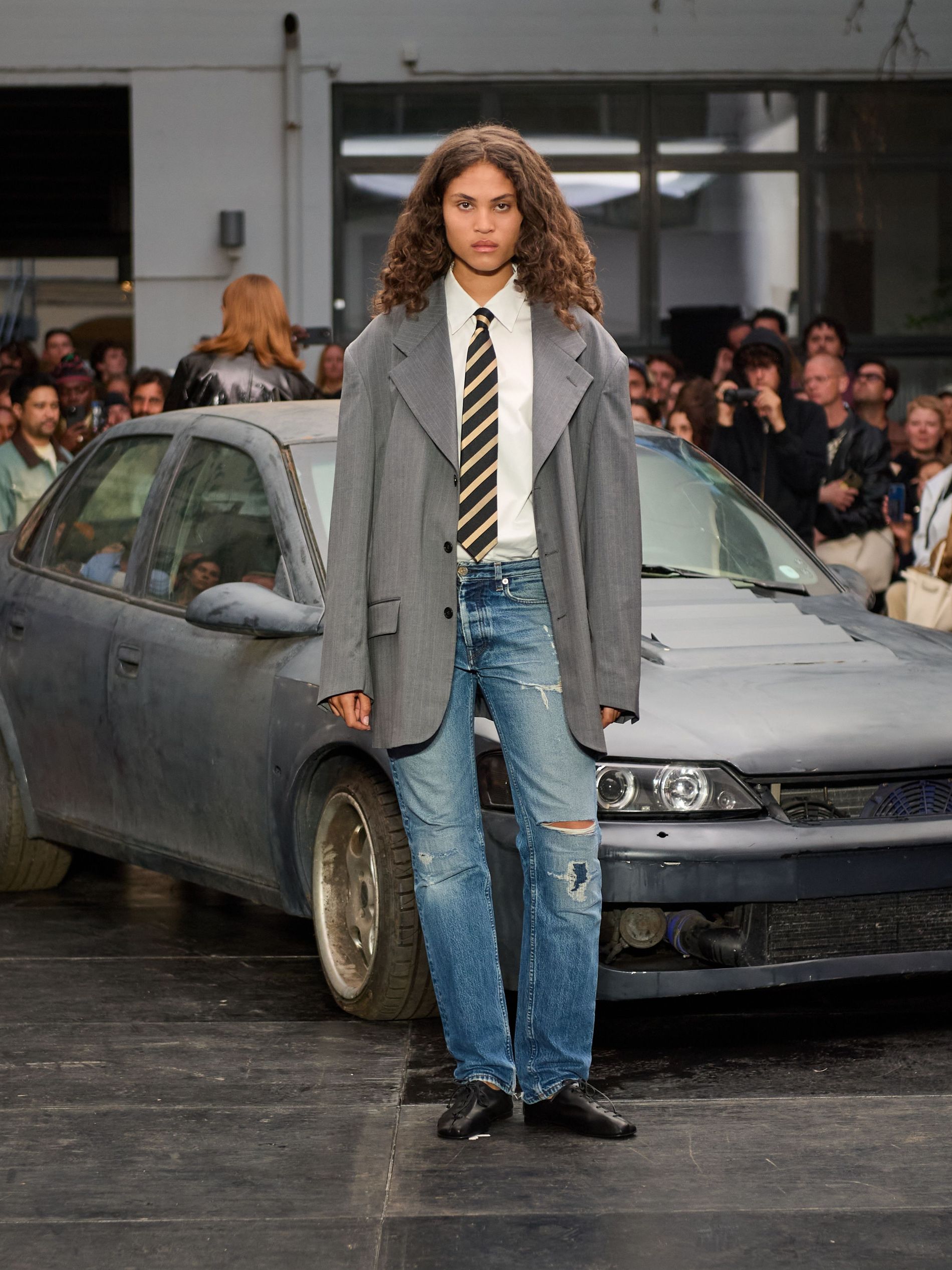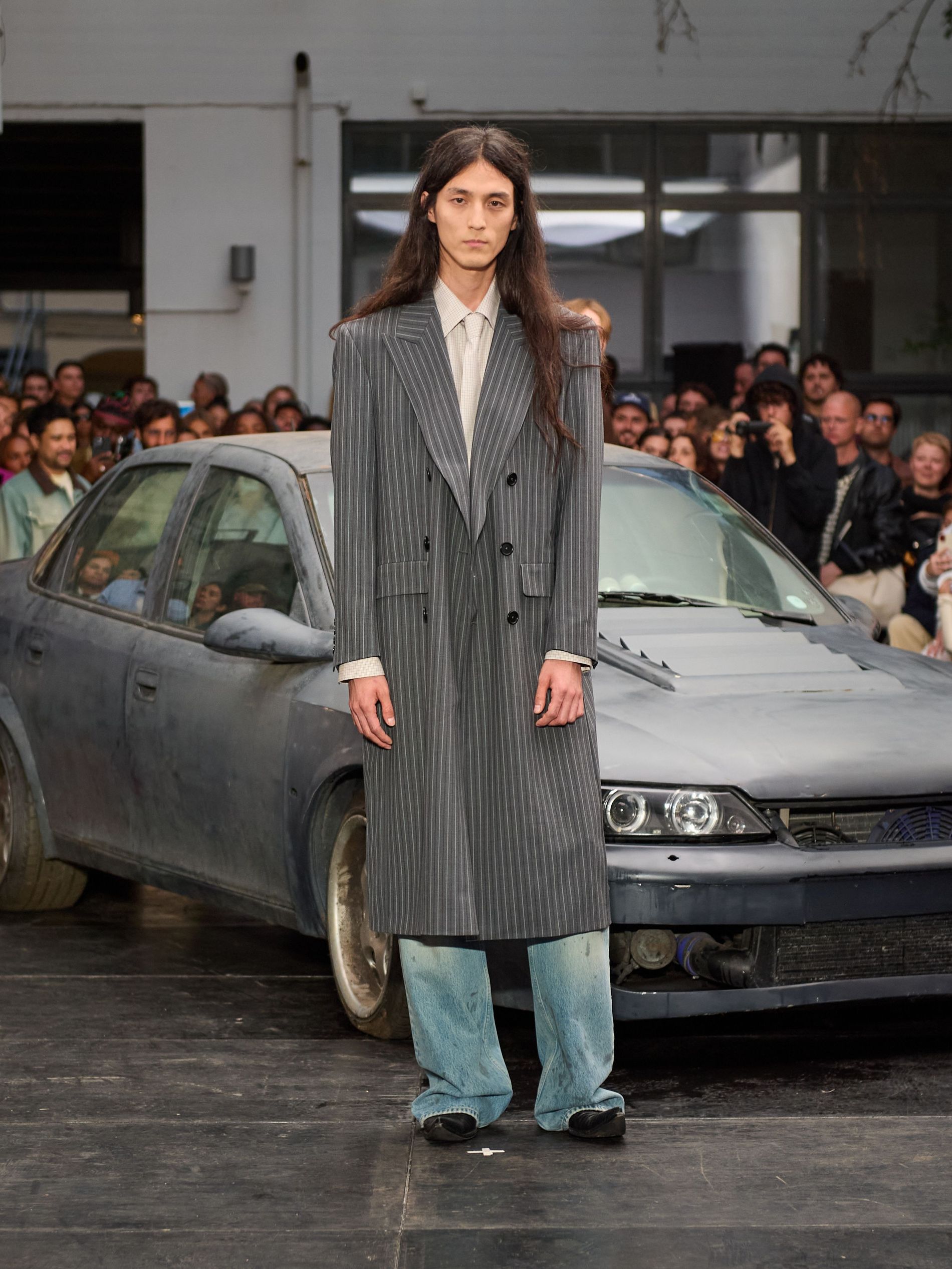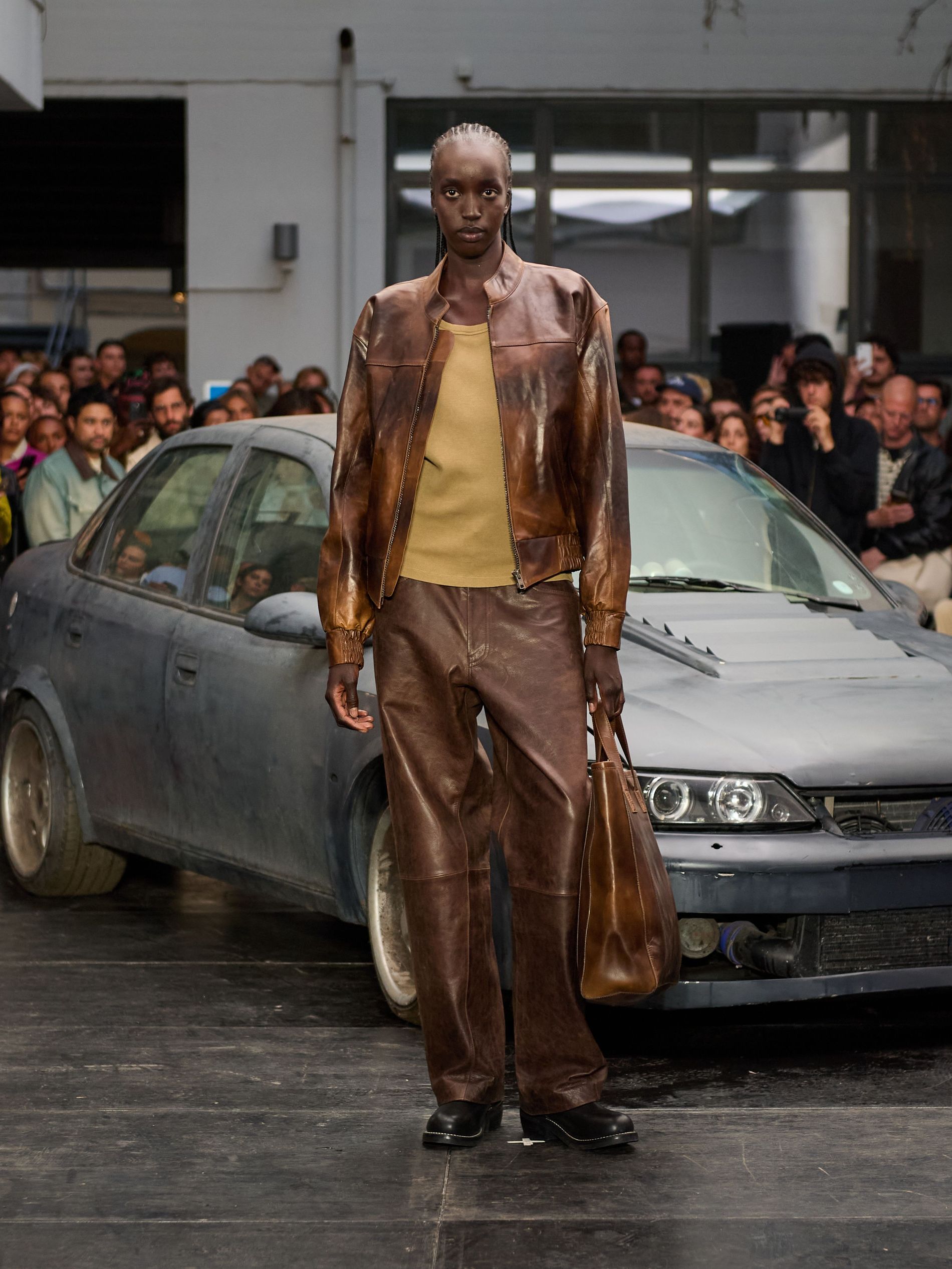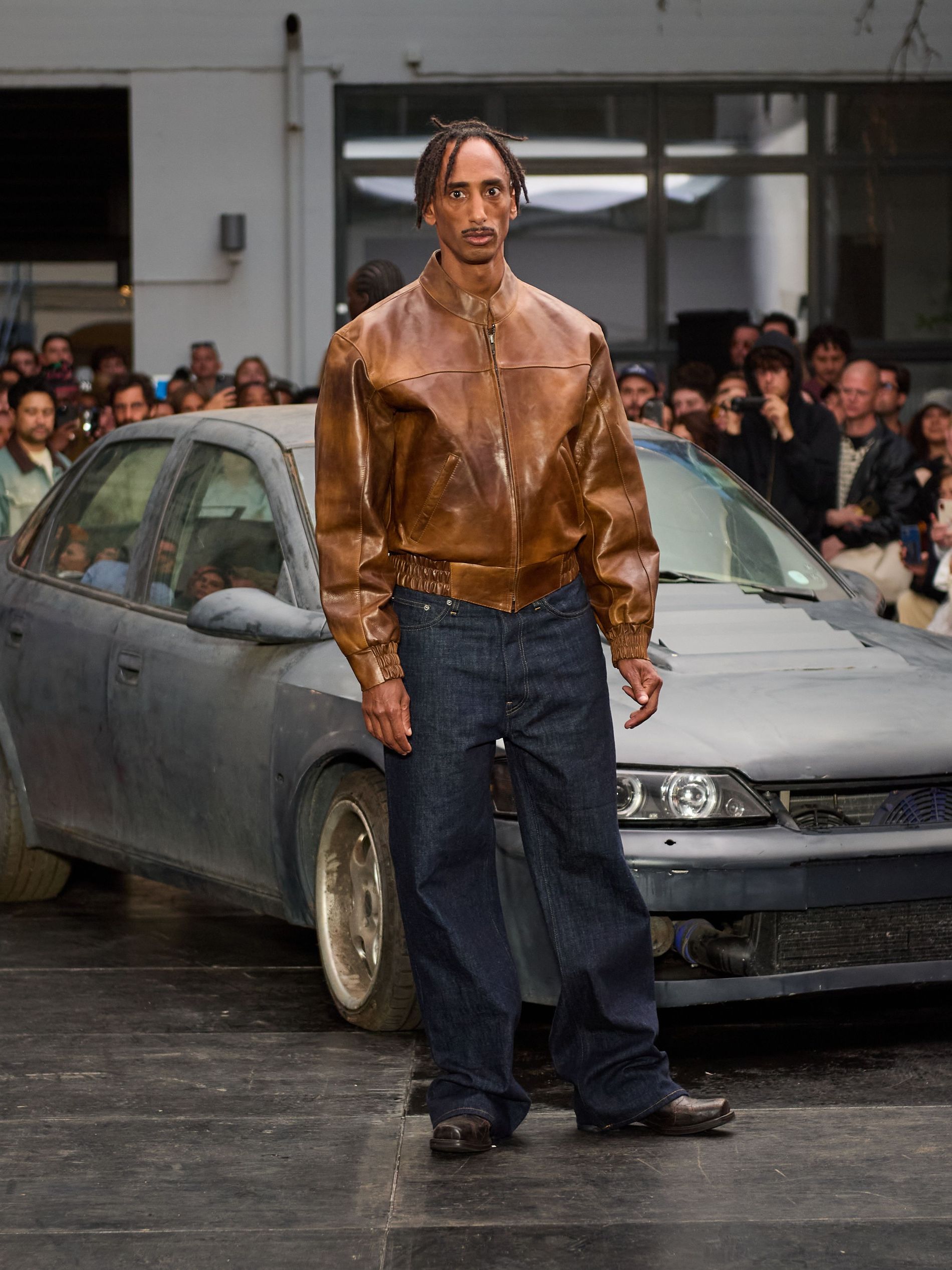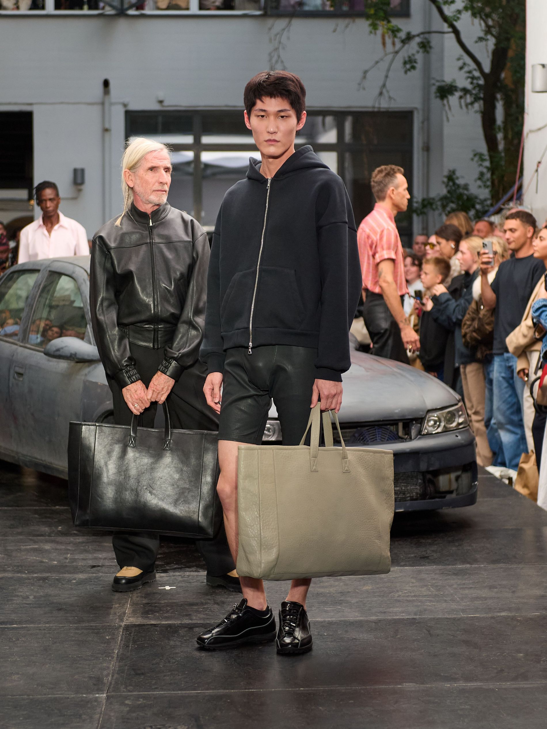 在 Sunflower 的 2026 春夏秀场上,创始人兼设计师 Ulrik Pedersen 展现了如何完美捕捉哥本哈根的悠闲氛围。与以往一样,秀场设在品牌的院子里,现场充满了当地的酷孩子和时尚绅士们,2026 春夏系列也延续了 Sunflower 特有的冷酷风格。模特们穿着街头风十足的服饰,随意地走在 T 台上,偶尔停下倚靠在一辆旧车或平台上。