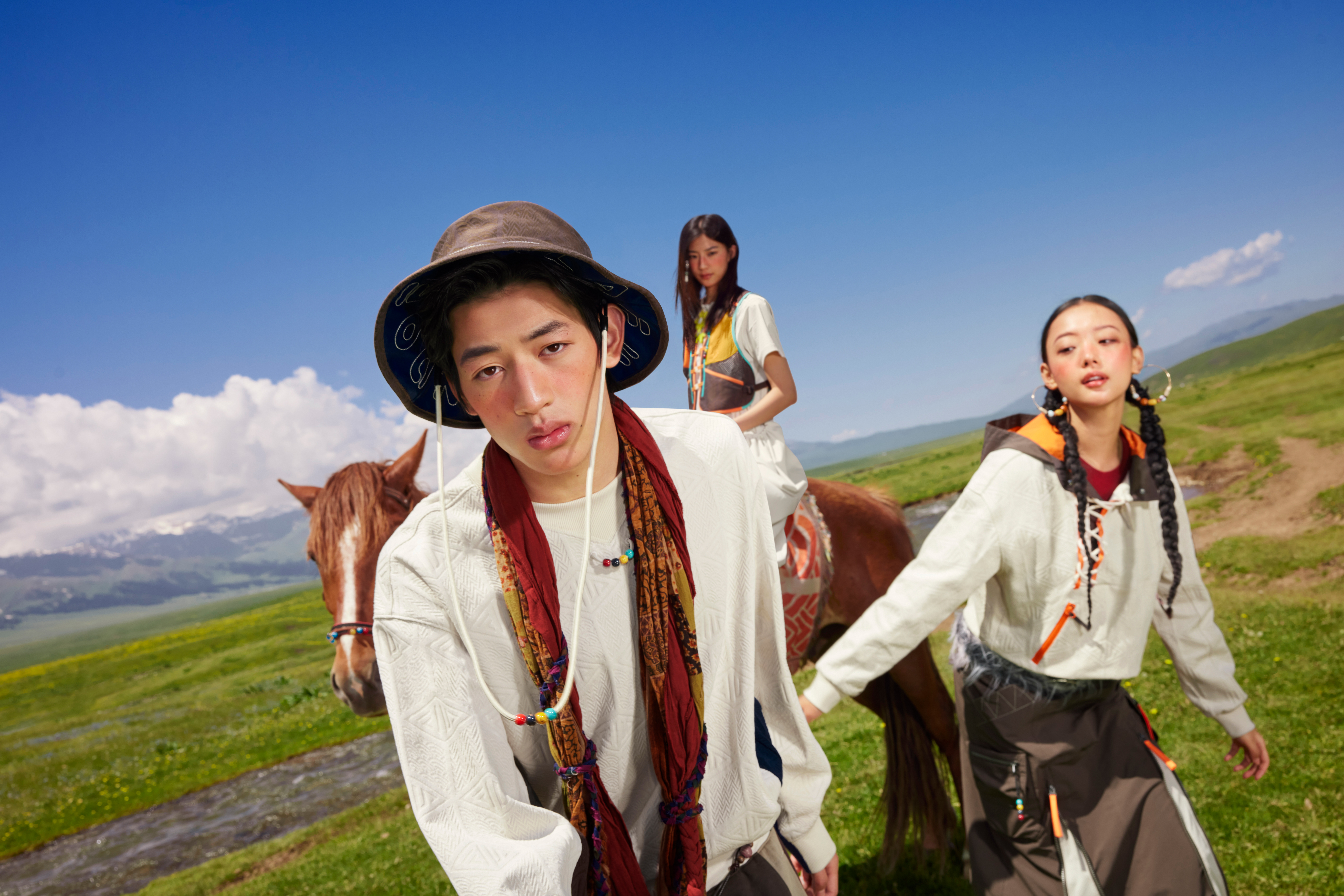 当游牧文明的古老回响穿越时空,与现代都市的钢铁丛林交织,FILA FUSION 再度携手本土品牌 DOE,以「游牧迷踪」为主题,深入辽阔草原与苍茫山野,在天地相接的旷野中,追溯游牧民族与自然共生的智慧——逐水草而居,随风而行。