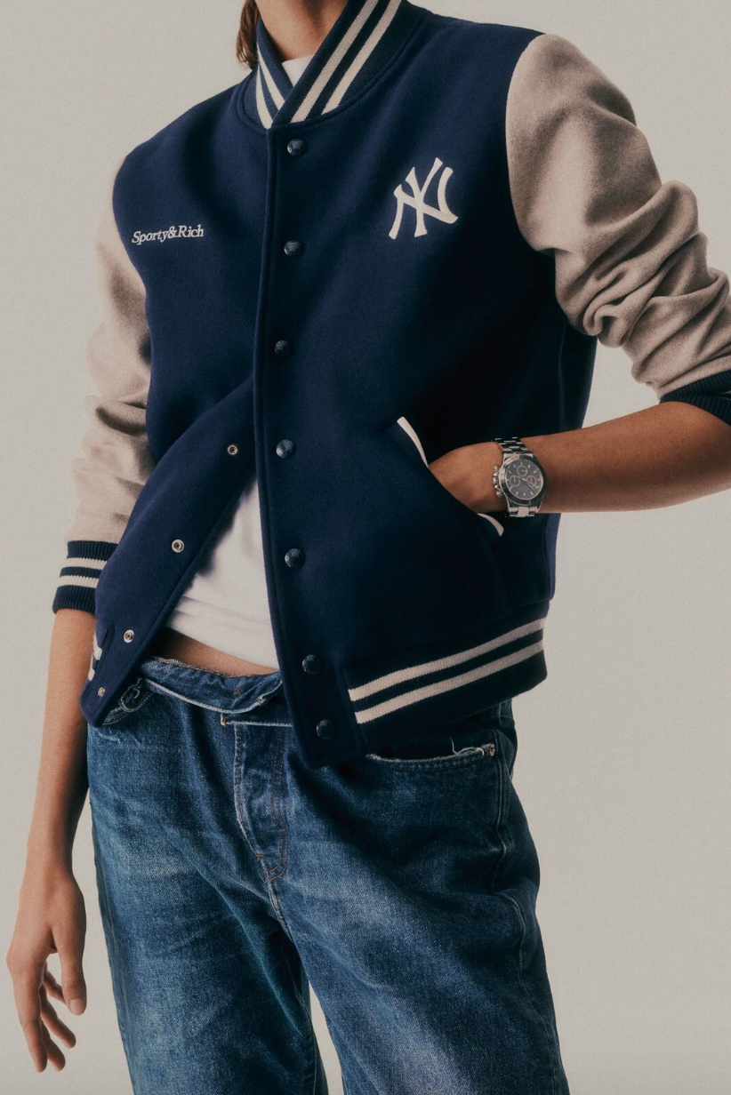 Sporty & Rich 与 ’47 联手推出了双方的第二个合作系列——再次以生活方式为导向,聚焦纽约洋基队的悠久历史。全新胶囊系列以现代感重新诠释了经典洋基队服饰,一系列精心设计的单品包括复古风格棒球 T 恤、量身定制运动短裤、学院风圆领衫以及 ’47 标志性头饰。其中的核心单品是一款抢眼的校园风夹克,其设计融合了怀旧美式风格与现代剪裁,经典的罗纹饰边和醒目的字母图案致敬了经典棒球外套。