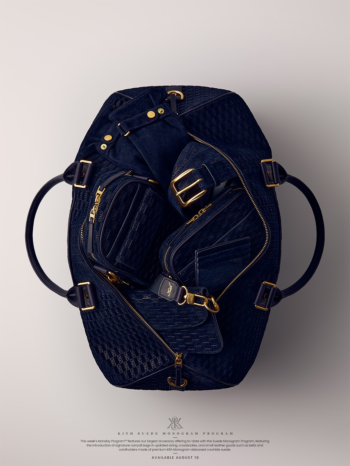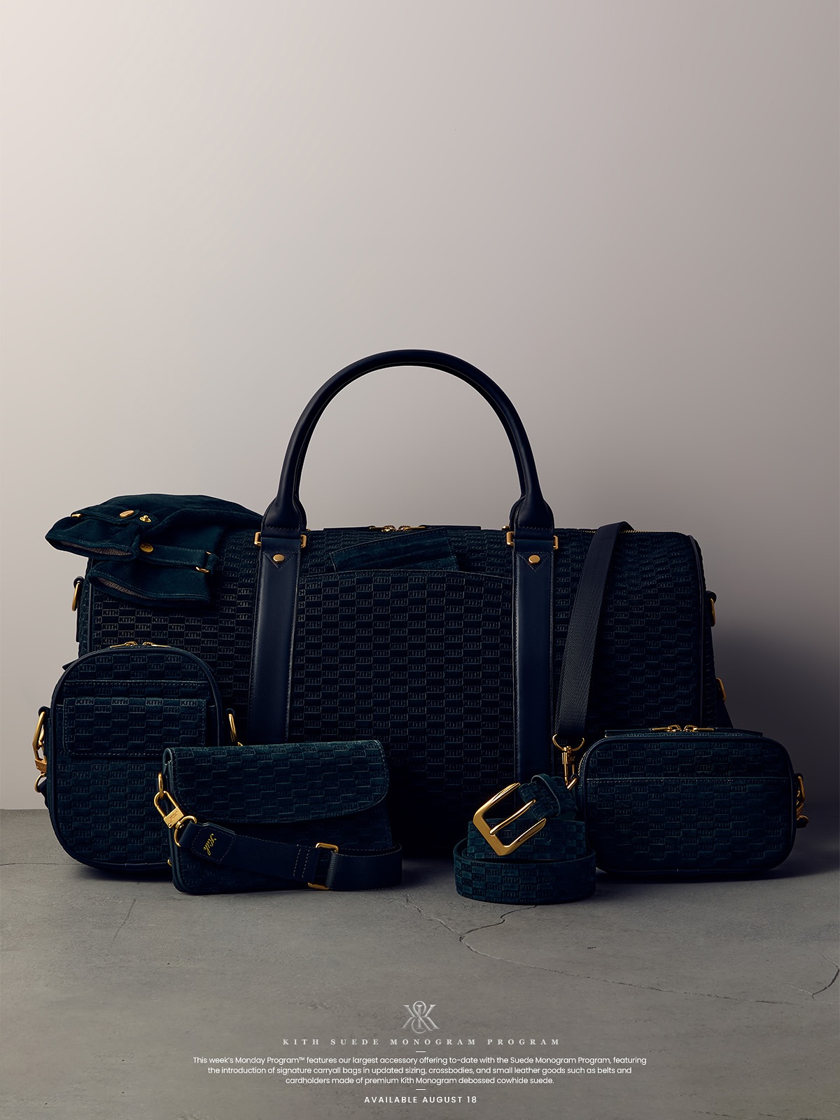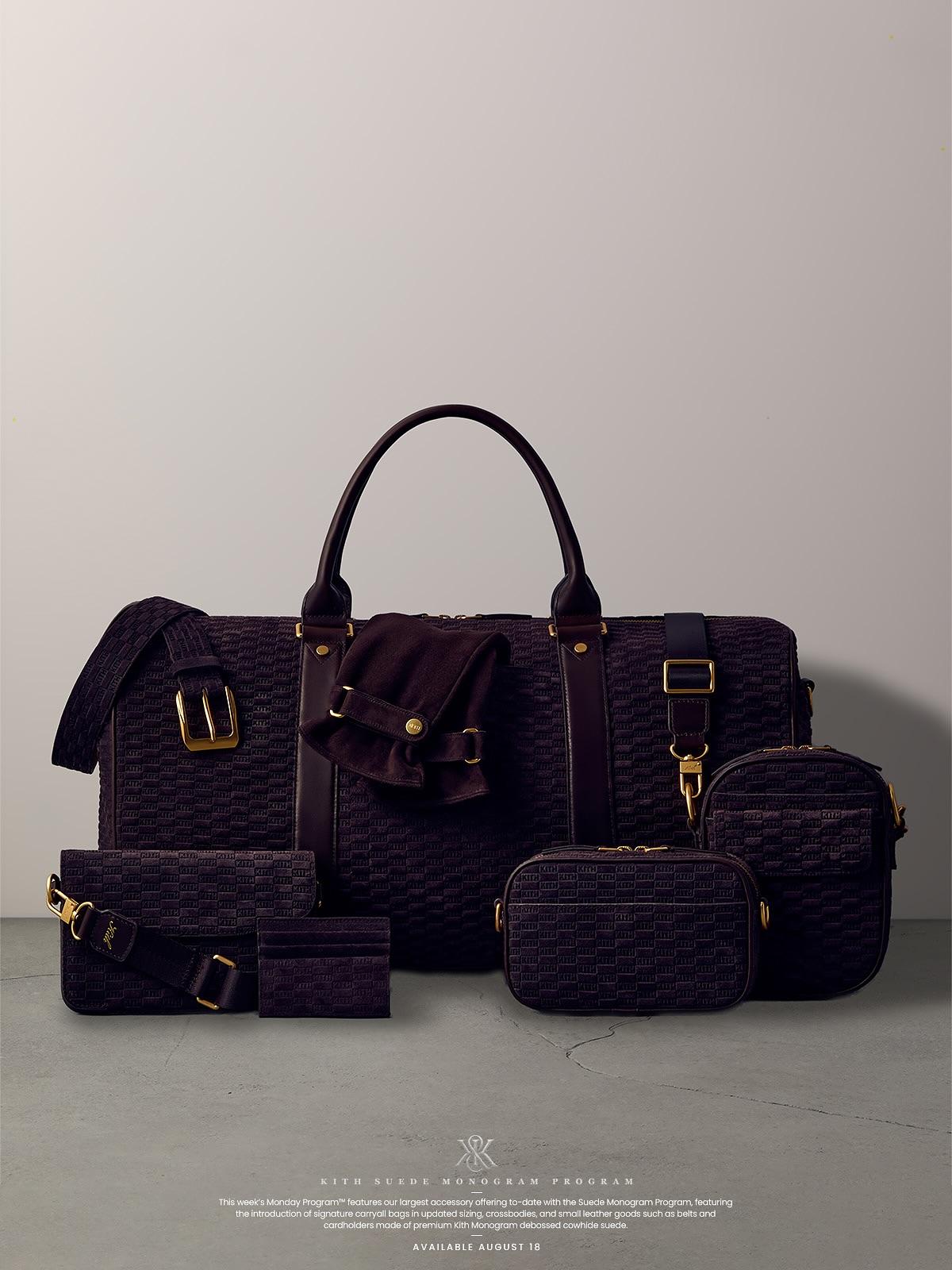 本周 KITH Monday Program™,其推出迄今为止最丰富的配饰系列——绒面革 Monogram 配饰系列,采用 KITH Monogram 压纹绒面牛皮制成,辅以 KITH Palette 经典色调,包括 Stadium、Ink、Incognito、Magma 和 Black 配色选择,释出了包括升级尺寸的标志性手提包、斜挎包、腰带和卡包等小皮具。