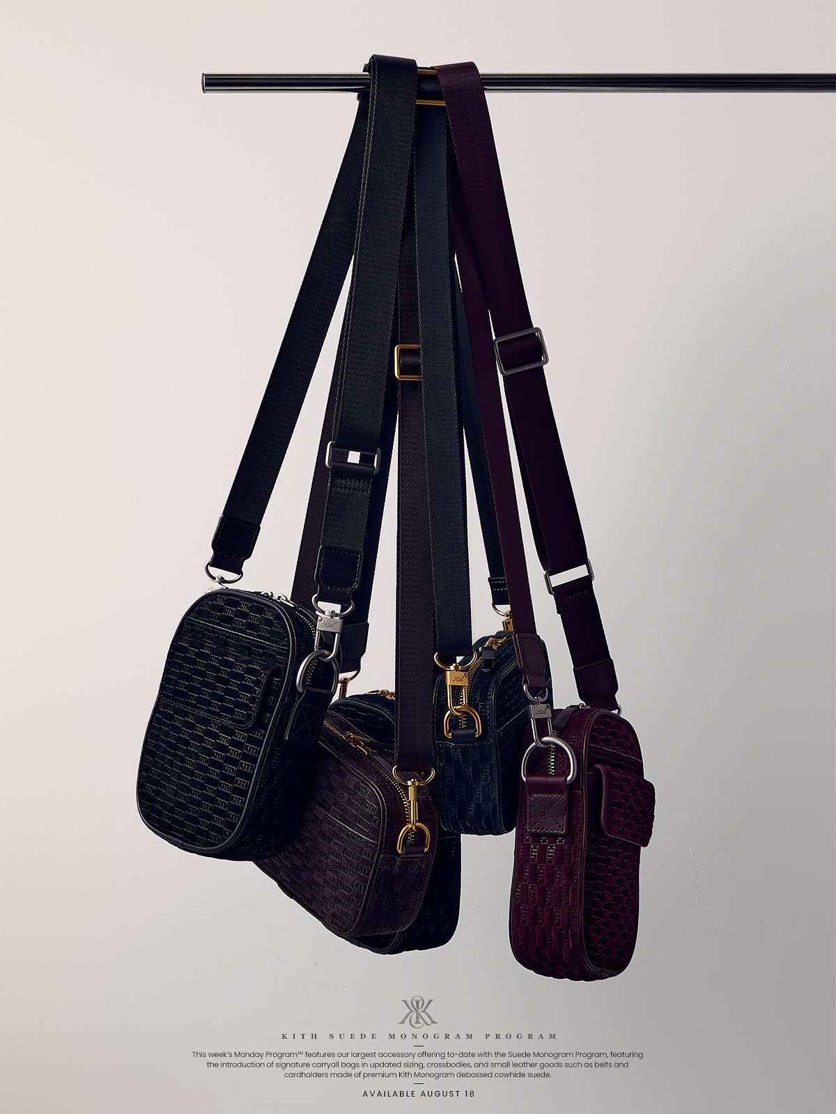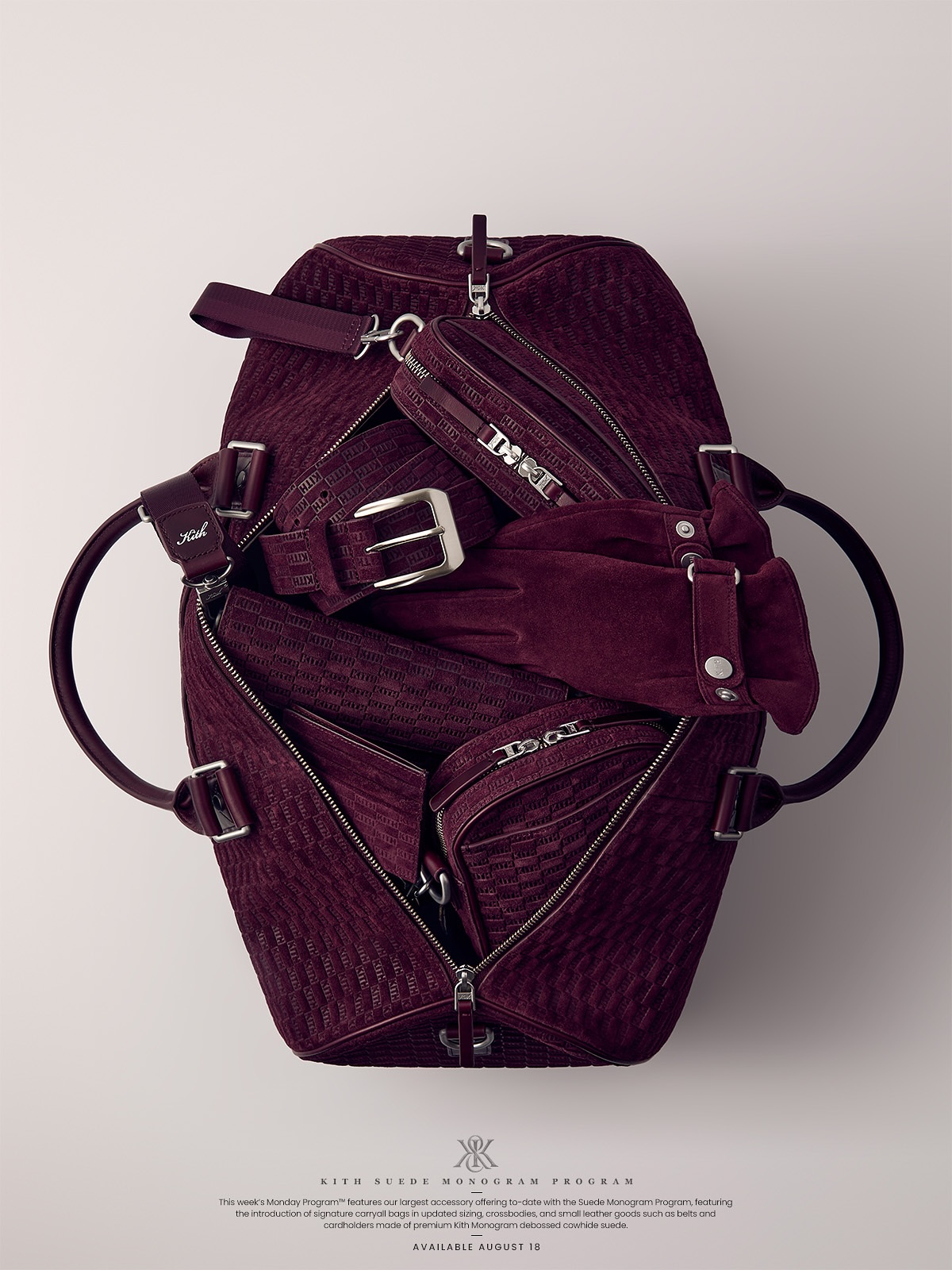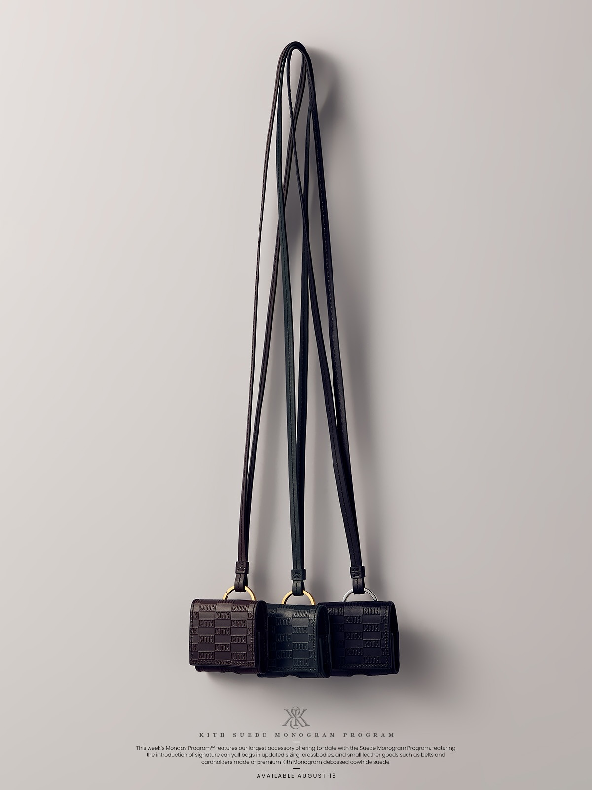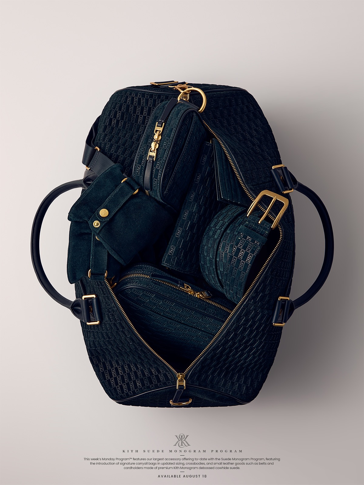 本周 KITH Monday Program™,其推出迄今为止最丰富的配饰系列——绒面革 Monogram 配饰系列,采用 KITH Monogram 压纹绒面牛皮制成,辅以 KITH Palette 经典色调,包括 Stadium、Ink、Incognito、Magma 和 Black 配色选择,释出了包括升级尺寸的标志性手提包、斜挎包、腰带和卡包等小皮具。