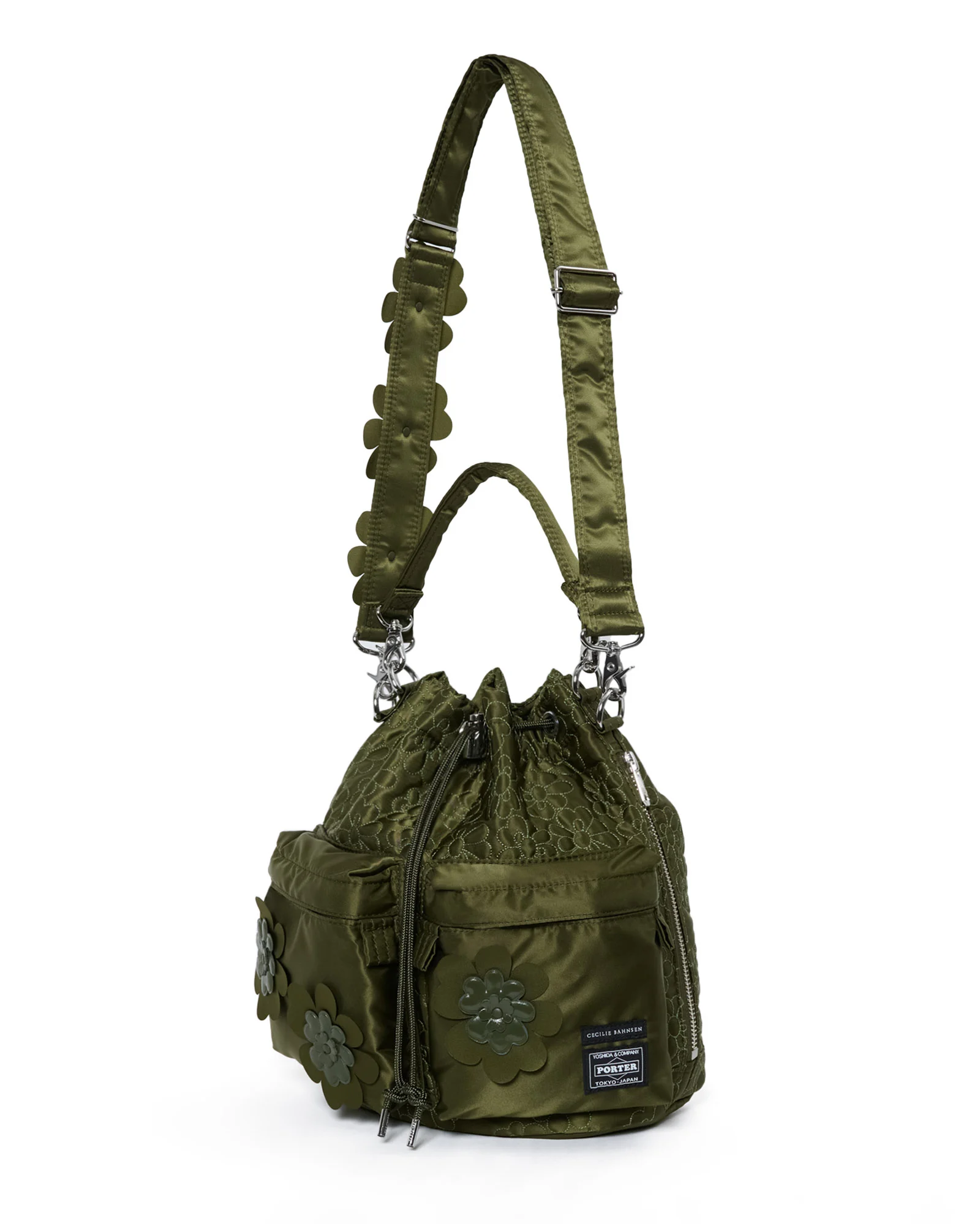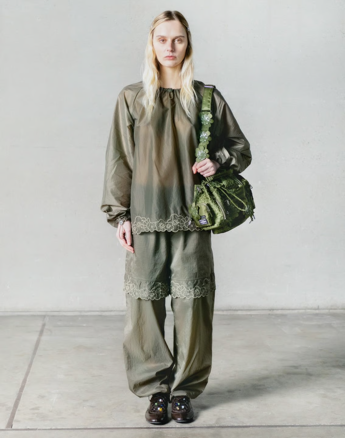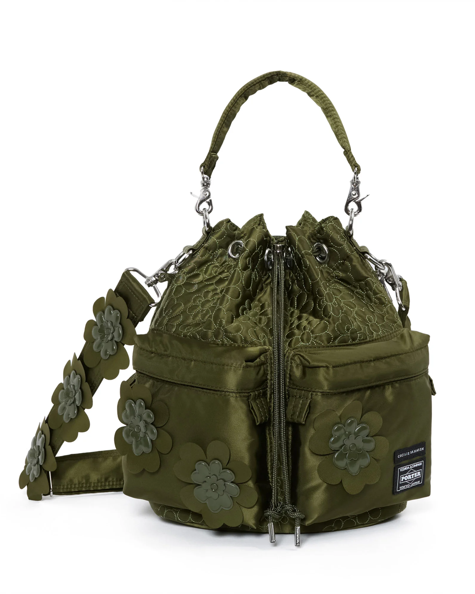 PORTER 与时尚品牌 Cecilie Bahnsen 的合作系列 6 月在日本首发时迅速售罄,此次将迎来全球扩大范围发售。系列包含三款 PORTER 经典包型:Bonding 尼龙材质的 Bonsac 迷你包、两用工具包及双肩包,均融入 Cecilie Bahnsen 标志性的浪漫元素,如花卉激光切割图案、绗缝刺绣与立体压花装饰,提供黑、灰蓝、军绿色可选。所有单品均附赠 90 周年限定标签收纳袋。