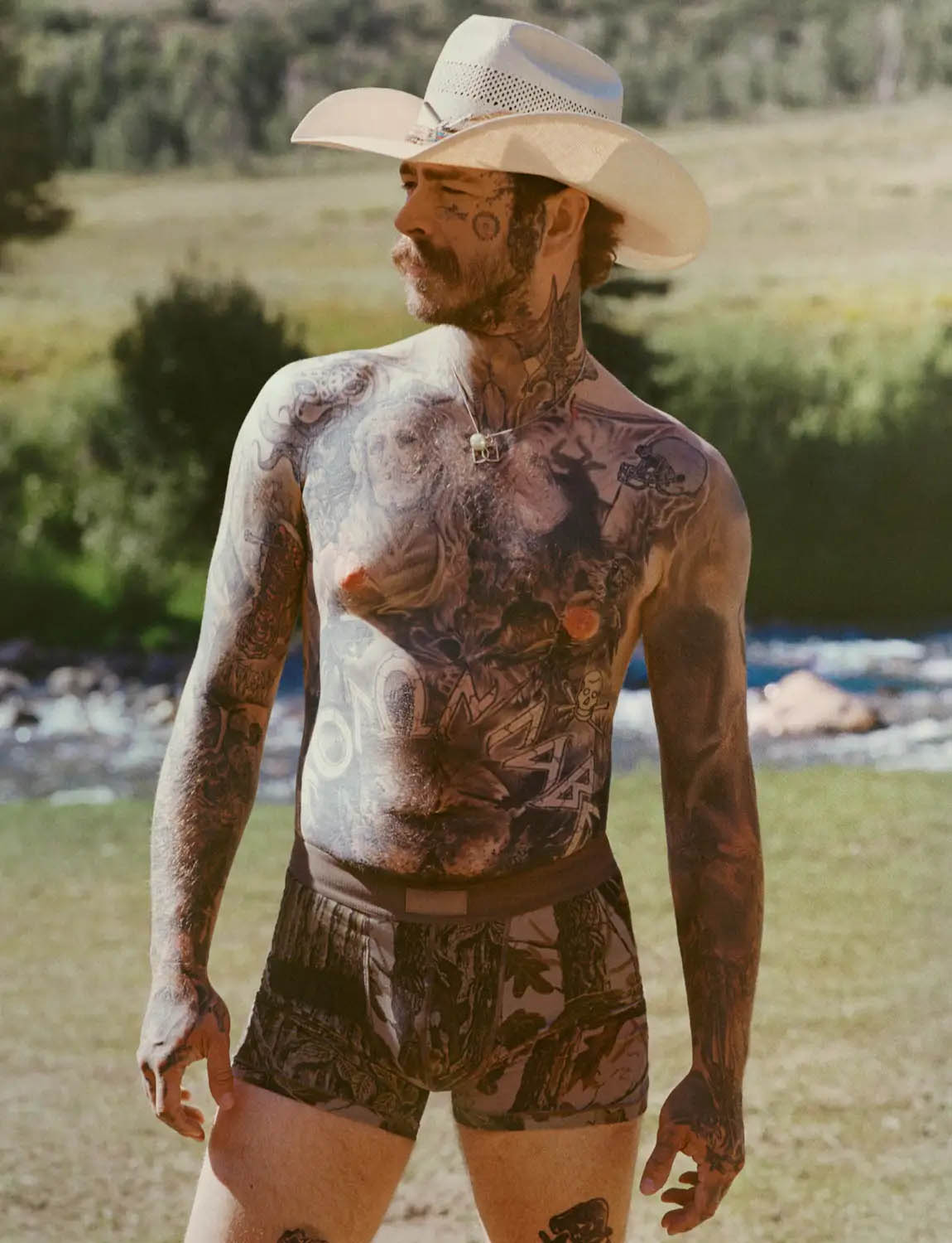 Post Malone 近日出镜 SKIMS 全新男士系列广告大片,演绎连帽开衫、重磅抓绒卫裤及基础 T 恤等多款单品。作为首推男士系列后的延续,品牌继足球巨星 Neymar Jr.、Donovan Mitchell 和 Usher 后再度携手顶级明星。
