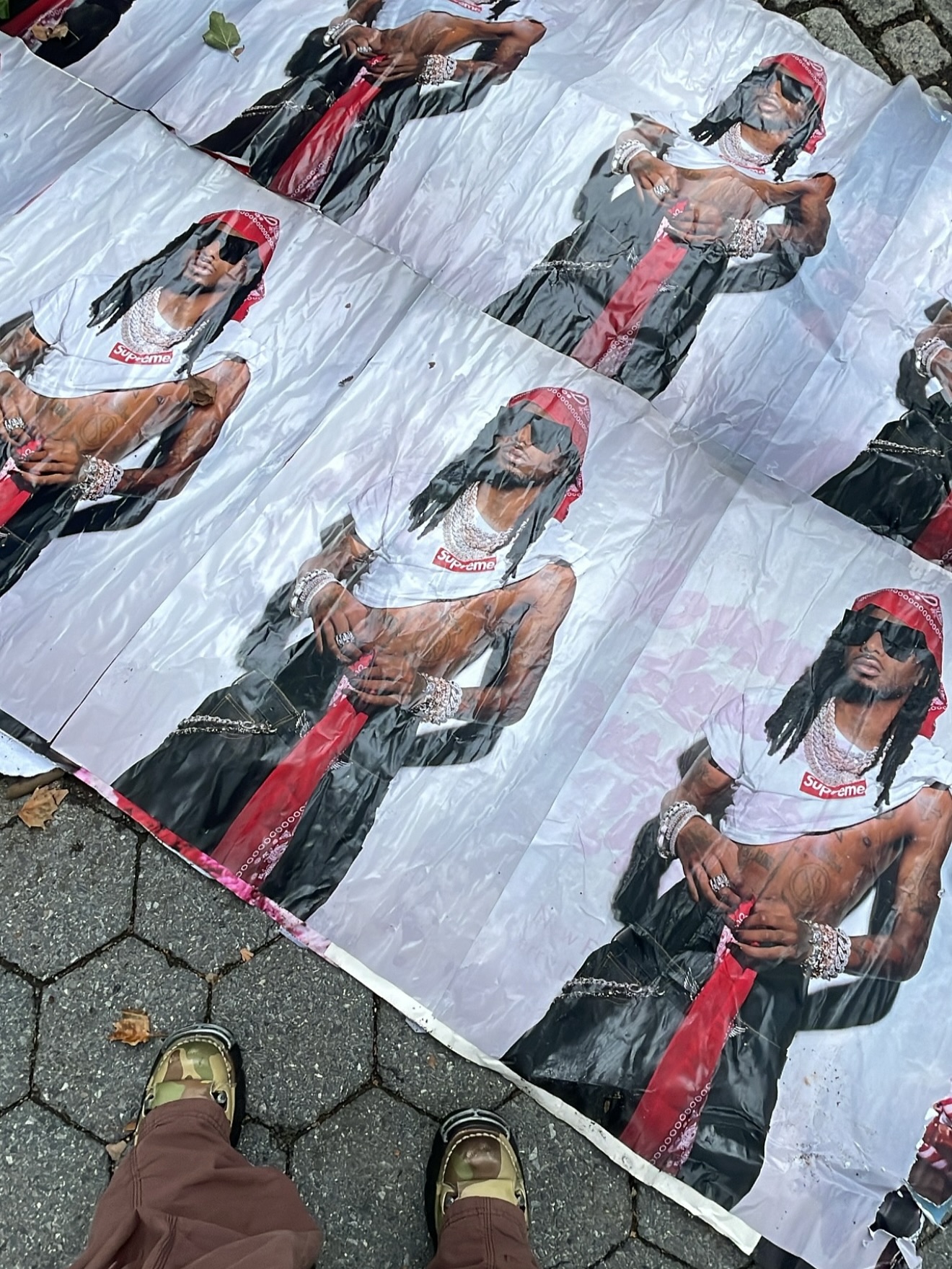 KURRCO 等嘻哈媒体于昨日透露: Supreme 2025 秋冬系列肖像海报的主角将是「玩少」Playboi Carti。而这一传闻出现后 Supreme 也是快速坐实。目前你已可以在品牌官方看到,即将印在 Supreme 2025 秋冬 Photo Tee 上的 Carti 如何示人——照片由 Gunner Stahl 拍摄,Carti 用 Sagging 搭配血帮头巾与闪耀珠宝,修身的 BOGO Tee 也是随性挂在身上,展现其个人独特风格。Supreme 各大门店入驻城市已开始贴起了肖像海报,抢夺海报的闹剧再度上演。