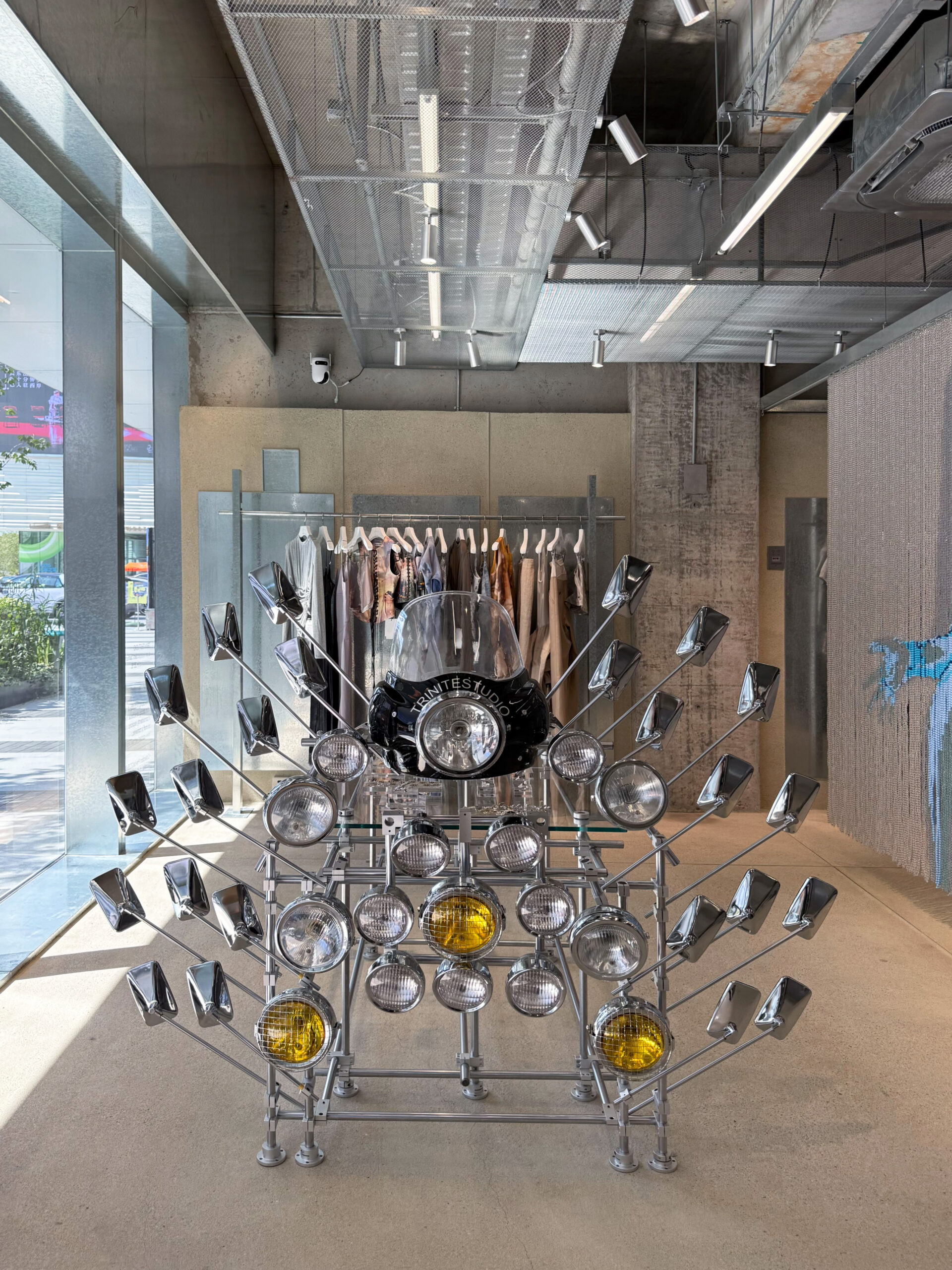 值得一提的是,品牌首家线下慢闪店在上海 GATE M 西岸梦中心同步亮相。该空间由 TRINITESTUDIO 工作室亲手打造、买手店 SND 运营,以机车灵感为核心,多组机械装置在现场首次公开。除了全新系列更带来 BHIVE 联名鞋款的手法。通过服装与装置的浪漫叙事,呈现出独特的沉浸式体验,感兴趣的朋友不妨亲自前往体验。