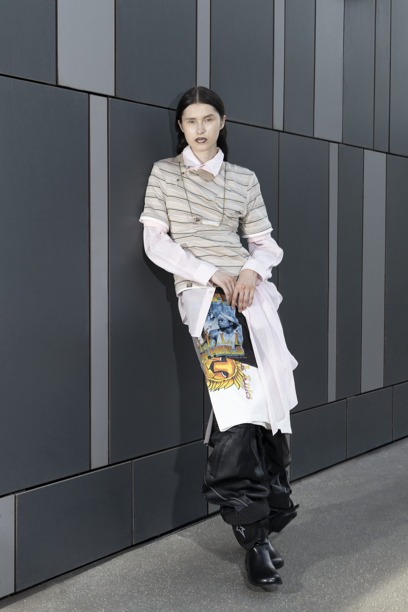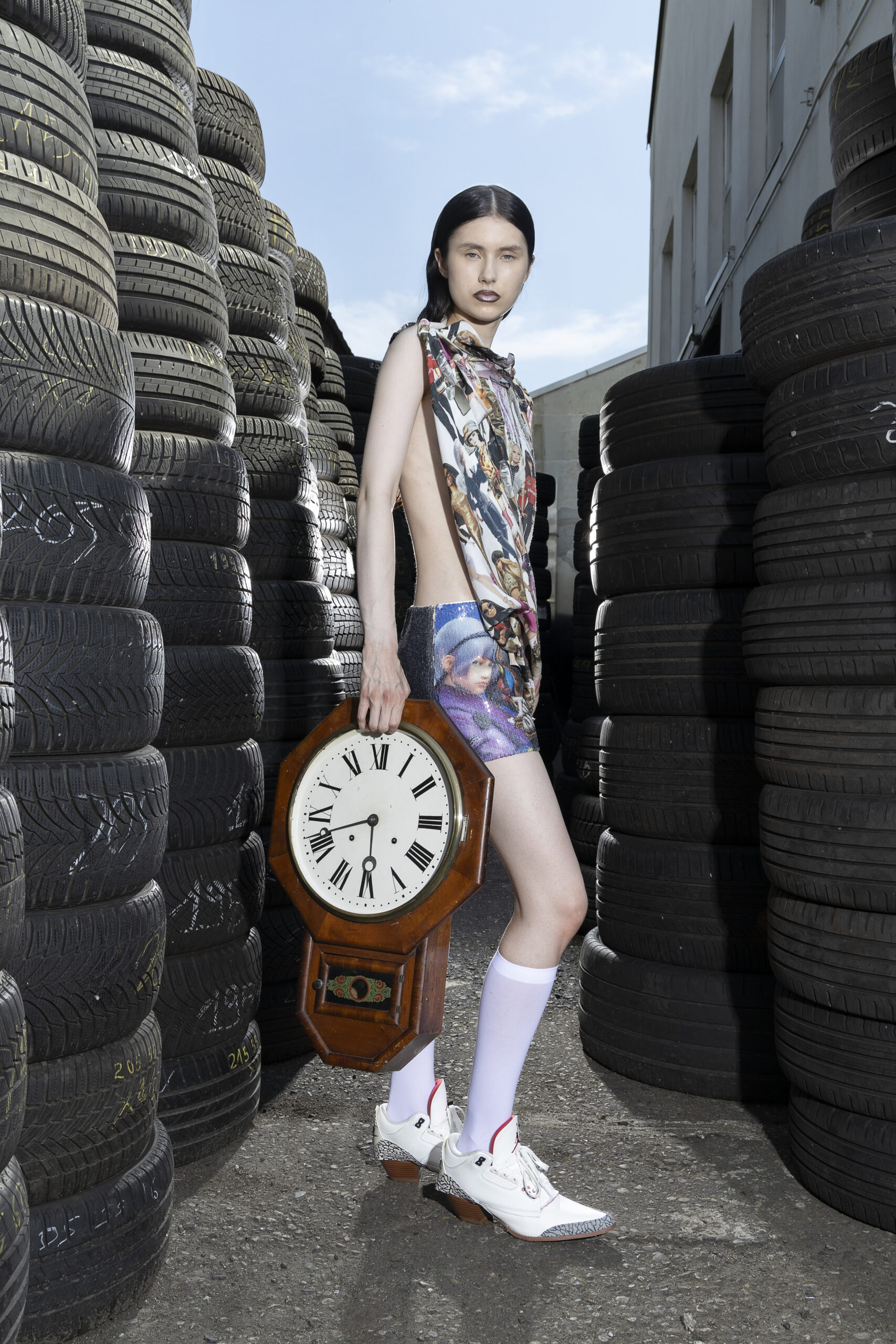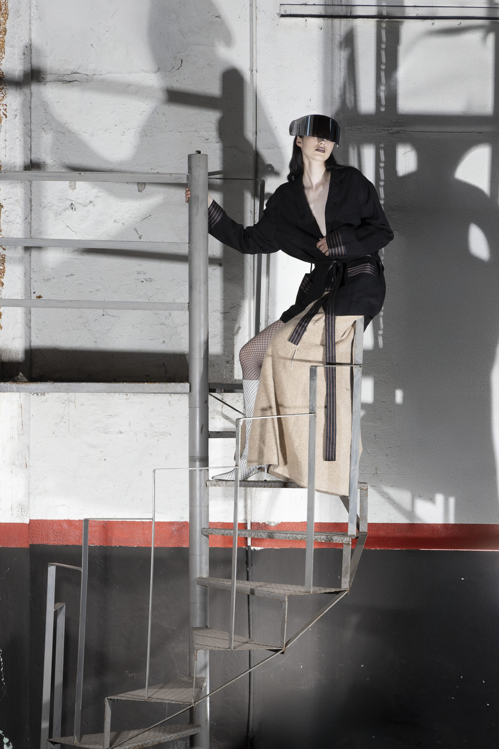 TRINITESTUDIO 2025 早秋系列以维多利亚的繁复与机车文化的桀骜碰撞,缎带与牛仔、蕾丝与护具交叠,浪漫在速度中被撕裂并重组。旧织物与机车印象被裁片吸收,塑造危险感的甜美与不对称的力量,构筑反叛与优雅并存的女性形象。