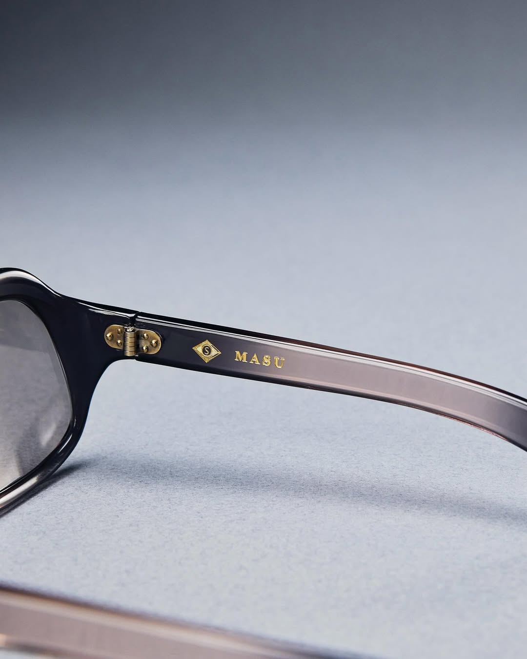 MASU 正在携手复古眼镜及珠宝店 SOLAKZADE® 推出特别胶囊系列。MASU 现任设计师 Shinpei Goto 自文化服装学院学生时代起就常光顾该店,并与它保持着长期友谊。本次合作包含一款眼镜和四款服饰,「犀牛」眼镜灵感源自 20 世纪 60 年代的复古法式眼镜,采用意大利定制的醋酸纤维材质,由福井县鲭江技艺精湛的工匠精心打造。镜腿的设计令人想到 MASU 标志性的天使之翼,铰链处则饰有六角星形饰针。
