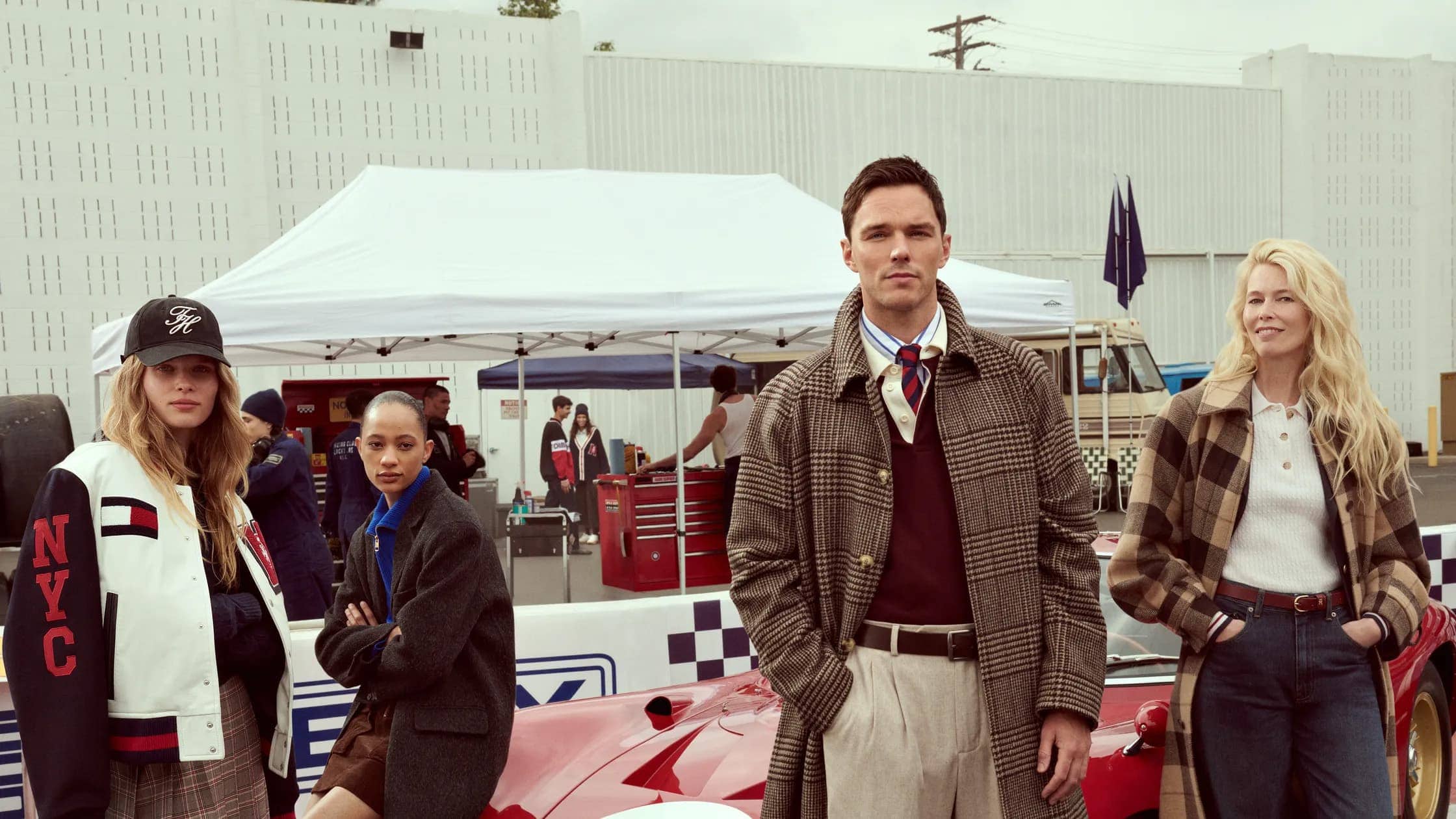TOMMY HILFIGER 在 2025 秋季以「The Hilfiger Racing Club」全速出击,这一企划将学院风带入加速的新赛道。由 Glen Luchford 掌镜,Nicholas Hoult 与 Claudia Schiffer 领衔出演,品牌再度扮演「全美风格叙事者」的角色——这一次则注入赛车元素。广告取材于复古赛车美学,却以清爽的现代感呈现,让人既能感受到品牌的传承,也能体会到前行的动力。