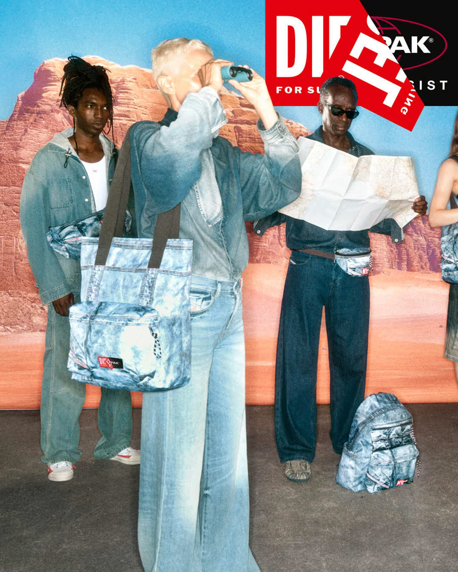 近日,DIESEL 首度携手 EASTPAK 推出联名包袋系列,系列以「错视牛仔印花」与「异材质拼接」两种颠覆性手法重塑经典包型,涵盖背包、单肩包、托特包及旅行箱等 8 款设计。DIESEL 标志性的多口袋结构、做旧纹理与品牌标识以印花形式呈现于 Cordura 面料之上,而牛仔与机能布的碰撞更凸显实验精神,兼具街头张力与实用功能。据悉该合作版包袋系列现已登陆双方品牌官网及指定门店,感兴趣的朋友不要错过了。