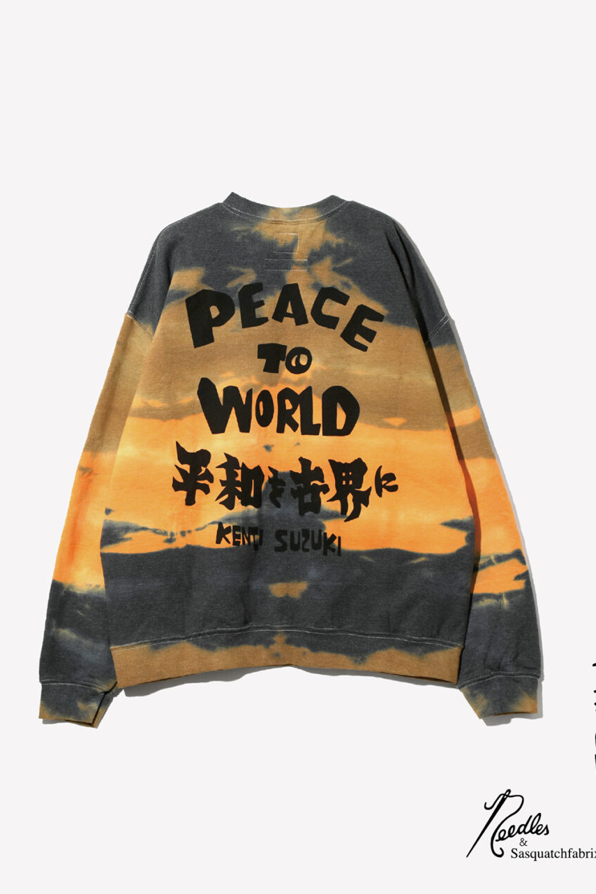 自 2022 年秋冬开始合作的 Needles 和 Sasquatchfabrix 推出了双方的最新胶囊系列「PEACE TO WORLD」。新系列的设计灵感来自版画家铃木健二的插图卷轴作品《世界和平》。这次除了运动服、马海毛开衫等 NEEDLES 人气单品外,还将推出 T 恤和运动衫——显目的「PEACE TO WORLD」文字印于服装背面,两个品牌的 Logo 则饰于下摆处或胸前。此外,为纪念该系列的发布,NEPENTHES 各门店将展出印刷卷轴《世界和平》的复制品,还将发放同主题的原创折纸。