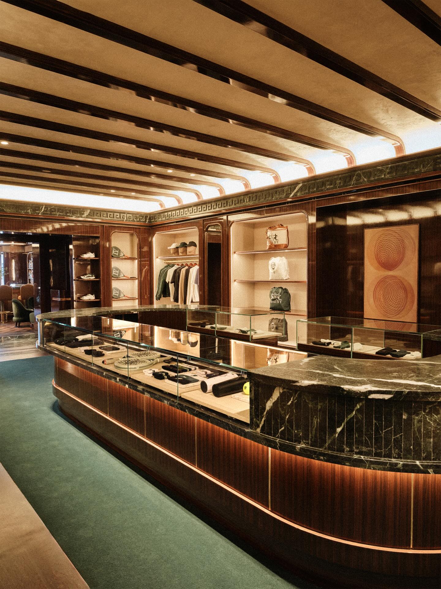 进入室内空间,会员将体验到宛如家般温暖的氛围:多元的餐饮区域、Tonic Bar、健康中心、屋顶帕德尔球场与专业商店一应俱全。值得一提的是,这里还将引入洛杉矶之外首家 Erewhon Tonic Bar,并携手摩洛哥地中海餐厅 Cafe Mogador,在复古波斯地毯、壁炉与书架的点缀下,营造出休闲惬意的场景。此外,俱乐部更计划与 Giorgio Armani 打造行业首创的奢华水疗空间,配置以特拉弗汀石材包裹的环境,提供按摩、面部护理及点滴疗法等多样化疗程。场馆同时配备约 1,500 平方英尺的高端健身房,满足会员的运动需求。据悉,「KITH IVY」预计将在今秋正式开放。