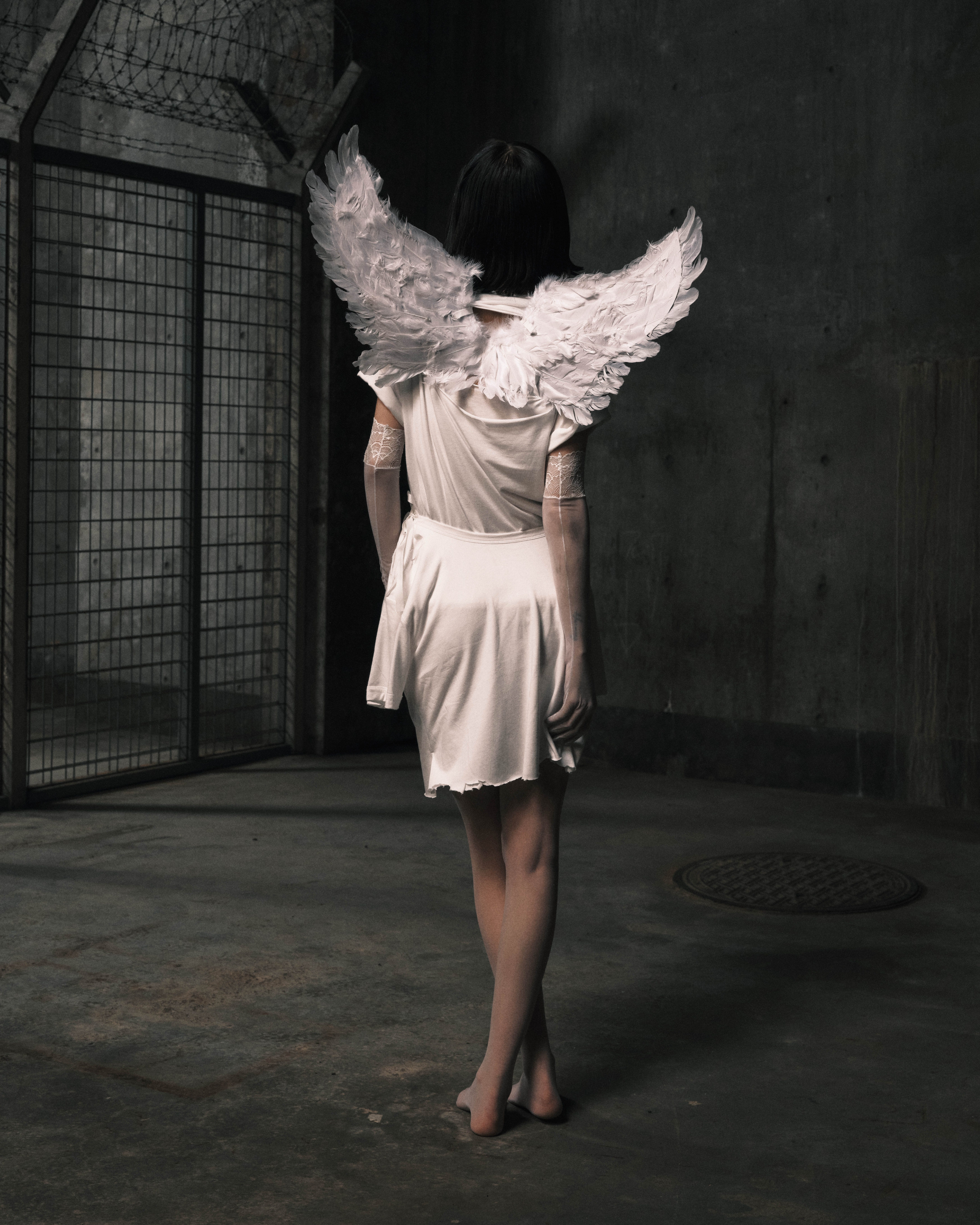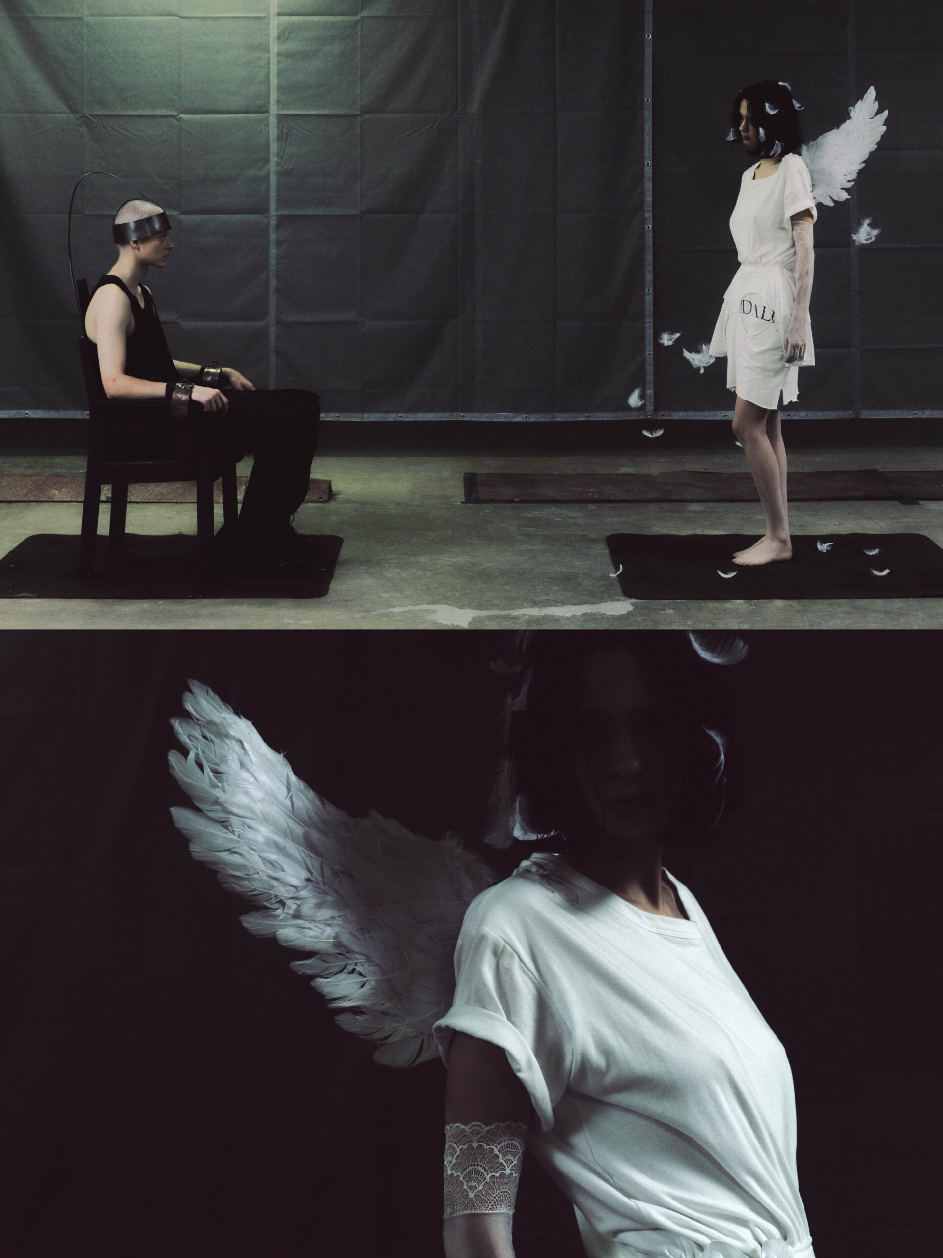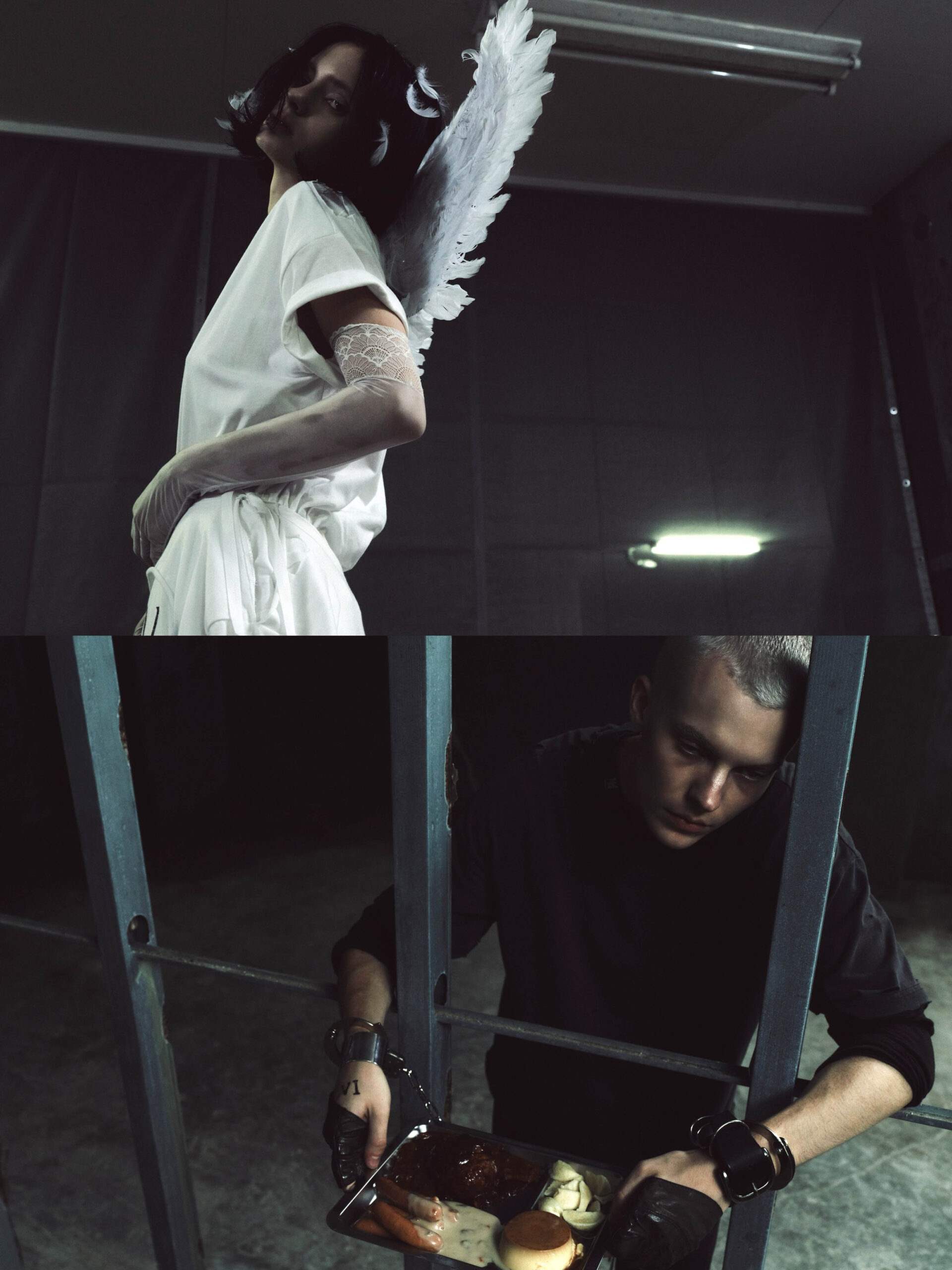 这一叙事通过一部三部曲广告片呈现,讲述了一段逐渐展开的戏剧性过程:罪犯行刑前的最后一餐、与天使的命运邂逅,以及最终转变为恶魔,迎来两股力量的终极对决。配合服装的大胆设计,这个系列超越了单纯的服饰层面,成为了一个隐喻的舞台——时尚在这里承载了关于道德、爱与命运的永恒命题。
