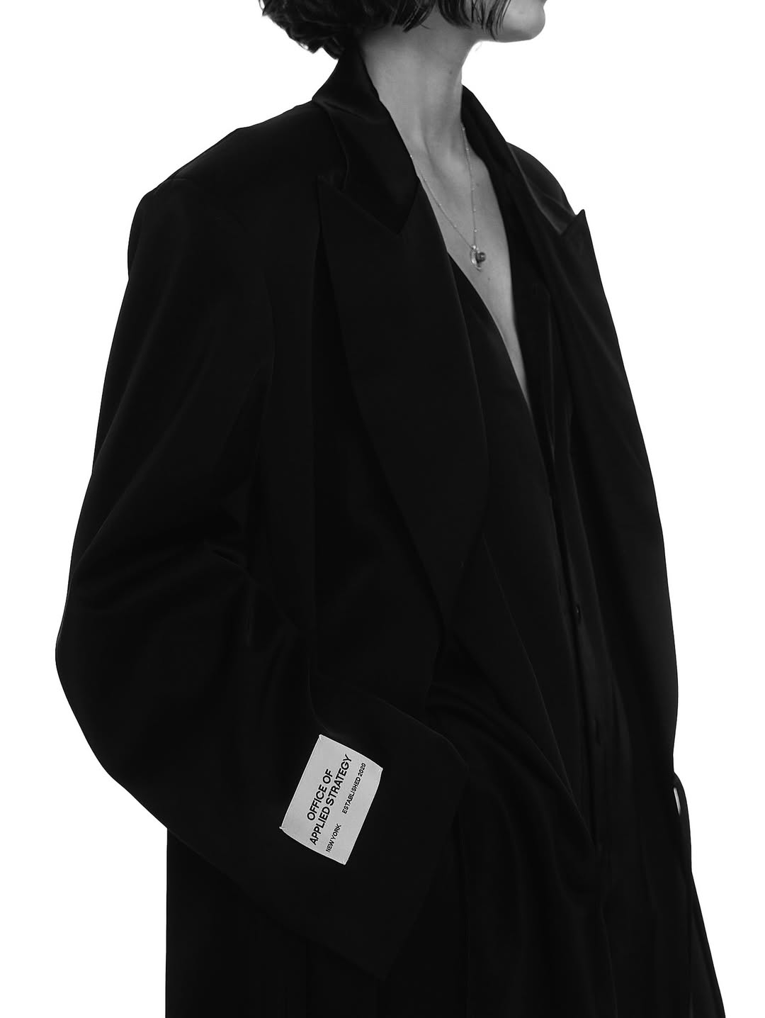 Peter Do 在接受 VOGUE 采访时提到,整个系列中只使用了三种面料:从棉质毛圈布到柔软的针织布,再到日本「液态缎」,所有服装均可机洗。单品涵盖基础款如素色 T 恤和运动裤,也包括更具设计感的加厚西装外套、量体定制的夹克和大衣。唯一带有图案的单品是一款印有「THOT LEADER」字样的背心,幽默地挑战了企业文化的传统语境。