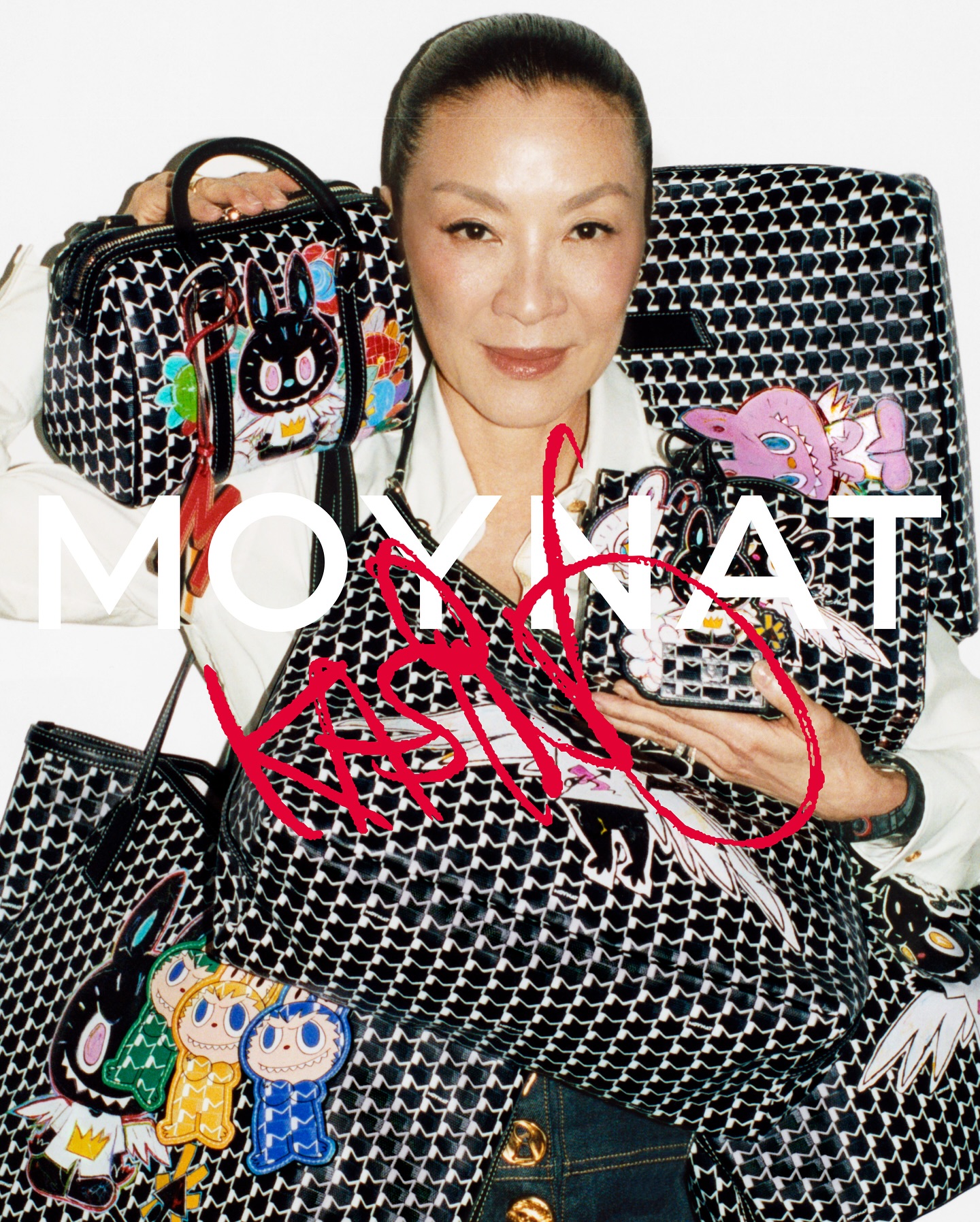 法国品牌 Moynat 携手 Labubu 之父、香港艺术家龙家昇推出限量系列,将标志性角色 Labubu、Zimomo 和 King Mon 融入 Moynat 的经典 Signature M 帆布,梁朝伟和杨紫琼参与了本次的拍摄。该系列包括各种尺寸的托特包、Mini 48H、Hobo、卡包、吊饰和稀有的 Mignon 包,将于 10 月初推出,以庆祝 Labubu 十周年,并将在全球部分 MOYNAT 精品店发售,直至 2026 年初。
