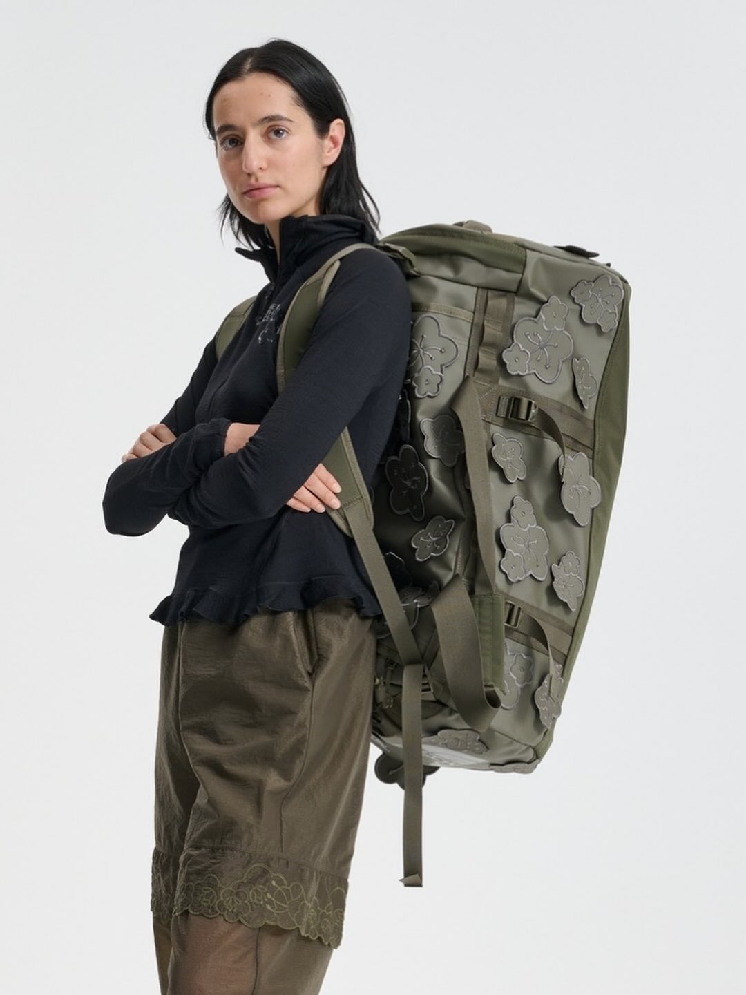 近日,The North Face 再度携手 Cecilie Bahnsen 推出联名配饰系列,以「New Taupe Green」配色重新演绎经典 Base Camp 旅行袋。系列包含 65 升中号行李袋与小号手拿包,延续 The North Face 标志性实用设计,并融入 Cecilie Bahnsen 标志性的 3D 花卉刺绣与精致抽绳细节,将户外功能性与北欧浪漫美学深度融合。据悉该系列将于 2025 年 9 月 12 日作为 2025 春夏系列的一部分正式发售,诠释跨越风格的匠心对话。