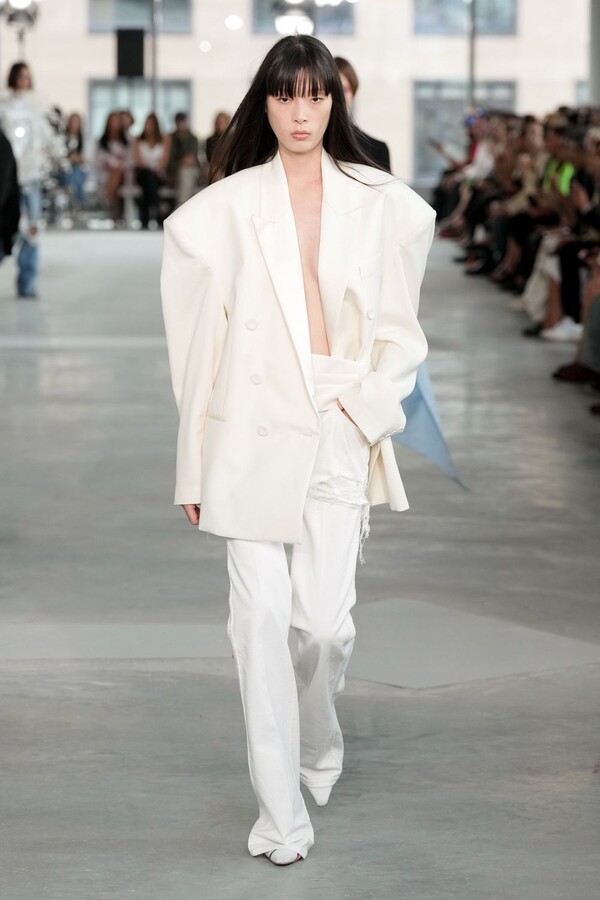 曾为 Tom Ford、Balenciaga 高定工作过的 Nicholas Aburn 在 AREA 推出了首个系列。这一季,Nicholas Aburn 开始关注人物——纽约和伦敦街头的行人。从身穿 Carhartt 风夹克配白色迷你机车短裤的 Bella Hadid,到穿 Adidas 运动裤系着临时水晶腰带的路人,这些瞬间让他兴奋。「纽约穿衣有其规则——牛仔裤搭配黑色剪裁、白色 T 恤和运动装,但所有这些都被推向极致,并赋予了有趣的地域风味。」